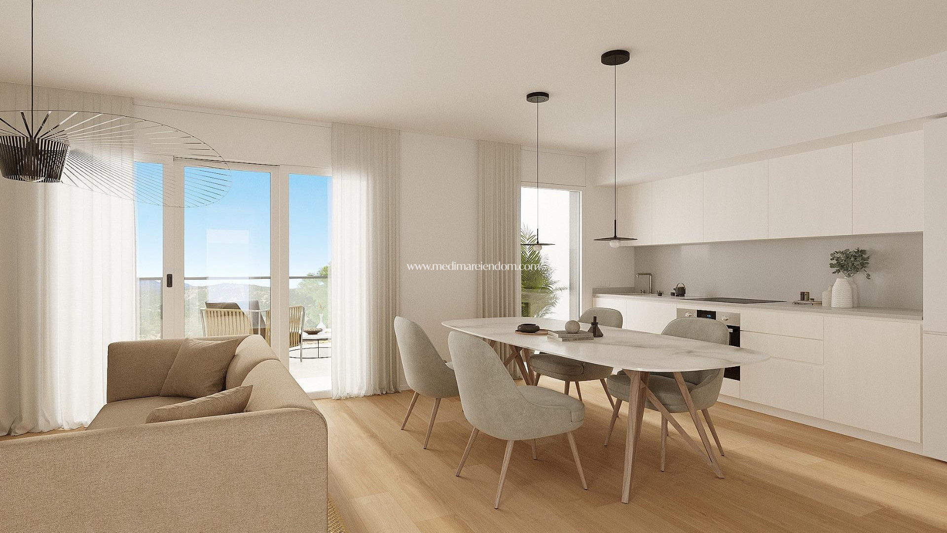 COMPLEJO RESIDENCIAL DE OBRA NUEVA EN FINESTRAT Complejo residencial de obra nueva de apartamentos, áticos y adosados en Balcón de Finestrat. Preciosos apartamentos de planta baja con jardín privado, apartamentos de planta media con grandes terrazas y áticos con solarium privado. Viviendas de 2 y 3 dormitorios, 2 baños, cocina americana con el salón, armarios empotrados, instalación de aire acondicionado por conductos (frío/calor). El complejo residencial consta de piscina comunitaria para adultos con zona de piscina infantil y solarium, zona de aparcamiento para bicicletas, zona de juegos infantiles embaldosada con pavimento continuo de seguridad. Todas las viviendas disponen de plaza de aparcamiento privada con preinstalación para carga eléctrica de vehículos. Complejo residencial perfectamente ubicado en un enclave natural de la Costa Blanca y que ofrece increíbles vistas del skyline de Benidorm, la cala de Finestrat y El Puig Campana. Benidorm se encuentra a tan solo cinco minutos en coche de las viviendas y ofrece todos los servicios necesarios como tiendas, bares, restaurantes, supermercados, bancos, farmacias y varios colegios privados internacionales. Cerca de las playas de Levante, Poniente y Cala de Finestrat, con más de 6km de longitud que se encuentran entre las mejores de Europa galardonadas por la Unión Europea con Banderas Azules. Todos los servicios de ocio como los parques temáticos de Aqua Natura, Terra Mítica, Terra Natura, Aqualandia y Mundomar, los campos de Golf Sierra Cortina y Villaitana, senderismo y escalada en el Puig Campana un marco natural incomparable o disfrutar de los deportes náuticos. Distancia al mar 4 km, al aeropuerto 26 km y al golf 1km. Complejo situado a 40 minutos del aeropuerto de Alicante.