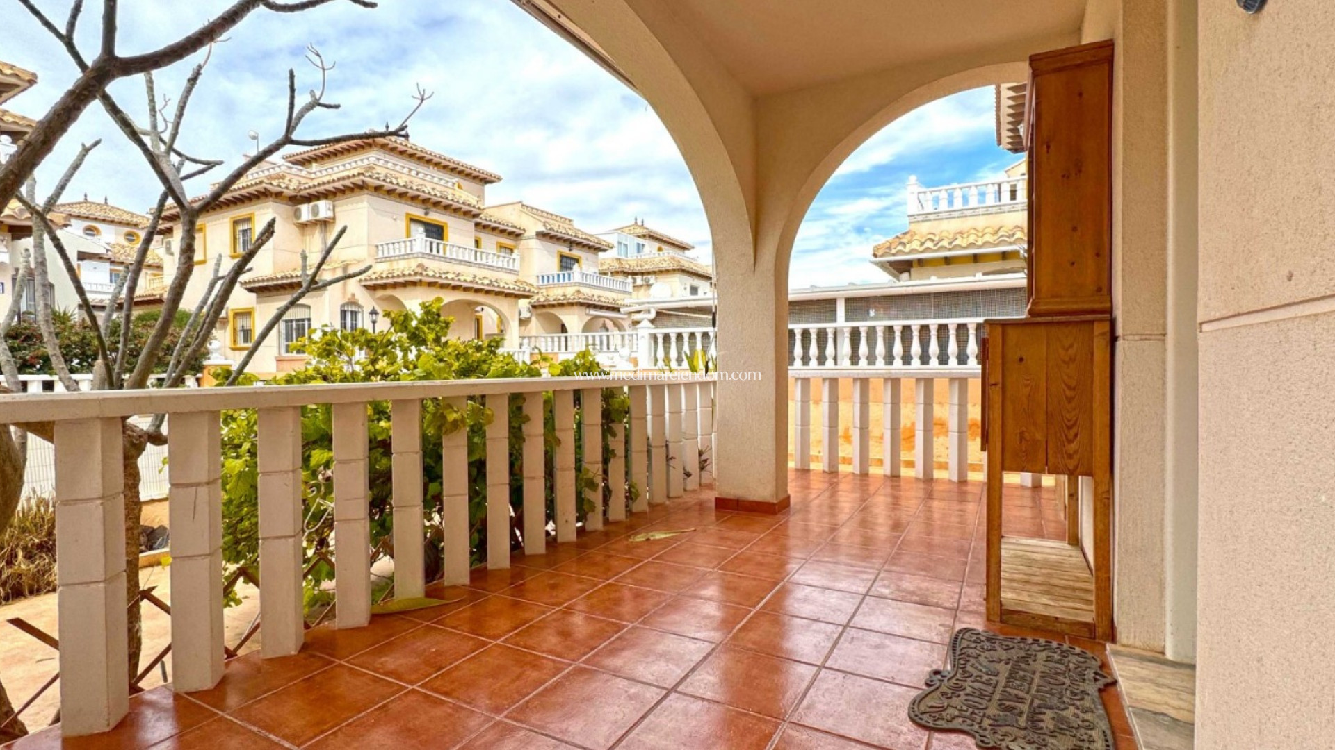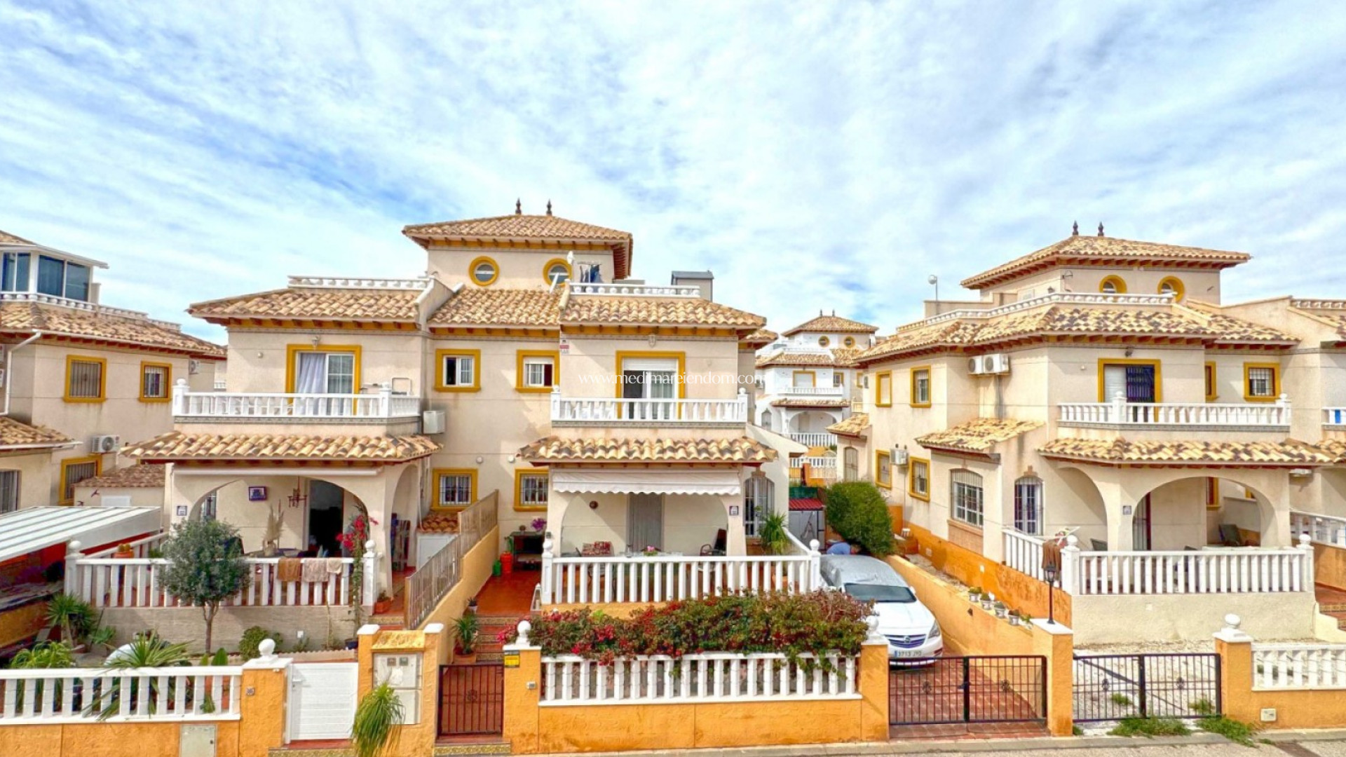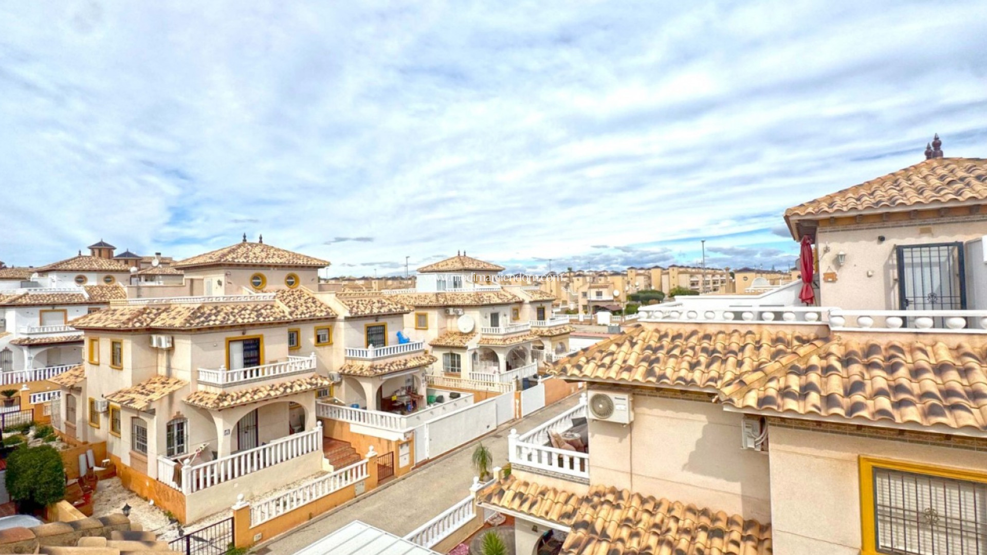 Bienvenido a este chalet adosado versátil y bien diseñado, que ofrece amplios espacios interiores y exteriores en una ubicación privilegiada. Ya sea que busque una residencia permanente, una casa de vacaciones o una inversión inmobiliaria, esta propiedad proporciona comodidad, funcionalidad y posibilidades de personalización. Un Diseño Inteligente para una Vida Cómoda Planta Baja: Espaciosa cocina abierta al salón-comedor, creando un ambiente luminoso y acogedor. El dormitorio adicional en esta planta es ideal para invitados, una oficina en casa o almacenamiento extra.Un aseo con zona de lavandería, que incluye una ducha cuando la lavadora está instalada, añade comodidad. Alternativamente, se puede retirar la lavadora y utilizar el espacio como un baño completo con ducha. Primera Planta: Dos amplios dormitorios con armarios empotrados ofrecen confort y espacio de almacenamiento. El dormitorio principal cuenta con un balcón privado, ideal para disfrutar del café de la mañana o relajarse al final del día. Un baño grande con bañera completa esta planta. Solárium en la Azotea: Un refugio privado en la azotea con espacio para tomar el sol, opciones de almacenamiento y un calentador eléctrico. También hay espacio adicional para almacenamiento extra, combinando practicidad y disfrute. Espacios Exteriores y Características Comunitarias Amplio jardín y terraza privada, perfectos para disfrutar del aire libre Piscina comunitaria a solo 100 metros, ideal para refrescarse en los días cálidos Plaza de aparcamiento privada incluida Aire acondicionado para mayor confort durante todo el año Ubicación Estratégica y Fácil Acceso A 70 km del Aeropuerto de Alicante y 56 km del Aeropuerto de Murcia Cerca de playas, campos de golf, centros comerciales y servicios esenciales Esta propiedad bien mantenida ofrece el equilibrio perfecto entre espacio, comodidad y potencial de inversión. Con tres dormitorios, múltiples espacios al aire libre y excelentes características comunitarias, es una excelente opción para familias, jubilados o inversores que buscan una propiedad con alta demanda de alquiler. Contáctenos hoy para programar una visita.