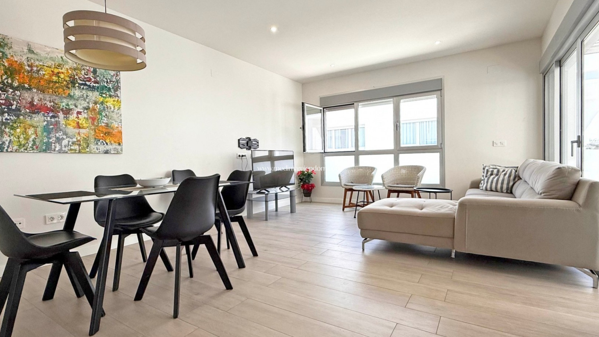Este elegante bungalow de 3 dormitorios y 2 baños se encuentra en una comunidad cerrada en la codiciada zona de Los Dolses, a solo minutos de campos de golf y centros comerciales. Dispone de una amplia zona de estar de planta abierta, terraza en planta baja, solárium privado en la azotea y plaza de aparcamiento. Se vende parcialmente amueblado. La urbanización cuenta con piscina comunitaria y jardines cuidados. Ideal como residencia permanente o casa de vacaciones.