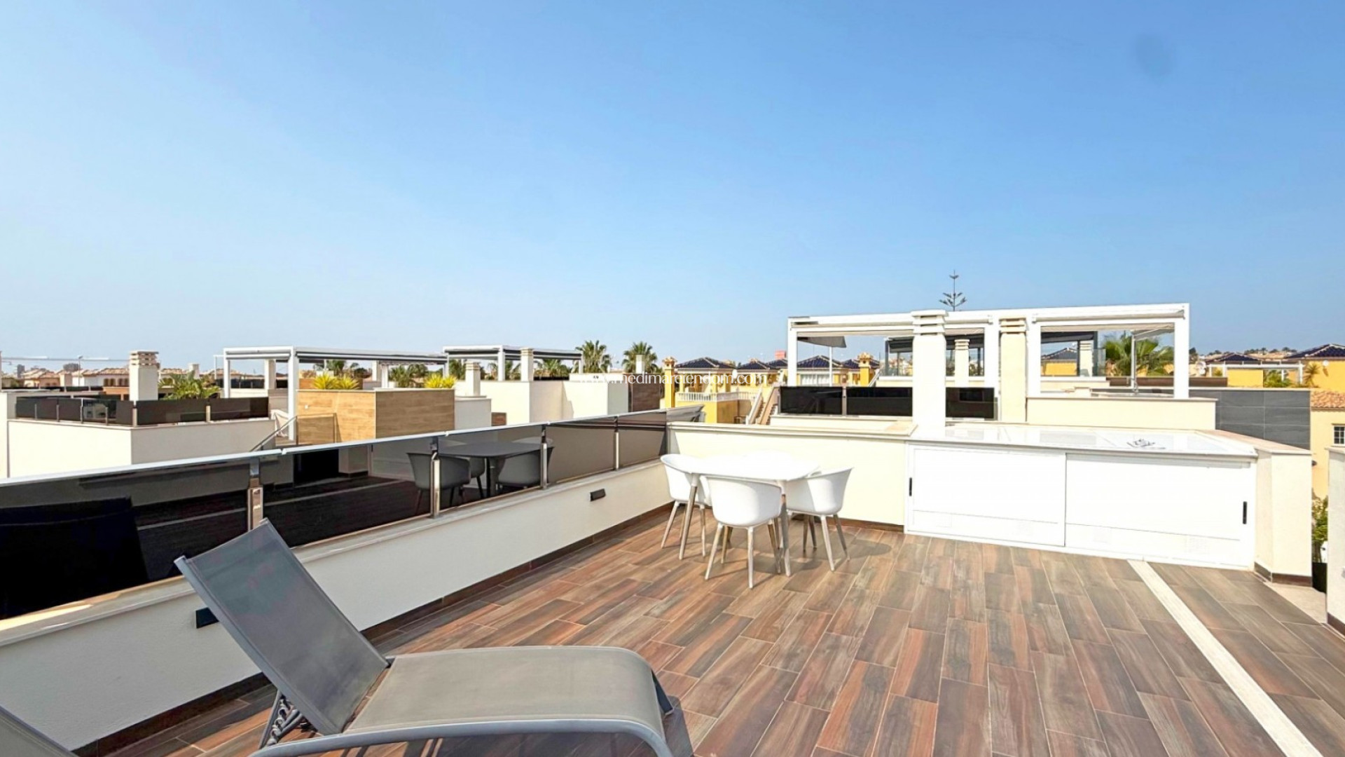 Entra a vivir directamente en esta impresionante villa independiente, completamente amueblada, en la exclusiva zona de Lomas de Cabo Roig, Orihuela Costa. Diseñada para el confort y el estilo, esta propiedad es ideal como residencia permanente, casa de vacaciones de lujo o inversión inteligente en la Costa Blanca. Distribuida en dos plantas, ofrece espacios luminosos y amplios con acabados modernos. El interior cuenta con un salón-comedor abierto y soleado, una cocina contemporánea totalmente equipada y tres amplios dormitorios con armarios empotrados. Los tres baños completos están diseñados con acabados de alta gama. El espacio exterior es igualmente impresionante: Piscina privada Gran solárium con vistas panorámicas Parcela de 201 m² con jardín de bajo mantenimiento Plaza de aparcamiento incluida La villa también dispone de aire acondicionado y calefacción individual, paneles solares para mayor eficiencia y orientación sur para aprovechar al máximo la luz natural. Ubicada en una urbanización tranquila, a pocos minutos en coche de las playas de Orihuela Costa y cerca de supermercados, restaurantes y centros comerciales. Características principales: 3 dormitorios, 3 baños Aproximadamente 193 m² construidos, 111.70 m² útiles Piscina privada, solárium, jardín Aire acondicionado, calefacción individual, paneles solares Construida en 2019, excelente estado Plaza de aparcamiento incluida Ubicación tranquila, cerca de todos los servicios Una oportunidad única de tener una villa moderna, eficiente y con estilo en una de las mejores zonas de Orihuela Costa.