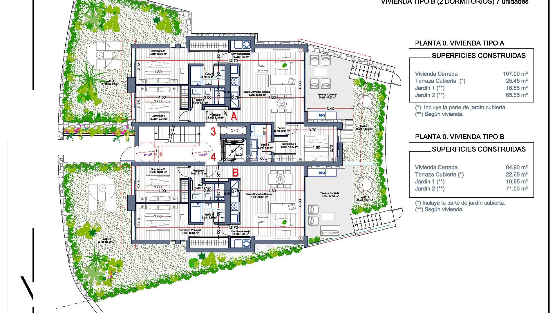 RESIDENCIAL DE OBRA NUEVA EN LA MANGA CLUB RESORT Exclusivo residencial de obra nueva de 42 apartamentos ideal para uso personal o inversión en uno de los famosos Resorts de La Manga Club. Estas modernas y luminosas residencias ofrecen impresionantes vistas al Mar Menor, y sus amplias terrazas y la piscina comunitaria permiten disfrutar al máximo del sol mediterráneo. Se trata de la última promoción céntrica de viviendas de obra nueva en La Manga Club, a sólo 5 minutos a pie de todas las tiendas y restaurantes. Los derechos deportivos están incluidos y cada vivienda incluye un trastero. Puertas interiores de una hoja de 210x82,5x4 cm., de tablero DM, prelacadas en blanco, con ranuras horizontales cada 50 cm. Armario empotrado prefabricado con puertas correderas, de panelado de tablero DM, prelacado en blanco. En baños, alicatado con gres porcelánico, tamaño 60 x 30 cm, colocado sobre superficie soporte de pared interior de cartón yeso laminado. En cocinas, alicatado con azulejos de gres porcelánico, formato 60 x 30 cm, colocados sobre soporte de pared interior de cartón yeso laminado. Sistema de calefacción por aerotermia, aire acondicionado y agua caliente sanitaria. Fancoils de alta eficiencia. Ventilación controlada mecánicamente DOUBLE FLOW. Bloque de puerta de entrada blindado. Acabado blanco. Clase de seguridad 3. Puerta metálica abatible para acceso de vehículos. Portón metálico unilateral de apertura manual para acceso peatonal. La Manga Club es uno de los principales complejos deportivos y de ocio de Europa. Rodeado de parques naturales y playas vírgenes, su privilegiada ubicación ofrece exclusivos alojamientos vacacionales y residenciales en la costa mediterránea española. Fundada en 1972, La Manga Club es una comunidad cálida, segura y vibrante que desde hace tiempo atrae a familias y amantes del golf con su variada y destacada oferta de ocio. La Manga Club goza de excelentes conexiones aéreas. Los aeropuertos locales de Corvera (a sólo 50 km) y Alicante (a menos de 100 km) ofrecen vuelos regulares al resto de Europa, lo que facilita la llegada y salida del complejo.