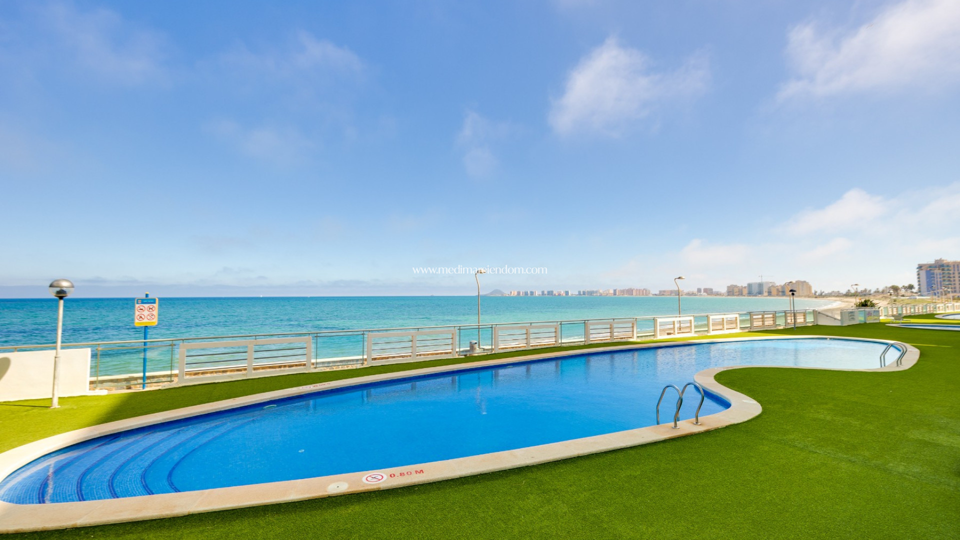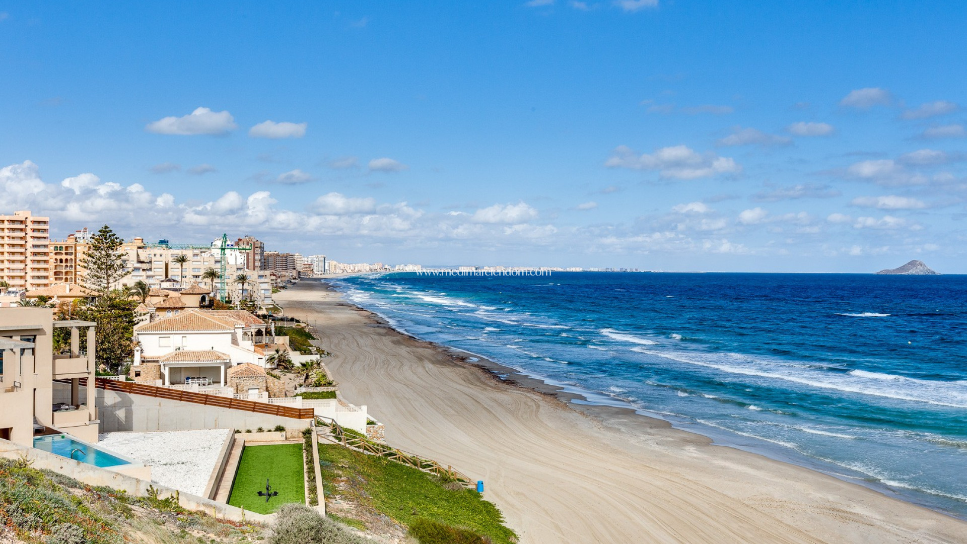 Desde la amplia y soleada terraza podrá disfrutar de unas vistas fantásticas al mar. Además, el apartamento goza de una ubicación privilegiada con vistas panorámicas al mar por ambos lados: tanto al Mar Menor como al Mediterráneo.