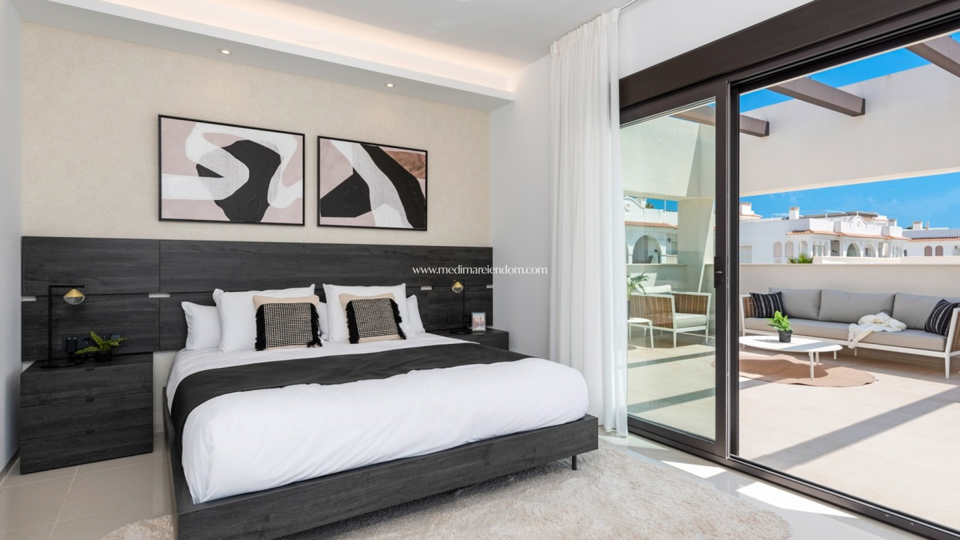 La maison se compose d'un spacieux séjour/salle à manger avec cuisine ouverte, 3 chambres et 3 salles de bains.