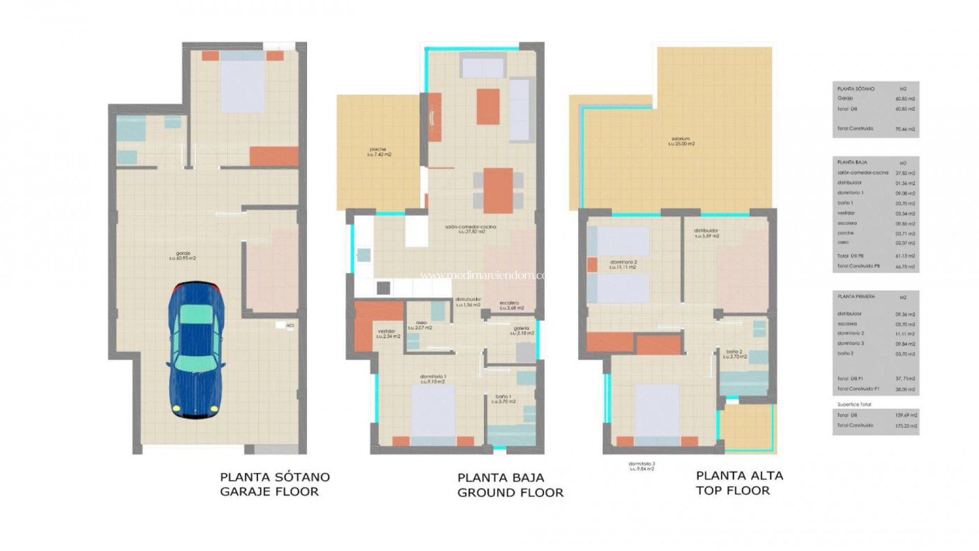 VILLAS NEUVES À LOS ALTOS DE TORREVIEJA Amazing New Built villas avec de belles vues à Los Altos, Torrevieja. Les villas sont construites sur des parcelles de 177 à 254 m2 et sont réparties sur deux étages plus le sous-sol, avec 3 chambres à coucher, 2 salles de bain, des toilettes pour invités, une piscine privée et un solarium. Au rez-de-chaussée, il y a un plan ouvert entre le salon et la cuisine, 1 chambre spacieuse avec salle de bain privée et dressing, ainsi qu'une toilette pour les invités. Au deuxième étage, il y a 2 chambres spacieuses avec des armoires encastrées et une sortie vers une grande terrasse idéale pour profiter du soleil toute la journée. Les villas sont livrées avec une piscine privée, un garage au sous-sol, un jardin fini avec du gazon artificiel et une climatisation pré-installée dans le salon et les chambres. Dans les environs, vous trouverez des restaurants, des supermarchés, des cafés et toutes les commodités dont vous pourriez avoir besoin. Les belles plages de Torrevieja - La Veleta, de los Naufragos ou Acequion peuvent être atteintes en quelques minutes en vélo ou en voiture. Torrevieja est une ville espagnole de la province d'Alicante, sur la Costa Blanca. Elle est connue pour son climat typiquement méditerranéen et son littoral. Elle possède des promenades avec des stations balnéaires le long de ses plages de sable. Le petit musée de la mer et du sel abrite des expositions sur l'histoire de la pêche et du sel de la ville. À l'intérieur, le parc naturel Lagunas de La Mata-Torrevieja dispose de sentiers et de deux lagunes salées, l'une rose et l'autre verte. L'aéroport d'Alicante se trouve à 40 minutes et celui de Murcie à environ 1 heure.