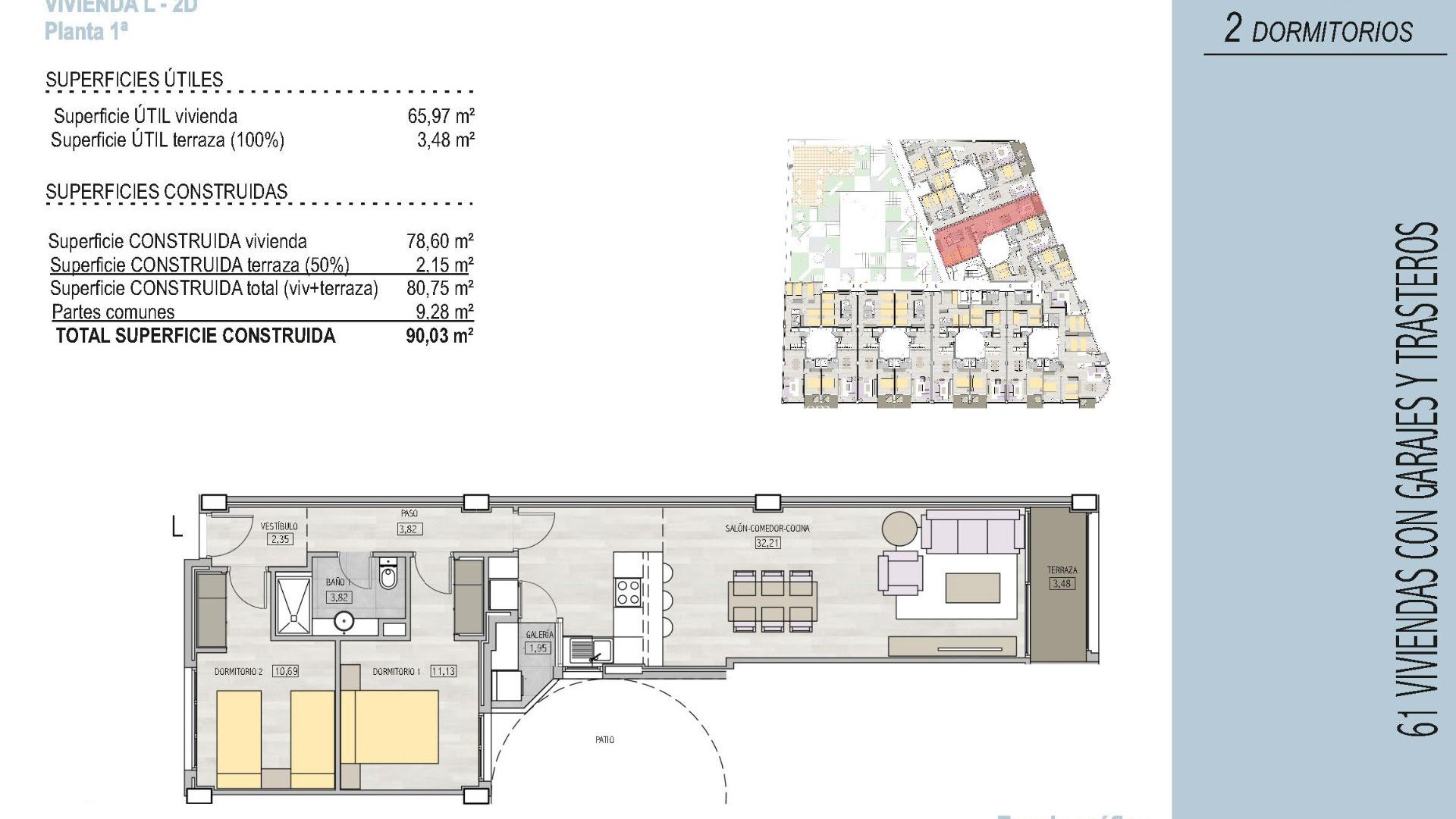 NOUVEAU COMPLEXE RÉSIDENTIEL DANS LA VILLE D'ALICANTE Nouveau complexe résidentiel de 61 appartements et penthouses avec 2, 3 et 4 chambres à coucher dans le quartier de La Florida, Alicante. La résidence dispose d'un solarium commun sur le toit avec des piscines pour adultes et enfants, des espaces verts et des zones de détente, ainsi qu'un jardin commun avec une aire de jeux au rez-de-chaussée. Le complexe bénéficie de la lumière de la ville et de son climat privilégié. De plus, son système avancé d'efficacité énergétique A+ le rend totalement durable. Le quartier de La Florida est l'un des quartiers les plus emblématiques de la capitale d'Alicante, un quartier caractérisé par une savante combinaison de rues étroites avec de larges avenues et de charmantes places, toutes pleines de vie de quartier, où les fêtes et les traditions locales sont très populaires, et où les commerces traditionnels coexistent avec des magasins innovants et toutes sortes de services. Ainsi, le quartier est parfaitement connecté aux accès à l'autoroute. En outre, plusieurs lignes de bus permettent de rejoindre le centre-ville en 10-15 minutes maximum. Le long des rues qui composent le quartier, vous pourrez profiter d'une offre de loisirs et de restauration des plus variées. Prendre un café, choisir un restaurant, boire un verre ou faire toutes sortes de shopping est à portée de main à tout moment. Des petits commerces de proximité aux grandes chaînes de supermarchés et aux hypermarchés, en passant par les marchés alimentaires, les habitants de La Florida disposent d'une grande variété d'établissements où ils peuvent remplir leur panier de produits de la meilleure qualité, tout en ayant la commodité d'être proches de chez eux. De plus, tous les jeudis et samedis, le quartier voisin de Florida-Babel, situé à quelques minutes à pied, propose un marché de rue traditionnel. Florida offre à ses habitants des centres éducatifs pour tous les âges. Crèches et jardins d'enfants, écoles primaires et secondaires, et plusieurs établissements d'enseignement secondaire permettent à tous les parents d'offrir à leurs enfants de quoi étudier dans le quartier. En outre, une ligne de bus spéciale relie quotidiennement le quartier à l'université d'Alicante.