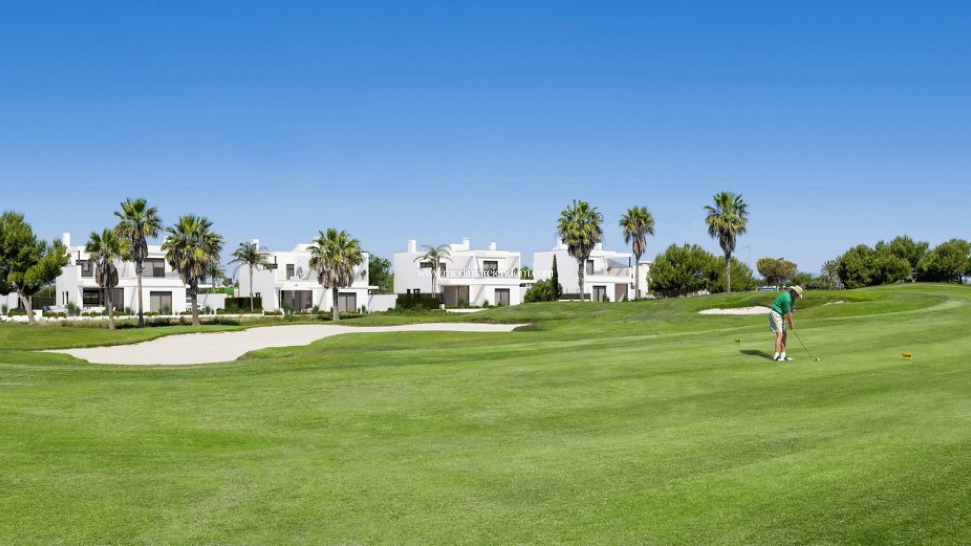 VILLAS DE GOLF EN PREMIÈRE LIGNE À RODA GOLF Villa Front Line Golf avec piscine privée et parking sur le terrain. La villa dispose d'une terrasse au rez-de-chaussée et de 2 terrasses au premier étage qui permettent de profiter du soleil à toutes les heures, tous les jours de l'année. Le complexe est situé à Roda Golf (Murcie), près des plages de Mar Menor, et entouré de tous les services et installations sportives.