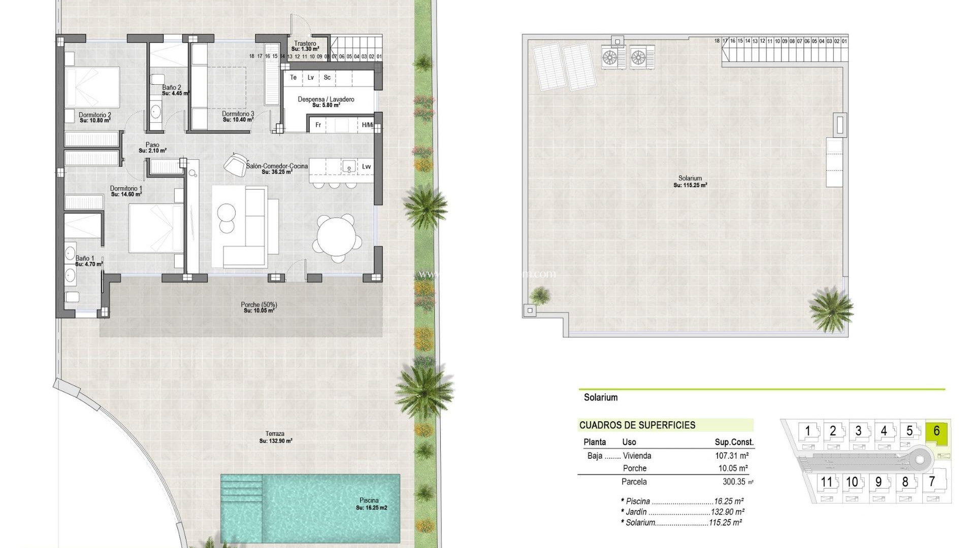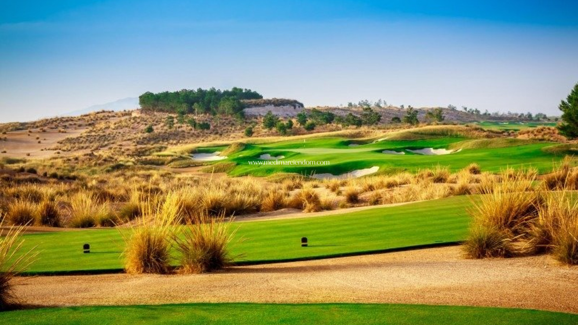 VILLAS DE NOUVELLE CONSTRUCTION À CONDADO DE ALHAMA GOLF COURSE Nouveau complexe résidentiel de villas et d'appartements à Condado de Alhama. Il s'agit de 11 villas indépendantes, avec piscine privée, solarium et parking extérieur, avec de grandes terrasses exposées au sud et une cuisine d'été, où vous pourrez profiter du soleil toute l'année. Ces belles villas, construites avec les plus hauts standards de qualité, ont 2, 3 ou 4 chambres à coucher et 2 ou 3 salles de bains entièrement équipées. Les villas ont été conçues dans un style contemporain et un concept ouvert, comprenant une cuisine équipée et un salon-salle à manger. Le projet est situé à Condado de Alhama, Murcie, dans une station balnéaire de luxe, avec des zones sportives et entouré par la nature, tous les services, et plusieurs terrains de golf. La propriété répondra aux normes les plus élevées et sera équipée de : Piscine privée avec douche solaire et de vastes espaces verts. Cuisine entièrement meublée et équipée avec four et micro-ondes surélevés et en colonne, réfrigérateur et lave-vaisselle intégrés, plaque à induction et hotte aspirante. Éclairage : à l'intérieur de la propriété (salle à manger, cuisine, couloirs et salles de bains), ainsi que dans les espaces extérieurs. Penderies doublées avec tiroirs et étagères. Salles de bains entièrement équipées avec meuble-lavabo, toilettes suspendues, miroir, douche murale, écrans de douche et chauffage radiant au sol. Pré-installation de la climatisation par conduits. Cuisine d'été sur le solarium. Solarium. Place de parking extérieure. Points de charge pour voitures électriques. Condado de Alhama Golf Resort est un fantastique complexe de golf offrant de nombreux équipements et services. Un centre commercial, un centre sportif, une variété de bars et de restaurants, des supermarchés et plus de 25 piscines et jardins communs. Le Condado de Alhama Golf Resort possède son propre terrain de golf conçu par Jack Nicklaus et se trouve à seulement 15 minutes des magnifiques plages de Bolnuevo et de Mazarron. Mazarron possède plus de 35 km de côtes, dont la plupart sont des côtes intactes. De nombreuses plages de la baie de Mazarron ont reçu le drapeau bleu pour leur qualité. Le Condado de Alhama Golf Resort se trouve à seulement 20 minutes du nouvel aéroport international de Corvera.