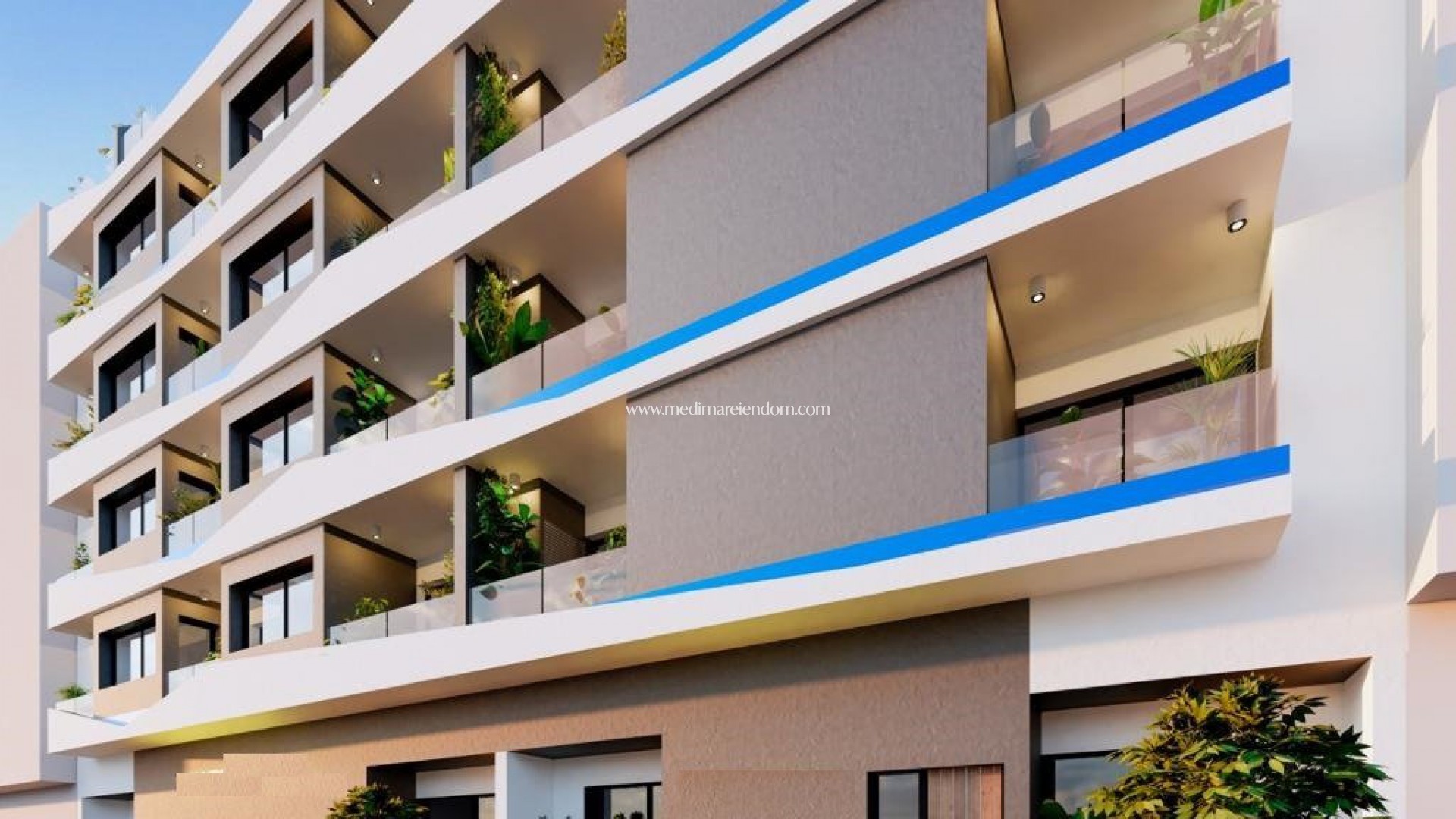 APPARTEMENTS ET PENTHOUSES NEUFS À TORREVIEJA Nouvelle construction privilégiée à 350 mètres de la plage d'El Cura à Torrevieja, offrant 29 appartements et penthouses avec 1 ou 2 chambres et une piscine sur le toit. Profitez des vues sur la mer depuis le toit-terrasse de cet immeuble moderne, où vous aurez accès à une piscine avec cascade et à un espace de relaxation pour vous détendre et profiter au maximum des journées ensoleillées. Un espace de garage et un débarras sont disponibles en option, moyennant un coût supplémentaire. Les appartements sont répartis du rez-de-chaussée au cinquième étage. Tous les appartements ont une terrasse accueillante qui invite l'air frais et la lumière du soleil, où vous pouvez vous détendre et apprécier la première gorgée de café du matin. La plupart des appartements disposent de deux chambres et de deux salles de bains, à l'exception d'un des penthouses, qui dispose d'une chambre et d'une salle de bains. Tous sont dotés d'un plan ouvert avec des cuisines intégrées dans les spacieux salons/salles à manger, ainsi que d'intérieurs lumineux et de balustrades en verre. Torrevieja est une ville espagnole de la province d'Alicante, sur la Costa Blanca. Elle est connue pour son climat et son littoral typiquement méditerranéens. Elle possède des promenades avec des stations balnéaires le long de ses plages de sable. Le petit musée de la mer et du sel abrite des expositions sur l'histoire de la pêche et du sel de la ville. À l'intérieur, le parc naturel Lagunas de La Mata-Torrevieja dispose de sentiers et de deux lagunes salées, l'une rose et l'autre verte. L'aéroport d'Alicante se trouve à 40 minutes et celui de Murcie à environ 1 heure.