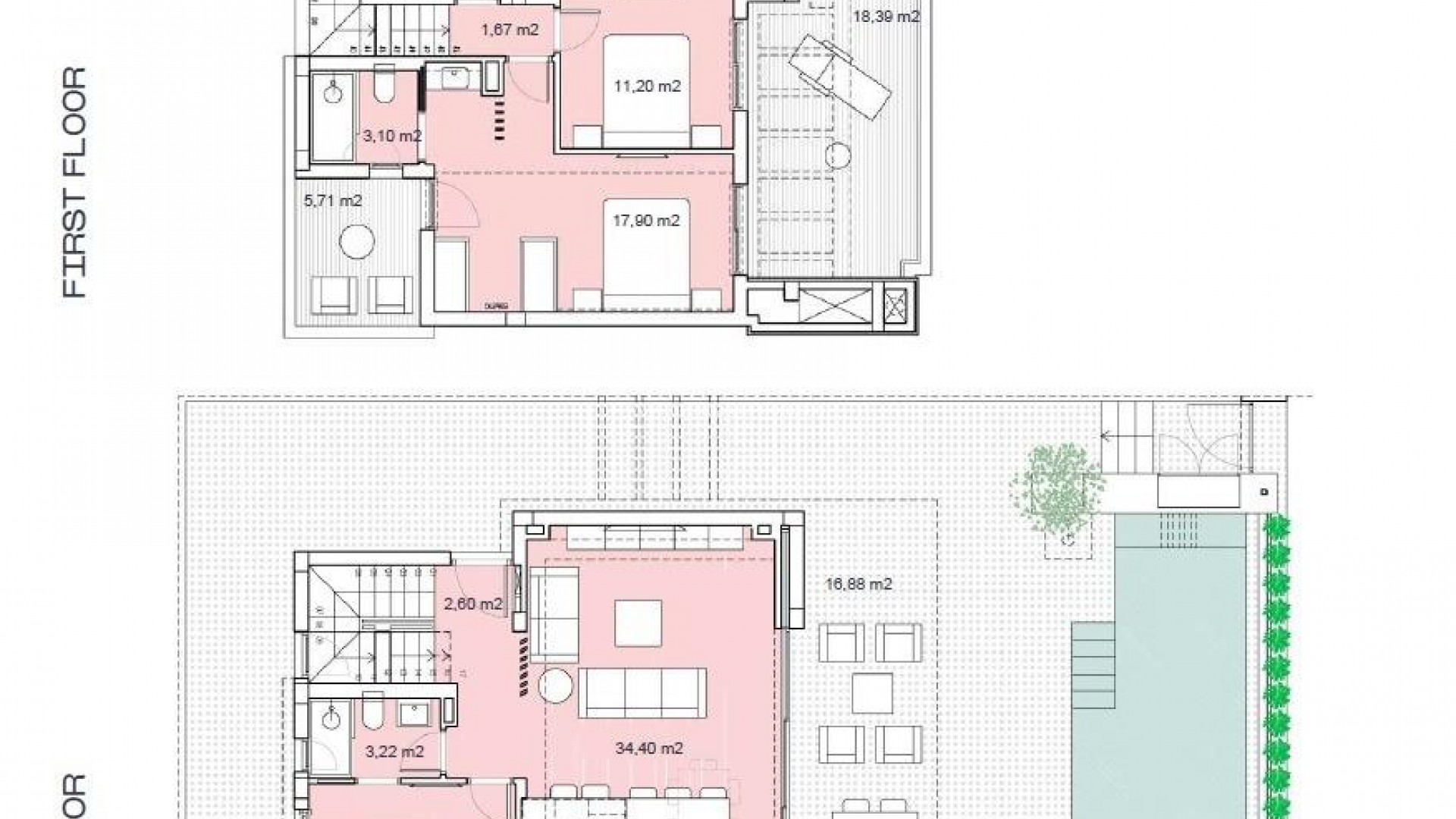 VILLAS NEUVES DANS UN COMPLEXE PRIVÉ DANS LA PROVINCE DE MURCIE Villas neuves dans un complexe privé dans la région de Murcie, entourées d'excellents terrains de golf et à seulement 10 minutes des plages de sable de la mer de Mar Menor. Les villas sont construites sur 3 étages et disposent de 3 chambres à coucher, 3 salles de bains, cuisine ouverte et salon-salle à manger, placards équipés, sous-sol, jardin privé avec la piscine et place de parking. Elles sont situées dans un complexe privé, avec une entrée principale et une sécurité 24h/24h. Le complexe est conçu autour d'un impressionnant espace vert de 126 000 m2. Il comprend des sentiers de promenade et des pistes cyclables, des installations sportives, des courts de paddle et de tennis, un parcours de mini-golf, des jardins, des parcs pour chiens, des aires de loisirs, un clubhouse..... C'est également dans cette zone centrale que se trouve le joyau de la station, un lac artificiel cristallin de près de 17 000 m2 de surface d'eau, entouré de plages de sable blanc et de palmiers, apportant un morceau des Caraïbes à la région de Murcie. Il y a deux îles sur le lac, dont l'une possède son propre bar, et des "chiringuitos de plage" sont également répartis autour du lac. Le complexe est stratégiquement situé à moins de 4 km de la plage et de la ville de Los Alcázares, où l'on peut pratiquer divers sports nautiques, entouré de plusieurs terrains de golf et de la ville de Cartagena, à moins de 15 minutes en voiture et à 22 km de l'aéroport de Murcie, ce qui permet de disposer d'une vaste offre culturelle, gastronomique et sportive à portée de main.