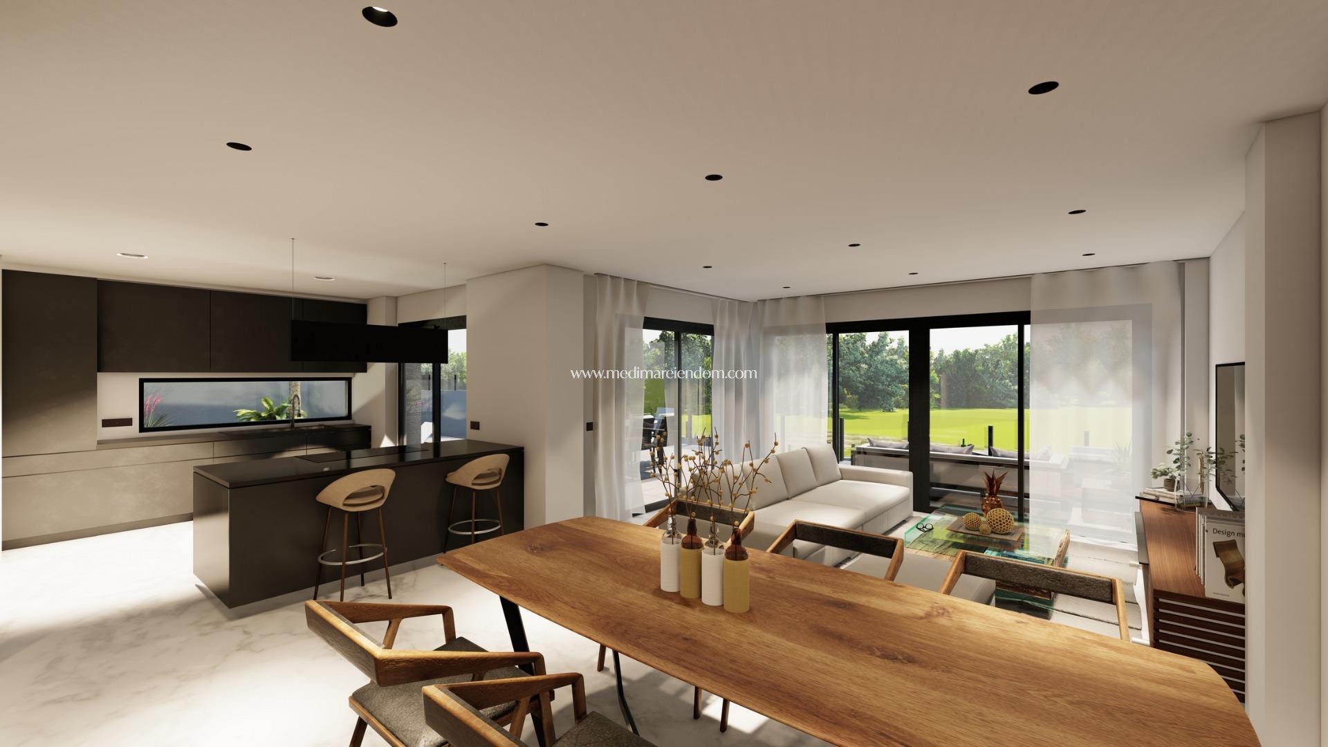 VILLA NEUVE A ROJALES Villa moderne nouvellement construite à La Marquesa Golf, Rojales. Villa avec de grands espaces intérieurs, composée d'une cuisine, d'un salon et d'une salle à manger, le tout dans un grand espace ouvert où le design des espaces prévaut, 3 chambres, 3 salles de bains complètes, en plus il y a un garage en sous-sol pour 2 véhicules et 2 terrasses extérieures au 1er étage avec vue sur le terrain de golf. La propriété est développée sur 2 étages avec une extension de 145m2 d'espace habitable plus 95m2 d'espace de garage. La villa est construite sur un terrain de 450m2 dont 337m2 sont destinés aux jardins, aux terrasses extérieures et à la piscine. Le tout avec des matériaux de première qualité et les meilleures finitions. Villa située à côté du terrain de golf La Marquesa dans un quartier calme et à seulement 10 minutes de la côte. Rojales est une ville traditionnellement agricole qui est devenue l'une des destinations préférées de l'intérieur de la Vega Baja, grâce à sa situation stratégique près de la N-332 et de l'AP-7. Ses excellents accès vous permettent de rejoindre l'aéroport d'Alicante en 20 minutes et de profiter des plages de Guardamar, La Mata ou Torrevieja en 15 minutes. Rojales propose une offre gastronomique et de loisirs riche et variée, et possède le prestigieux terrain de golf La Marquesa Golf. La Marquesa Golf est l'un des parcours les plus historiques de la Costa Blanca, avec 18 trous dont un aussi spécial que le 17e trou de Sawgrass. Tradition, qualité et expérience se conjuguent pour offrir aux golfeurs qui nous rendent visite une expérience unique, chargée d'histoire.