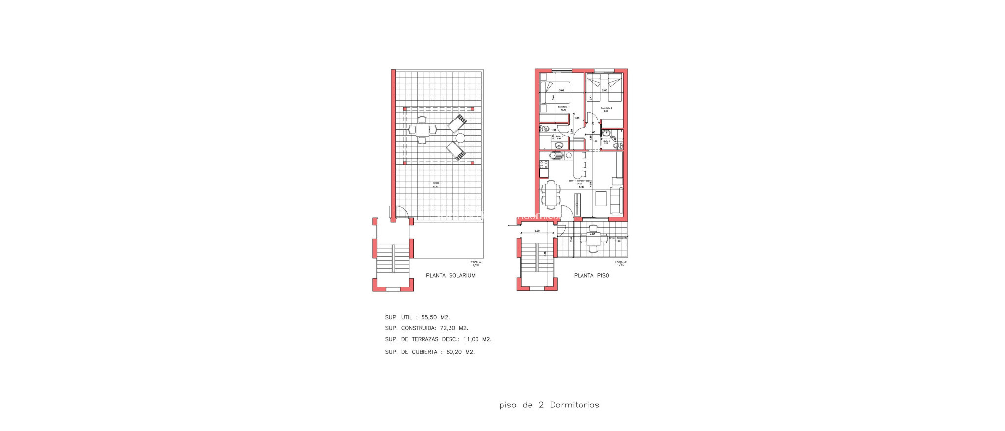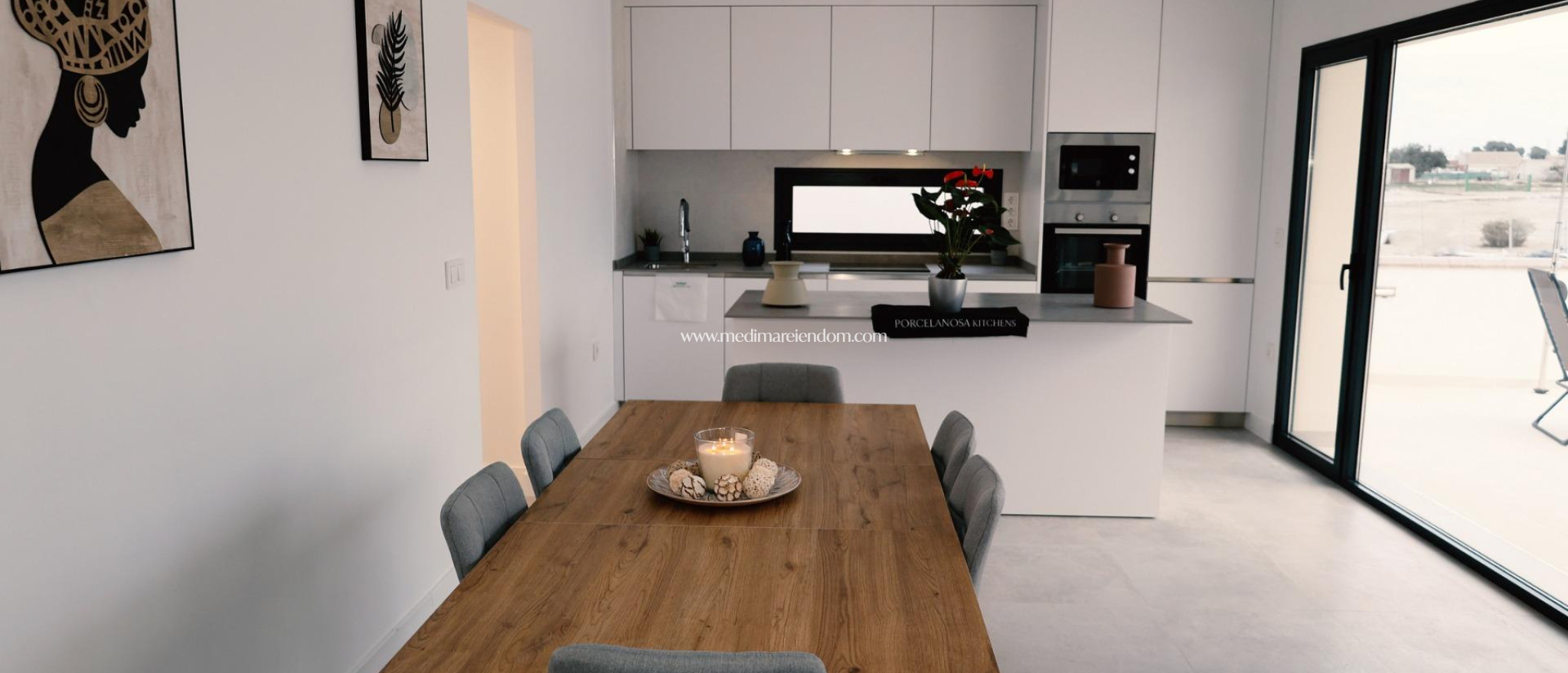 BUNGALOWS NEUFS À FUENTE ALAMO, MURCIA Nouvelle construction résidentielle d'appartements de plain-pied à Fuente Alamo, Murcie. Bungalows au rez-de-chaussée avec jardin privé et bungalows au dernier étage avec solarium privé. Cet emplacement offre un cadre naturel exceptionnel, loin de l'agitation des grandes villes et de la pression touristique de la côte. De plus, nous nous engageons à travailler dans une perspective de développement durable, en minimisant notre impact sur l'environnement et en maximisant l'intégration avec la communauté locale. Ici, vos rêves d'un mode de vie paisible et durable deviennent réalité. Imaginez que vous vous réveillez chaque matin dans un cadre naturel époustouflant, entouré de paysages sereins et de la beauté unique de la campagne de Murcie. Les projets de construction neuve privilégient l'efficacité énergétique, l'utilisation de matériaux respectueux de l'environnement et l'intégration harmonieuse dans l'environnement rural. De la conception de la propriété à la planification du développement, nous nous efforçons de réduire notre empreinte carbone et de promouvoir des pratiques responsables dans toutes nos activités. Développement donnant la priorité à l'efficacité énergétique et à l'intégration communautaire pour créer des logements de haute qualité en harmonie avec l'environnement naturel. Pré-installation d'un système d'air conditionné canalisé, chaud/froid, installation de machines dans les options. Système d'interphone vidéo. Porte d'accès de sécurité laquée en couleur, avec serrure et accessoires de sécurité anti-vandalisme. Penderies avec coffre, doublées à l'intérieur, laquées en blanc. Les meubles de cuisine ne sont pas inclus (en option) : - Meublée d'éléments hauts et bas. Entièrement équipée. Possibilité de tout type de modification par le client. - Plan de travail en pierre. - Évier en acier inoxydable, avec robinetterie Roca ou similaire. - Plaque vitrocéramique, hotte aspirante et four électrique, en acier inoxydable. Balay ou similaire. Système de panneaux solaires photovoltaïques, avec réservoir d'accumulation. Pré-installation d'un système d'air conditionné canalisé, chaud/froid, installation de machines en option. Possibilité d'apporter des modifications à la propriété, sous réserve d'une évaluation préalable approuvée par les deux parties. Fuente Álamo de Murcia est une ville et une municipalité de la région de Murcie, dans le sud de l'Espagne. Elle est située à 22 km au nord-ouest de Carthagène et à 35 km au sud-ouest de Murcie. La ville se trouve dans le bassin de la Mar Menor, entourée des montagnes d'Algarrobo, Los Gómez, Los Victorias et du Carrascoy. L'eau de ces montagnes s'écoule dans la Rambla de Fuente Álamo, puis dans la Mar Menor. Fuente Álamo se trouve à 30 minutes de l'aéroport de Murcie-Corvera.