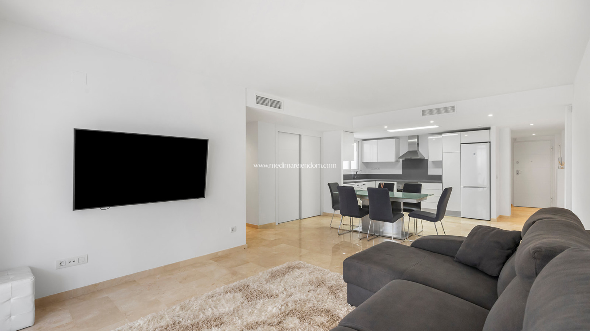 Cet élégant appartement au troisième étage est situé dans La Recoleta, une résidence prestigieuse à Punta Prima, Torrevieja. La propriété offre une surface construite de 124 m², répartie en trois chambres et deux salles de bain, offrant un espace de vie spacieux et confortable. L'appartement dispose d'un salon-salle à manger lumineux et d'une cuisine américaine entièrement équipée. Depuis le salon, on accède à une terrasse de 15 m² orientée à l’ouest, idéale pour profiter des magnifiques couchers de soleil et d’une atmosphère chaleureuse et accueillante. L’appartement est vendu entièrement meublé et prêt à emménager. Le complexe résidentiel La Recoleta offre à ses résidents une variété de services, notamment des piscines communes, de vastes jardins et une sécurité 24h/24 dans une résidence fermée, garantissant tranquillité et bien-être. De plus, la propriété comprend une place de parking souterrain et un débarras, ajoutant confort et espace de rangement supplémentaire. Situé à Punta Prima, l’appartement se trouve à quelques pas des plages locales et de la promenade maritime. Le quartier est bien desservi et propose une large gamme de services, tels que des restaurants, des boutiques et des centres commerciaux, en faisant une option idéale aussi bien pour une résidence principale que pour un investissement locatif saisonnier.