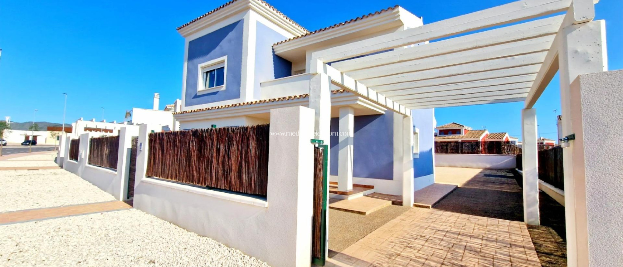 Villas neuves sur des terrains spacieux de plus de 500 m² à Lorca Villas neuves de style méditerranéen dans un quartier résidentiel sécurisé et tranquille Découvrez un développement exclusif de villas indépendantes sur des parcelles de plus de 500m², stratégiquement situé dans le sud-est de l'Espagne. Ces maisons offrent la combinaison parfaite entre la tranquillité de la campagne, la proximité de la côte et d'excellentes connexions routières avec les principales villes et les aéroports. Niché dans un cadre privilégié sur la Costa Cálida, ce lotissement bénéficie d'un ensoleillement tout au long de l'année, ce qui en fait un lieu idéal pour profiter du style de vie méditerranéen. Maisons spacieuses et lumineuses avec jardins privés Conçues pour offrir un maximum de confort et de détente, ces villas sont dotées d'espaces de vie ouverts, avec de grandes fenêtres, qui relient harmonieusement les espaces intérieurs et extérieurs. Le généreux jardin privé offre un cadre parfait pour les loisirs en plein air, avec la possibilité d'ajouter une piscine et de personnaliser l'aménagement paysager. Choisissez parmi trois modèles de villas, disponibles sur un ou deux étages, avec 3 ou 4 chambres et 2 ou 3 salles de bains. Chaque maison comprend un solarium privé, ce qui permet aux résidents de profiter pleinement de la beauté des lieux. Une communauté sécurisée et bien équipée Cette urbanisation clôturée offre un service de sécurité 24 heures sur 24 avec accès contrôlé, garantissant la tranquillité d'esprit de tous les résidents. Conçue dans le respect de l'environnement, la communauté comprend : Deux grands parcs paysagers pour la détente et les activités familiales. Des aires de sport et de jeux dédiées pour promouvoir un mode de vie actif. Des rues bordées d'arbres et une piste cyclable de 3,5 km longeant le périmètre de l'urbanisation. Une zone commerciale à l'entrée, qui comprendra un restaurant, un supermarché, une station-service et d'autres services essentiels. Des finitions de haute qualité pour un confort maximal Chaque villa est construite avec des matériaux de première qualité et des installations modernes : Pré-installation pour l'air conditionné Pré-installation pour le gaz naturel Porte d'entrée sécurisée Fenêtres Climalit à double vitrage Communauté entièrement clôturée et surveillée 24 heures sur 24 Situation privilégiée - proche de la côte et des commodités de la ville Situées dans une zone nouvellement développée de la municipalité de Lorca, ces villas offrent un environnement naturel et paisible tout en conservant un accès facile aux principaux sites : Centre ville de Lorca - 10 km Plages d'Águilas - 20 km Aéroport de Murcia-Corvera - 70 km Aéroport d'Alicante - 130 km Centres commerciaux et restaurants - 10 km Trouvez votre maison idéale sur la Costa Cálida Avec 50 maisons déjà achevées et un total de 320 prévues, c'est l'occasion d'acquérir une nouvelle villa de style méditerranéen dans une nouvelle communauté en plein essor. Qu'il s'agisse d'une résidence permanente, d'une maison de vacances ou d'un investissement, ces propriétés offrent un excellent rapport qualité-prix dans un emplacement de choix. Contactez-nous dès aujourd'hui pour en savoir plus et organiser une visite !