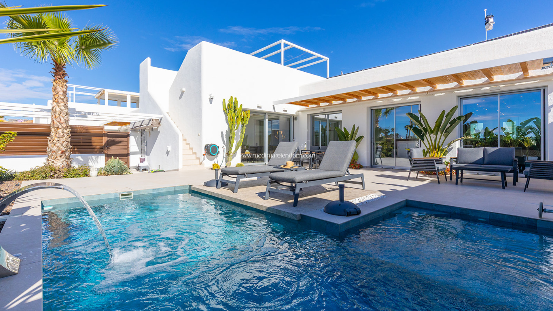 Cette villa moderne est située dans le quartier résidentiel paisible de La Herrada, à Los Montesinos. La propriété offre une surface construite de 114 m² sur un terrain de 257 m², entièrement répartie sur un seul niveau avec un design en L, optimisant l’espace et garantissant une disposition confortable et fonctionnelle. Elle comprend trois chambres et deux salles de bains, offrant des espaces lumineux et spacieux pour un confort de vie optimal. La maison dispose d’une piscine privée chauffée, idéale pour profiter de la baignade toute l’année et tirer le meilleur parti du climat méditerranéen en toute intimité. De plus, elle possède un solarium de 47 m², parfait pour bronzer et profiter de vues panoramiques sur les environs. La villa est entièrement meublée, avec une cuisine entièrement équipée et des finitions de haute qualité dans toutes les pièces. Son orientation sud-ouest assure une excellente luminosité naturelle tout au long de la journée. La propriété comprend également un jardin privé et un espace de rangement, offrant un espace supplémentaire pour plus de commodité. Située à environ 10 km de la mer, cette villa permet un accès rapide aux magnifiques plages de la Costa Blanca. Le quartier de Los Montesinos est réputé pour son atmosphère calme et familiale, offrant une large gamme de services et commodités, notamment des supermarchés, des restaurants et des centres commerciaux. Son excellente infrastructure et ses connexions de transport facilitent l’accès aux autres zones d’intérêt de la Costa Blanca, en faisant une option idéale aussi bien pour une résidence principale que pour un investissement dans une résidence de vacances.