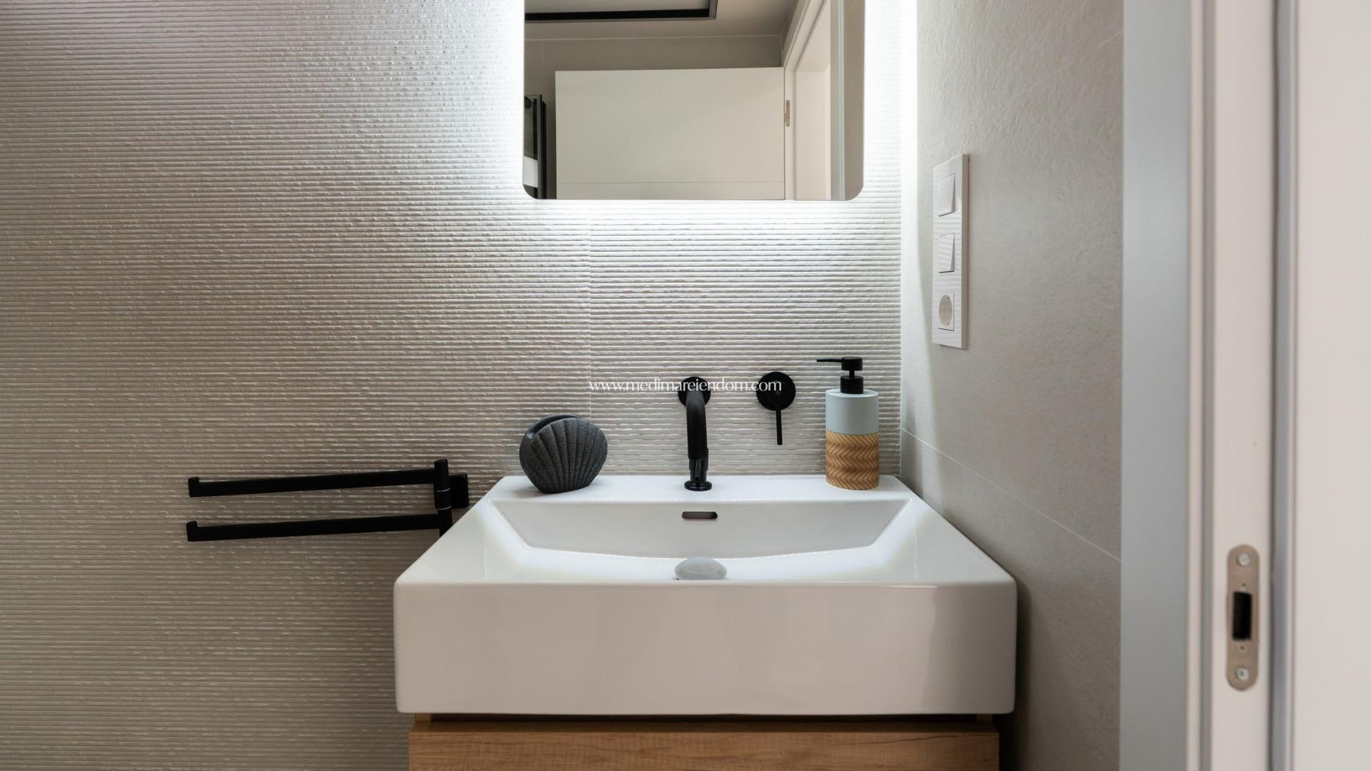 Villa de luxe à 800 mètres de la mer à Campoamor, Costa Blanca Sud Emplacement privilégié dans un cadre naturel et exclusif Située dans l'un des quartiers les plus calmes et les plus privés de Campoamor, cette villa spectaculaire allie luxe, confort et un emplacement exceptionnel à seulement 800 mètres des plages de Cala de Campoamor et Playa de los Diez Picos. Cette villa offre un accès exclusif à une zone sportive réservée aux propriétaires, qui comprend des courts de paddle, des terrains de tennis, de football, de basket-ball et plusieurs piscines. L'environnement naturel qui entoure la propriété comprend des espaces protégés tels que la Sierra Escalona et les salines de San Pedro del Pinatar et Torrevieja, idéaux pour les amoureux de la nature et de la biodiversité. Villa moderne au design contemporain et à l'efficacité énergétique Avec un terrain de 676 m² et une surface construite de 227 m² répartis sur deux étages, cette villa est conçue pour offrir un maximum de confort. Elle dispose de 4 chambres doubles, 5 salles de bains complètes et d'un spacieux salon-salle à manger avec cuisine intégrée de plus de 50 m². Le système d'aérothermie garantit l'efficacité énergétique et la durabilité. Intérieurs élégants et fonctionnels La cuisine, entièrement équipée d'appareils électroménagers Bosch, se distingue par son îlot central décoré de palissandre, son éclairage LED et une porte dissimulée pratique qui donne accès à la buanderie, au garage et à la salle de bains extérieure. Le salon dispose de grandes baies vitrées qui créent une connexion visuelle avec l'extérieur, renforçant l'espace et créant une atmosphère lumineuse et accueillante. Chambres et salles de bains conçues pour le confort La chambre principale dispose d'un dressing et d'une salle de bains en suite. Toutes les salles de bains présentent un design exclusif, avec des finitions modernes et des sèche-serviettes électriques (sauf à l'extérieur). L'éclairage LED est soigneusement réparti dans toute la maison pour apporter chaleur et style. Spectaculaire espace extérieur avec piscine et cuisine en plein air La villa comprend deux porches, une piscine privée de 47 m² avec jacuzzi et plage, ainsi qu'un solarium à l'étage supérieur. L'espace chill out, agrémenté d'un éclairage LED, crée un cadre parfait pour se détendre. La cuisine extérieure fait de cette villa l'endroit idéal pour profiter du climat méditerranéen en famille ou entre amis. Points d'intérêt à proximité Plage de Campoamor : 0,8 km Parcours de golf Las Ramblas : 3 km Centre commercial Zenia Boulevard : 6 km Aéroport de Murcie : 45 km Aéroport d'Alicante : 70 km Centre de Torrevieja : 13 km Vivez la Costa Blanca à son maximum Profitez de plus de 300 jours de soleil par an, avec une température moyenne de 20 °C, dans une villa entièrement équipée, prête à emménager. Parfaite comme résidence principale ou comme maison de vacances. Contactez-nous dès aujourd'hui pour plus d'informations ou pour organiser une visite de cette propriété exclusive à Campoamor.