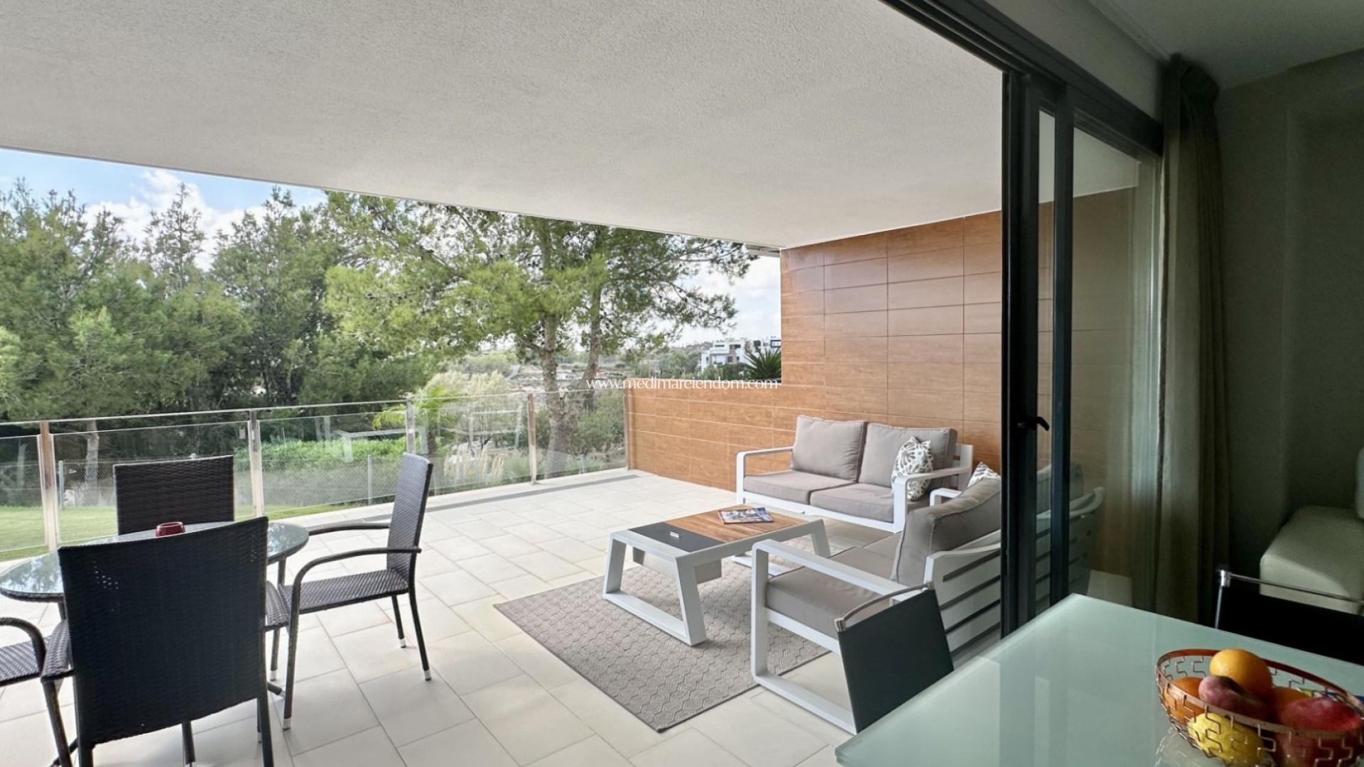 Nous sommes ravis de vous présenter ce superbe appartement de plain-pied, parfaitement entretenu, situé au cœur de Villamartín, l'un des quartiers les plus prisés d'Orihuela Costa. Ce logement élégant de 2 chambres et 2 salles de bains est prêt à vous accueillir et offre une combinaison idéale de confort, de design et d'espace de vie extérieur. Dès l'entrée, vous découvrirez un intérieur lumineux et moderne avec une cuisine ouverte, un salon spacieux et une buanderie séparée. L'appartement dispose de deux belles terrasses : une terrasse arrière de 36 m² donnant sur la piscine et les jardins communs, et une terrasse avant de 29 m² suffisamment grande pour garer votre voiture sur la parcelle privative. Vous pourrez ainsi profiter du soleil ou de l'ombre tout au long de la journée. Construit en 2013, ce bien bénéficie d'un design épuré et contemporain avec placards intégrés, climatisation et finitions de haute qualité. Situé dans un quartier calme et central, il est idéal que vous recherchiez une résidence principale, une résidence secondaire ou un investissement sûr. Caractéristiques principales : 2 chambres spacieuses et 2 salles de bains. Surface construite de 79 m² dont 60 m² habitables. Grandes terrasses privatives : 36 m² à l'arrière et 29 m² à l'avant. Cuisine entièrement équipée et buanderie. Placards intégrés, climatisation. Belle piscine et jardin communs. Immeuble écoénergétique (certifié). Ascenseur et résidence sécurisée. Garage privatif inclus. Exposition plein sud – luminosité optimale toute la journée. Emplacement exceptionnel : Villamartín est une destination dynamique tout au long de l'année, réputée pour ses golfs, sa communauté internationale et ses excellents services. Profitez de 4 golfs de renom à proximité (dont Las Colinas, classé parmi les meilleurs d'Espagne), ainsi que d'un large choix de restaurants, bars, supermarchés et lieux de divertissement. Le boulevard La Zenia, le plus grand centre commercial de la Costa Blanca, est à quelques minutes seulement. Plages, cinémas, karting et bien plus encore : tout est à portée de main. Ce bien est idéal pour toute personne recherchant un appartement élégant et facile d'entretien, idéalement situé sur la Costa Blanca et offrant un fort potentiel locatif. Ne ratez pas cette occasion ! Contactez-nous dès aujourd’hui pour programmer votre visite privée. Bienvenue chez vous.
