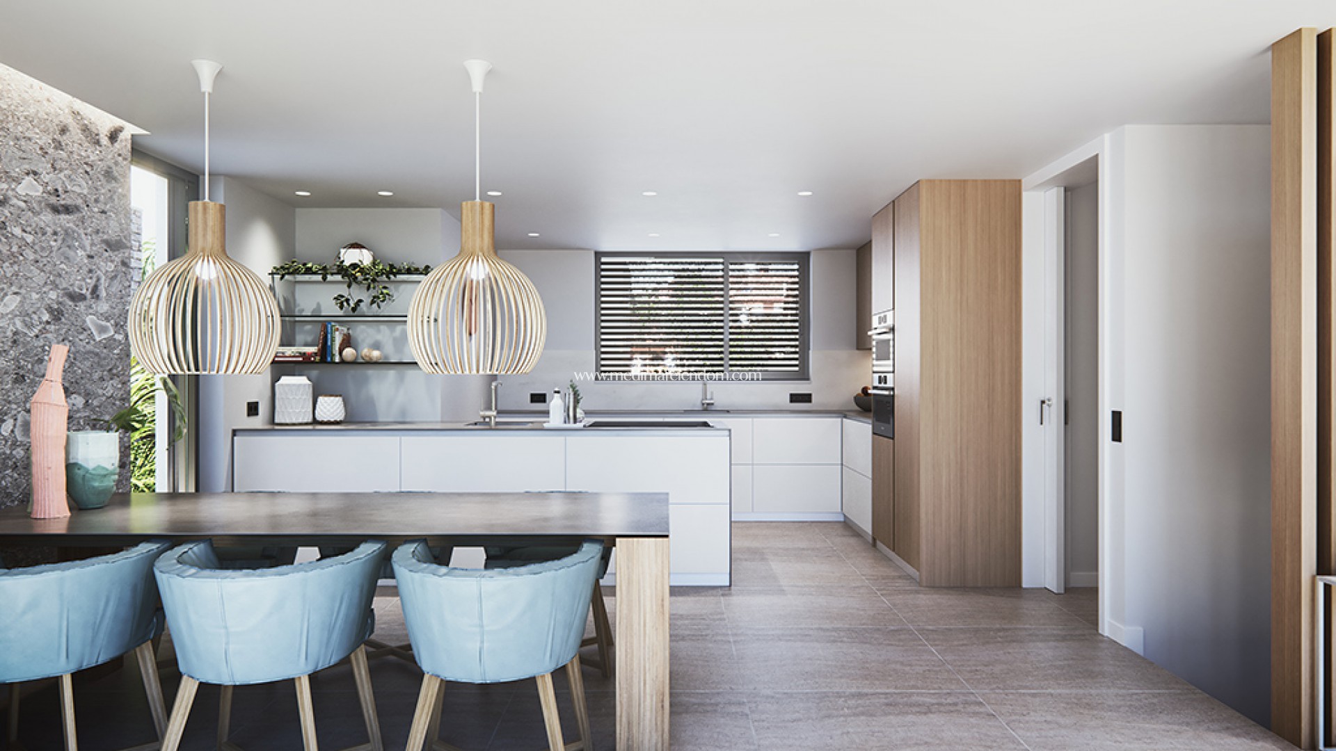 Lúxus einbýlishús með 3 svefnherbergjum byggt í hæsta gæðaflokki í Cabo de Palos (La Manga). Húsið hefur þrjú stór svefnherbergi, hjónaherbergi með baðherbergi og búningsklefa en suite, þrjú baðherbergi og gestasalerni, loftkæling og upphitun, nútíma opið eldhús með stofu.