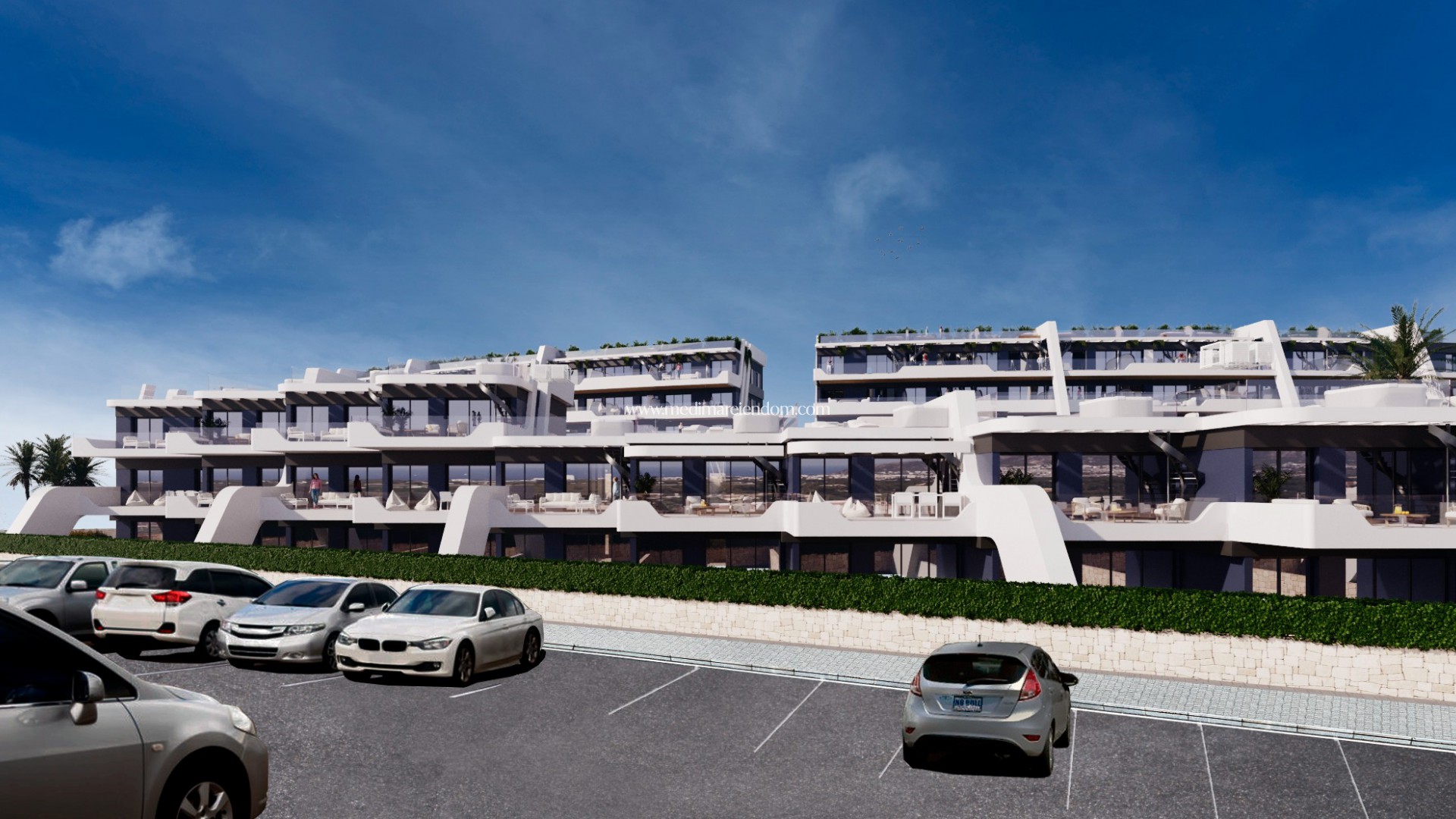 Lúxus íbúðarsamstæða staðsett í Alfaz del Pi. Hægt er að velja á milli jarðhæðaríbúða með 2-3 svefnherbergjum og sérgarði, miðhæðaríbúða 2-3 herbergja eða efstu hæða með 2 svefnherbergjum og þakverönd.