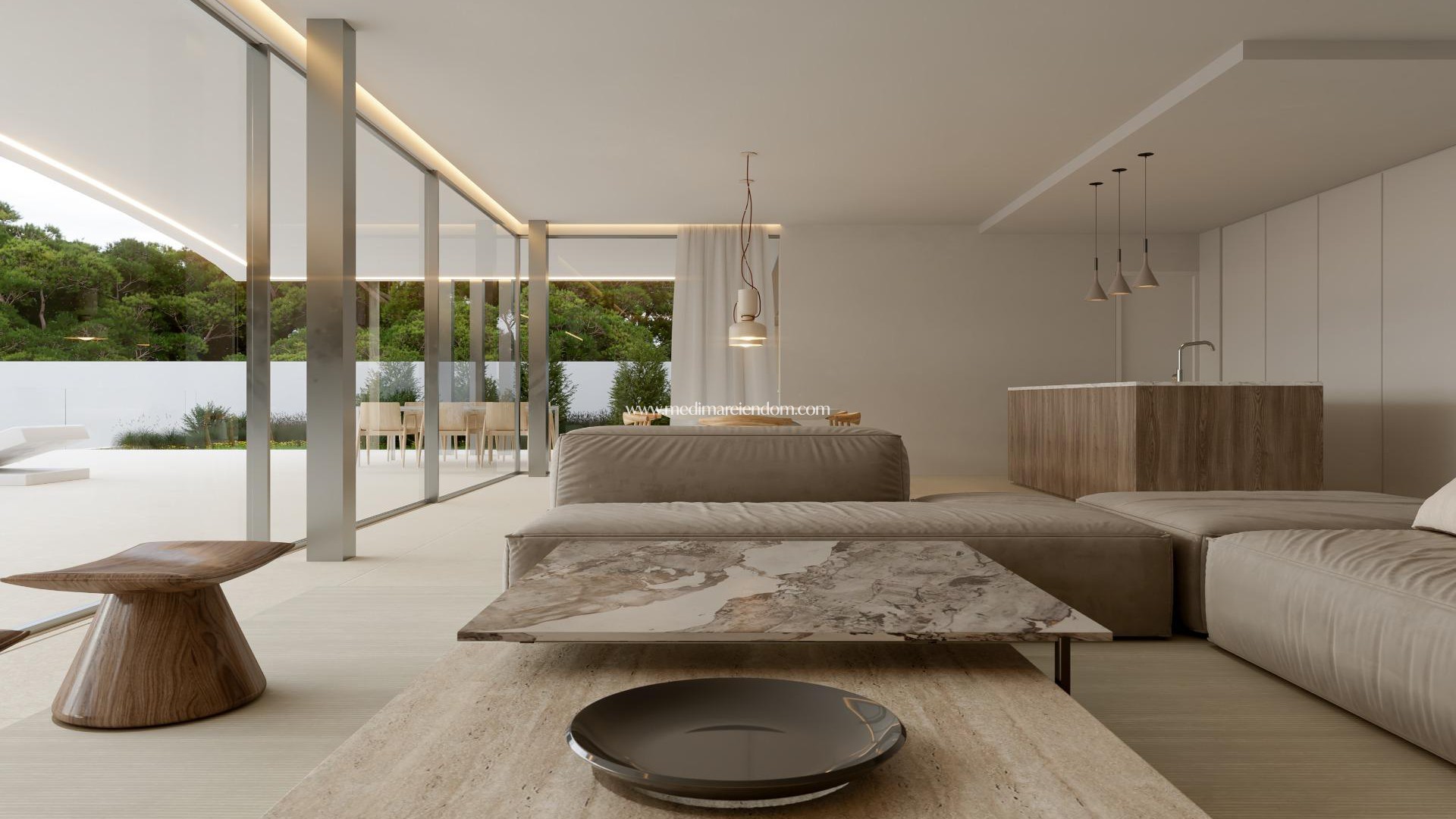 NÝBYGGÐ VILLA Í MORAIRA Nýbygging Lúxusvilla staðsett í Moraira á hinu einkarekna svæði sem heitir Moravit. Lóðin, sem er töluverð að stærð, nánar tiltekið 1.412 m2, er með sjávarútsýni af báðum hæðum auk opins útsýnis yfir furuskóginn. Húsið er í vandaðri hönnun með vönduðum innréttingum. Það er með tvöföldum bílskúr ásamt yfirbyggðu bílastæði, 4 svefnherbergi, fimm baðherbergi (eitt að utan) og gestasalerni, afslöppunarsvæði á efstu hæð með óviðjafnanlegu útsýni yfir hafið, stórt svæði í kjallara til að klára hjá viðskiptavininum. ánægju (að hluta sagði frágangur ekki innifalinn), sumareldhús. Yfirbyggt svæði er 680 m2 auk 222 m2 af veröndum. Laugin er 11m og er yfirfull af vatni sem rennur út með veröndinni. Að sjálfsögðu inniheldur það nútímalegt eldhús með eyju með öllum rafmagnstækjum, lofthitakerfi (gólfhiti og loftkæling), baðherbergishúsgögn, innbyggðir veggkranar, tæknilega LED lýsingu, postulínsgólf í stóru sniði, fullkomið garður með sjálfvirku áveitukerfi o.fl. Staðsett nálægt ströndinni, verslunum, veitingastöðum og þjónustu, allt í innan við 1 km fjarlægð. Þetta er rólegt svæði, enda síðasta húsið í blindgötu. Moraira er lítill bær með góðum veitingastöðum, börum og fullt af matvöruverslunum í kring. Það er mjög skemmtileg strönd rétt við bæinn sem er frábær fyrir fjölskyldur. Sjávarbakkinn býður upp á stórkostlegt útsýni yfir Penon Ifach yfir flóann í Calpe. Strandvegurinn sem kemst þangað er vel þess virði að fara með stórkostlegu útsýni. Moraira er staðsett um 1 klukkustund og 15 mínútur norður upp A7 frá flugvellinum í Alicante og það er frekar auðvelt að komast að. Það er um sömu fjarlægð eða aðeins minna suður frá Valencia flugvelli.