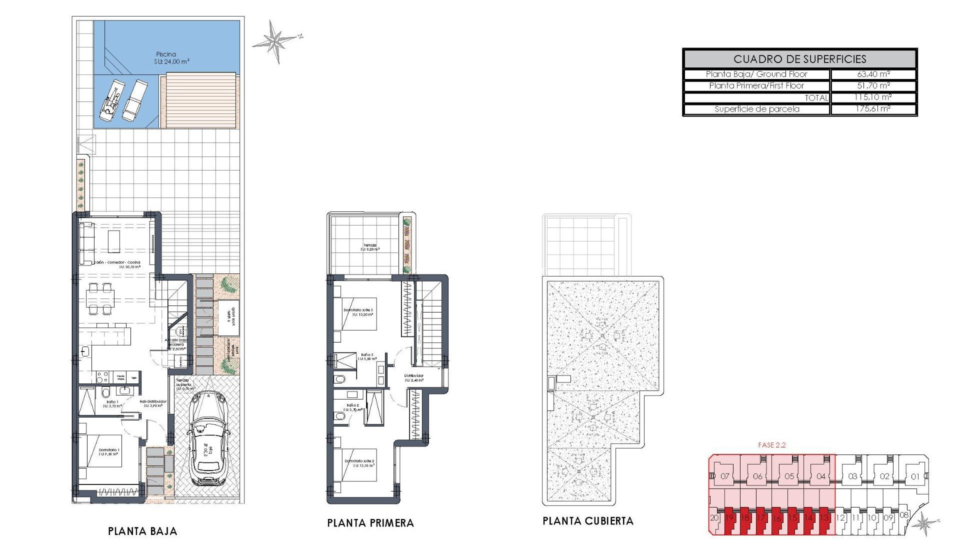 HÚS í IBIZA STÍL Hús í Ibiza stíl á sjálfstæðri lóð með verönd, bílastæði og einkasundlaug. Húsið er með stofu, eldhúsi, 3 svefnherbergjum, 2 baðherbergjum og er með frábæru útsýni. Vandlega hannað húsnæði með hágæða efni til að fullnægja kröfuhörðustu viðskiptavinum. Möguleiki á einka sólstofu gegn aukagjaldi. Eign staðsett í þéttbýlismyndun La Marina, forréttindasvæði Costa Blanca, umkringd náttúru og búin allri þjónustu. 20 mínútur frá Alicante flugvelli, nálægt fallegum ströndum Guardamar del Segura og 2 km frá golfvöllum. Frábær staðsetning þess gerir það að fullkomnum valkosti fyrir þá sem leita að ró.