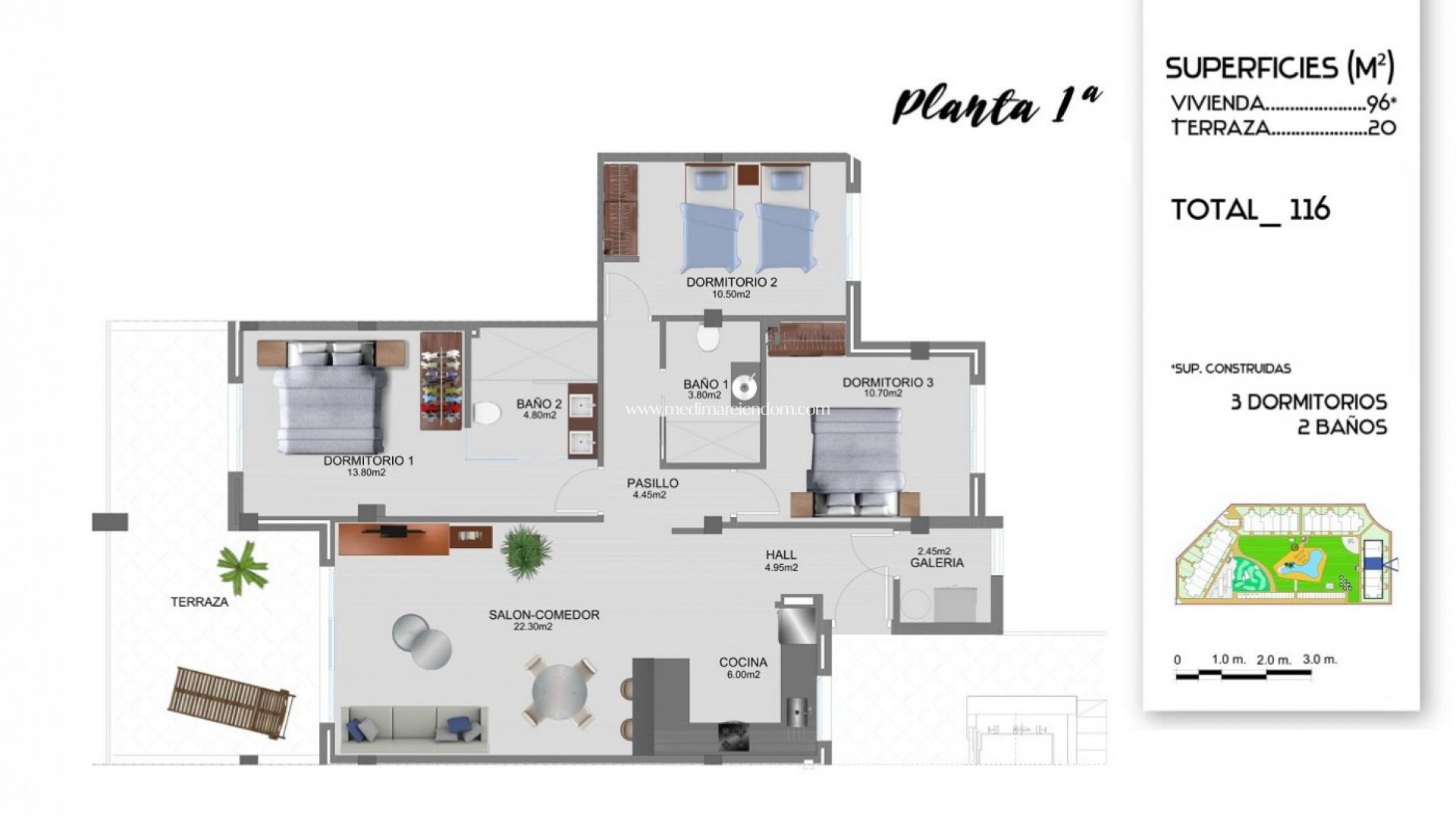 NÝBYGGÐ ÍBÚÐ Í EL RASO, GUARDAMAR DEL SEGURA Nýbyggð íbúðasamstæða af íbúð í nútíma stíl í El Raso, Guardamar del Segura! Þessi íbúð er með 2 og 3 svefnherbergjum, 2 baðherbergjum, opinni stofu með eldhúsi, jarðhæð með sérgarði, miðhæð með verönd og efstu hæð með sér sólstofu. Samstæða staðsett á grænu svæði nálægt saltvatninu, öllum þægindum, göngufæri við verslunarmiðstöð, bari og veitingastaði. El Raso er hluti af Guardamar del Segura. Guardamar del Segura er bær staðsettur á suðurströnd Costa Blanca. Með 11 kílómetra af náttúruströnd og stórum furuskógi. Guardamar del Segura er með stóra höfn með starfsemi allt árið um kring, þar er stór íþróttamiðstöð með paddle tennis, tennis, fótbolta og stóra upphitaða sundlaug sem virkar allt árið um kring. Það hefur líka bókasafn þar sem er ókeypis WiFi og tölvur. Guardamar del Segura er í aðeins 20 km fjarlægð frá Alicante - Elche (El Altet) flugvellinum, þar sem mörg flug eru á hverjum degi með tengingum við helstu borgir Evrópu, vegna eftirspurnar eftir ferðamönnum á Costa Blanca.
