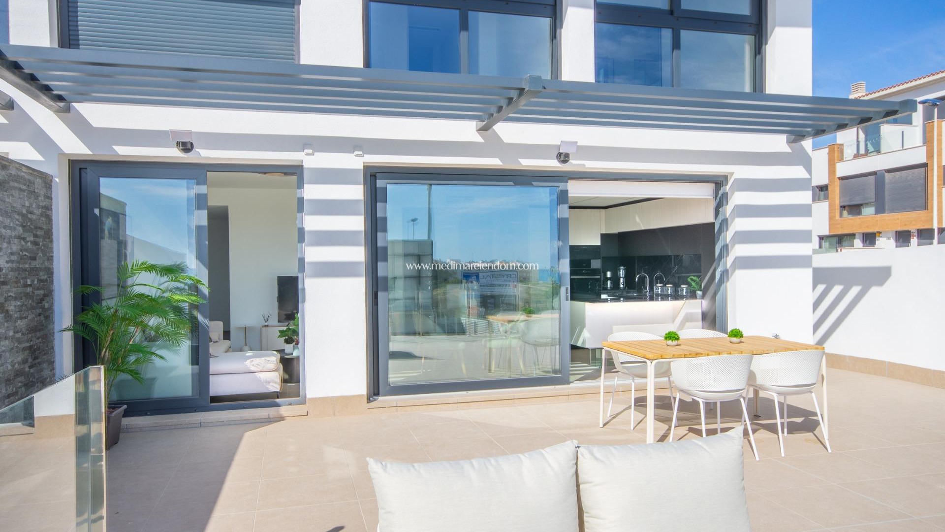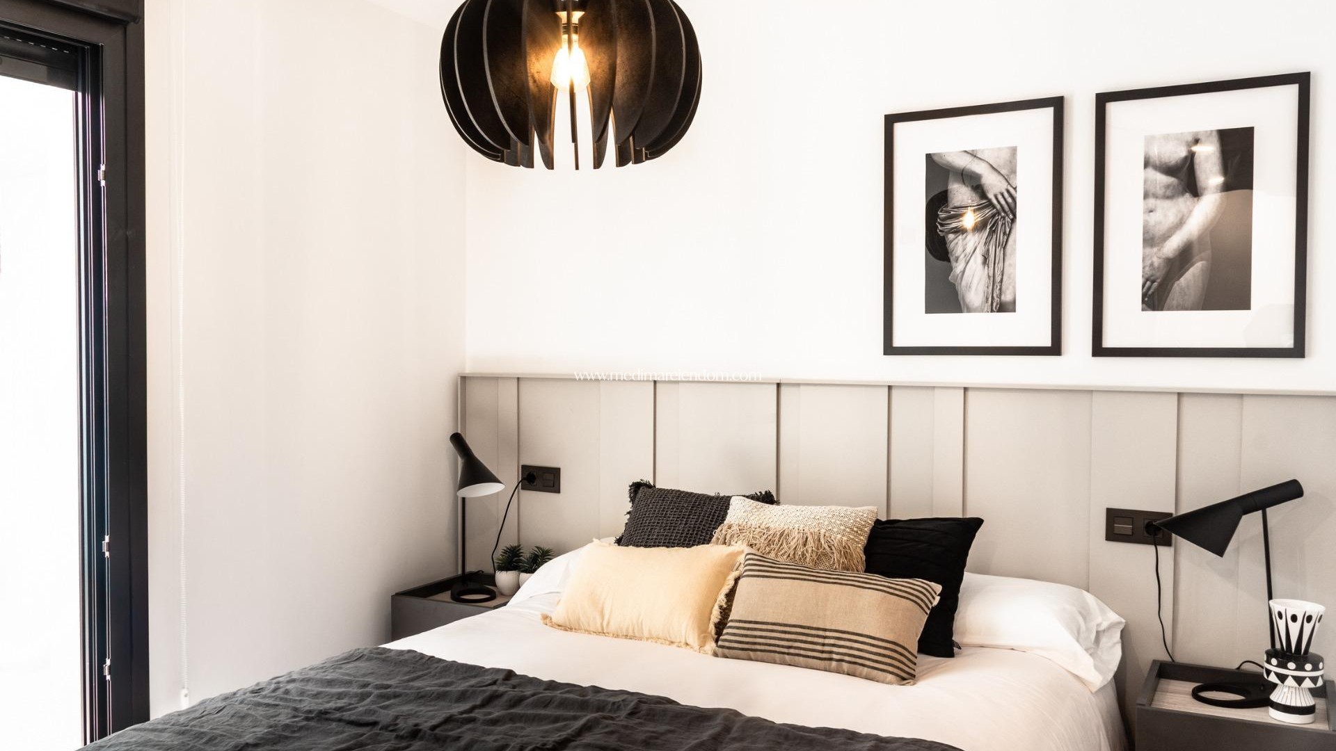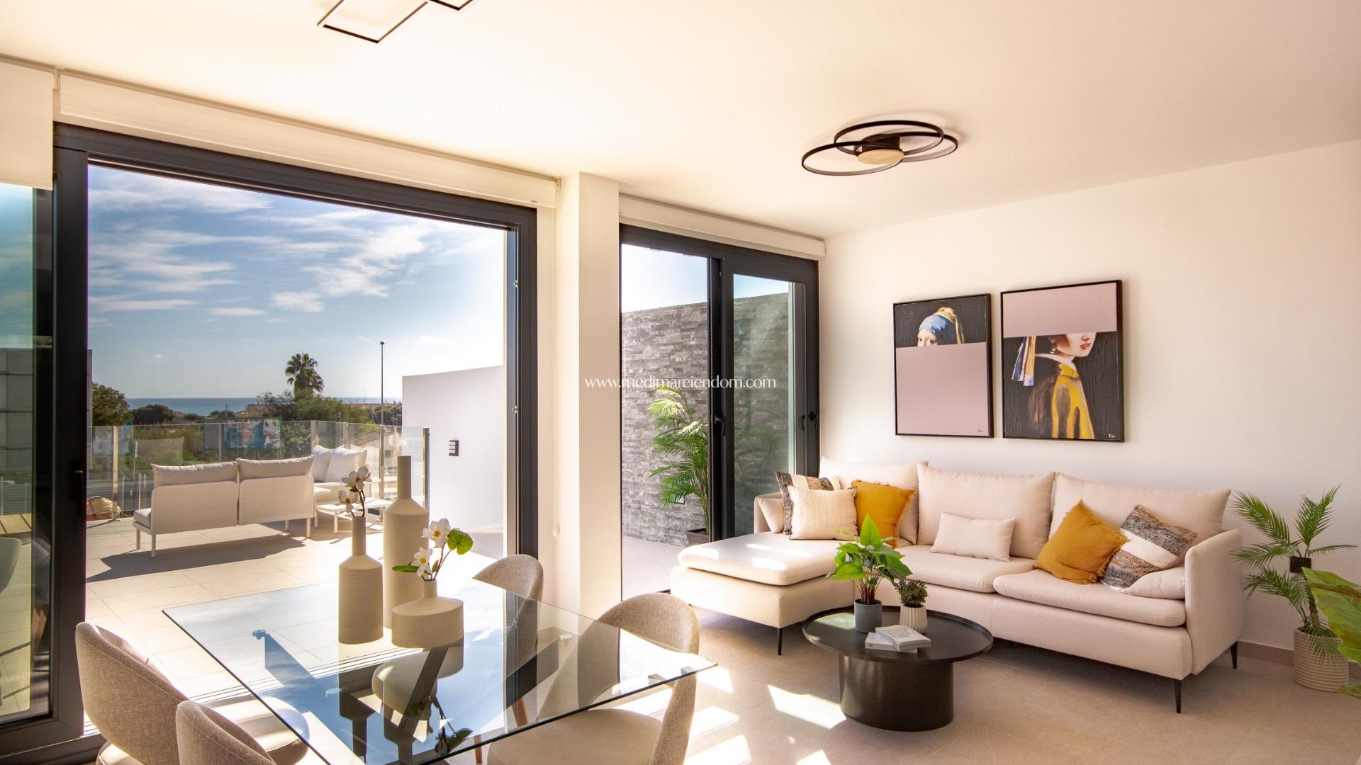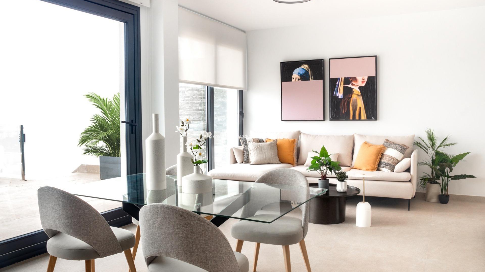 SJÁVARÚTSÝNI með möguleika á EINKALAUG EÐA JACUZZI Vönduð heimili í lokuðu íbúðarhúsnæði með lúxusbúnaði og fullkominni gæðaskýrslu. Heimili til að njóta allt árið um kring. 20 heimili með sjávarútsýni og 800 m frá Guardamar ströndinni. Það eru bústaðir á jarðhæð með stórum veröndum og bústaðir á efri hæð með sér sólstofu og valfrjálsu sundlaug eða nuddpotti. Á neðri hæðum er lokaður bílskúr neðanjarðar og á efri hæðum er bílastæði neðanjarðar innifalið í verði. Það er með lyftu frá bílskúrnum upp á gólf heimilis þíns fyrir meiri þægindi. Fín sameiginleg sundlaug og allt nálægt bænum Guardamar og dásamlegum ströndum hans.