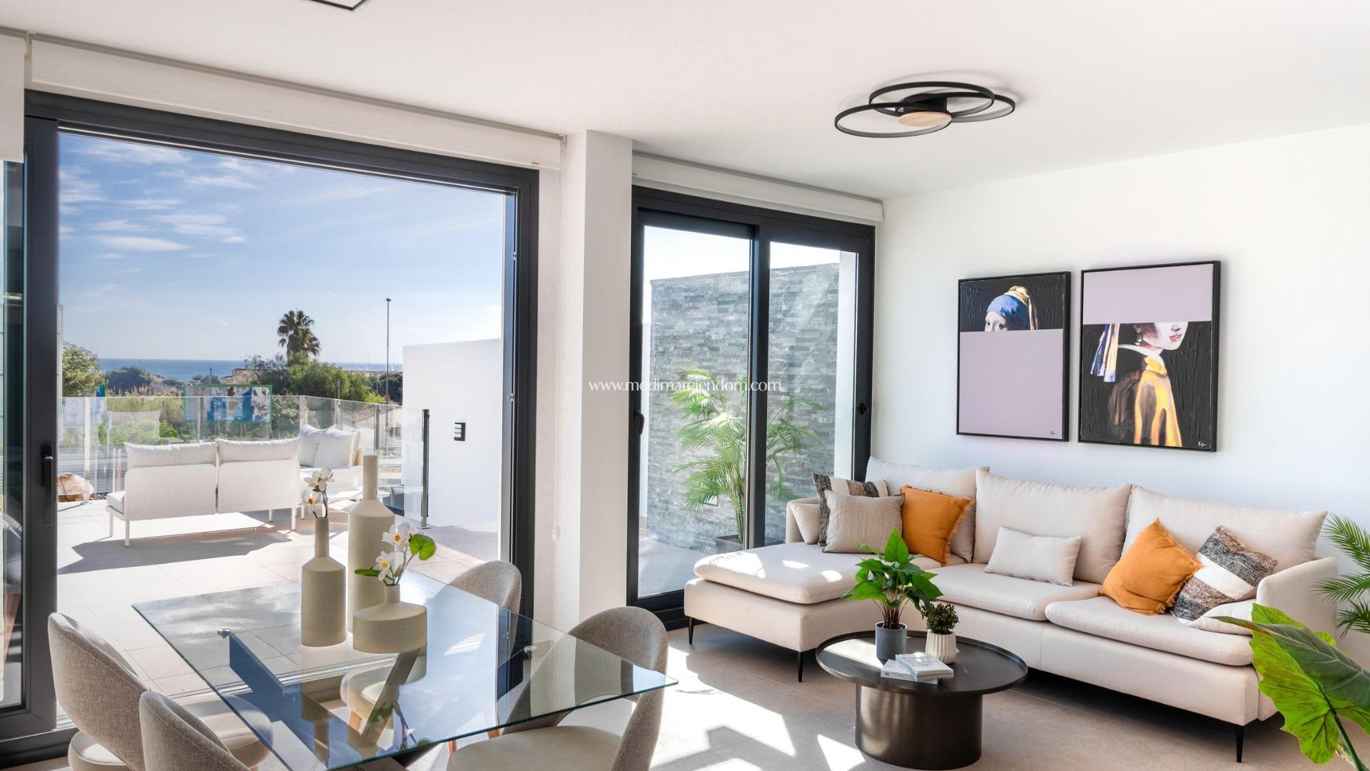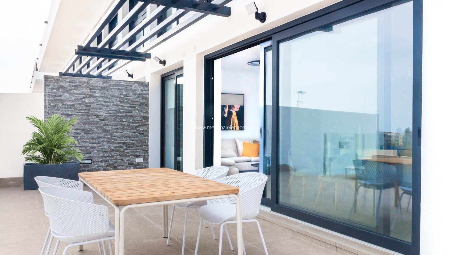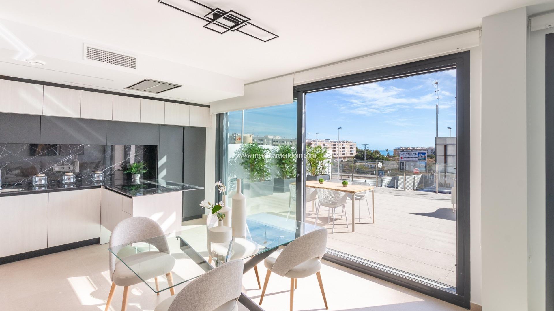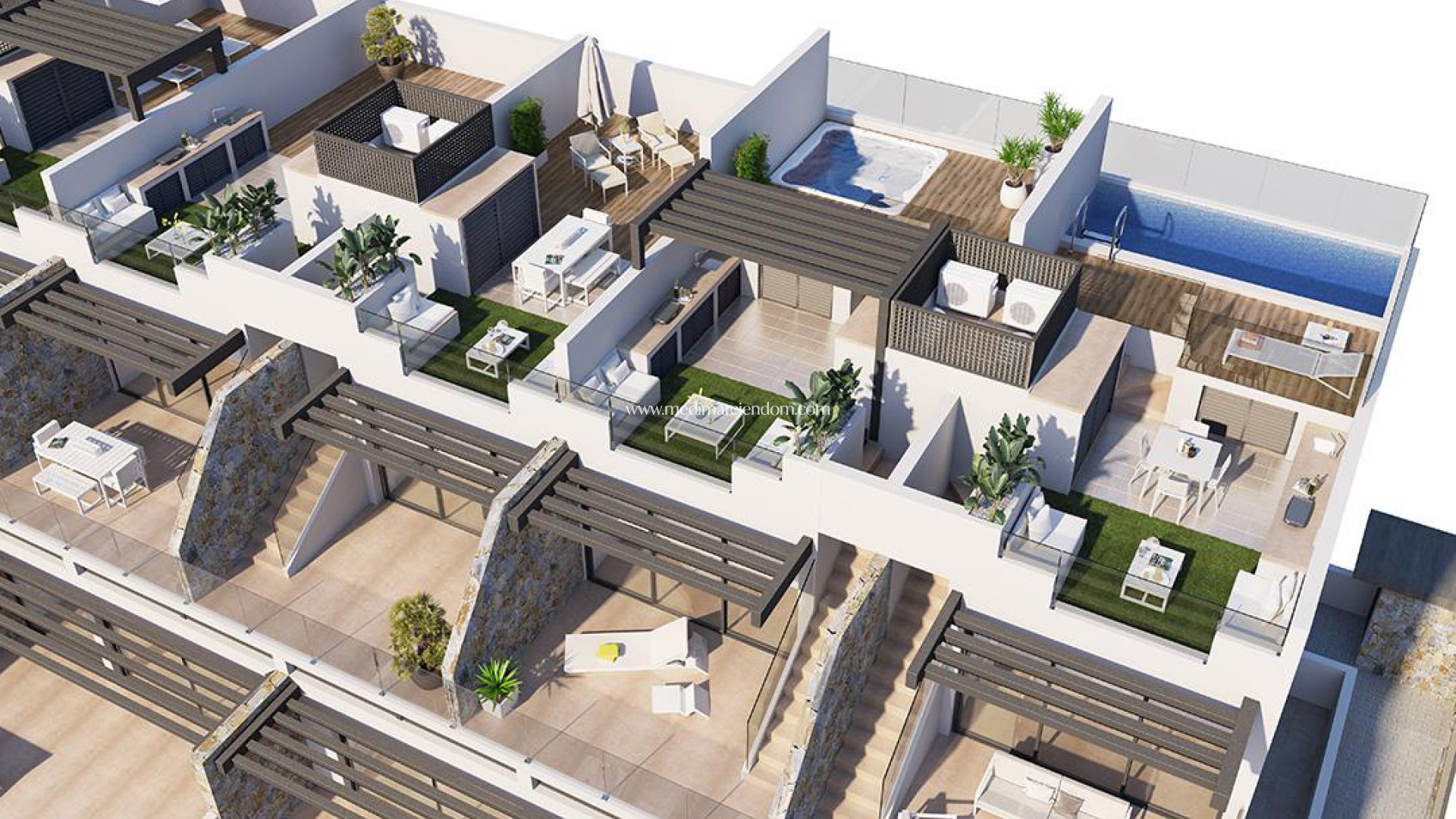 SJÁVARÚTSÝNI með möguleika á EINKALAUG EÐA JACUZZI Vönduð heimili í lokuðu íbúðarhúsnæði með lúxusbúnaði og fullkominni gæðaskýrslu. Heimili til að njóta allt árið um kring. 20 heimili með sjávarútsýni og 800 m frá Guardamar ströndinni. Það eru bústaðir á jarðhæð með stórum veröndum og bústaðir á efri hæð með sér sólstofu og valfrjálsu sundlaug eða nuddpotti. Á neðri hæðum er lokaður bílskúr neðanjarðar og á efri hæðum er bílastæði neðanjarðar innifalið í verði. Það er með lyftu frá bílskúrnum upp á gólf heimilis þíns fyrir meiri þægindi. Fín sameiginleg sundlaug og allt nálægt bænum Guardamar og dásamlegum ströndum hans.