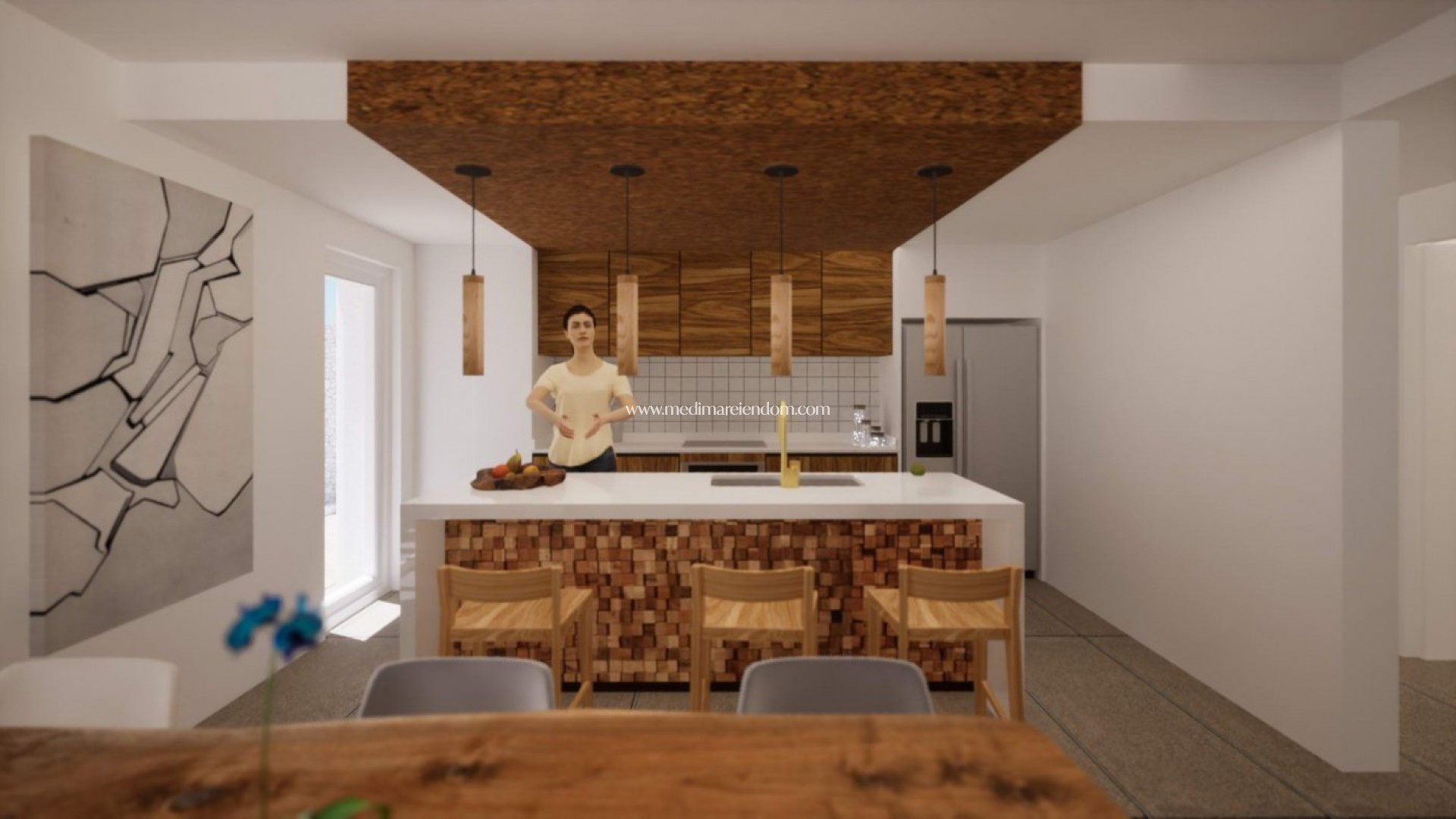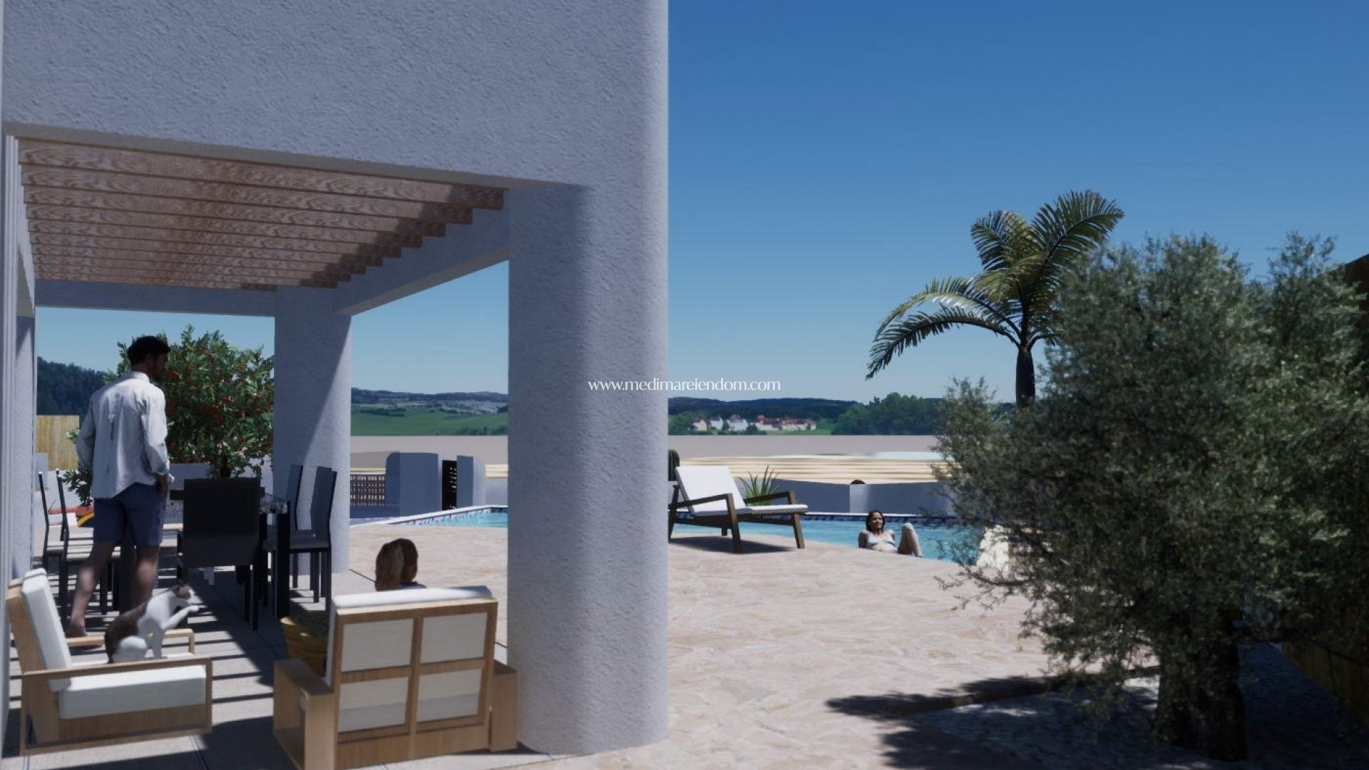 NÝBYGGÐ IBIZA STÍL VILLA Í POLOP Þessi nýbygginga einkarétta einbýlishús í Ibiza stíl er staðsett á forréttindalóð í Polop, með frábæru útsýni til fjalla og sjávar. Húsinu er snúið 45 gráður að ás lóðarinnar, sem veitir hámarks náttúrulegu ljósi á aðalveröndinni og sundlaugarsvæðinu. Stofa, borðstofa og eldhús mynda stórt rými, eldhúsið er með dásamlegri miðeyju með gervisteinsborðplötum. Í stofunni er dásamlegur innbyggður rennigluggi sem leynist inni í veggnum þegar hann er opnaður og framleiðir óaðfinnanleg umskipti á milli innra og ytra pergola svæðisins. Það eru samtals 3 svefnherbergi og 2 baðherbergi. Hjónaherbergi er með fataskápum og sér baðherbergi. Öll herbergi eru samþætt í landslagsverkefninu, með gluggum eða gleri sem miða að trjám, sem einnig eru samþætt í útiljósaverkefninu. Eigninni fylgir utanhúss þvottahús/þvottahús í einu af hornum lóðarinnar. Þar er einnig geymsla. Og stórt utanbílastæði á götuhæð. Það er aðgengilegt þak eða ljósabekk, í gegnum stórkostlegan múrstiga sem er húðaður með hefðbundnum bláum flísum. Aðalsundlaugarveröndin og einnig húsið rísa um 1,60m frá hæð götunnar. Það er hannað þannig að það séu engar sjónrænar hindranir (veggir eða handrið) í átt að ytra útsýni. Sundlaugin virkar sem takmörk og útveggurinn og skúlptúraplönturnar veita nóg næði frá fólki sem gengur á götunni. Möguleiki á að byggja kjallara í 2 mismunandi stærðum gegn aukakostnaði. Forréttinda staðsetning villunnar, aðeins 10 km frá stórborgum eins og Benidorm eða Altea, og í nokkurra mínútna akstursfjarlægð frá bæjum eins og La Nucía eða Alfaz del Pí, veitir henni margvíslega þjónustu í boði aðeins nokkrum skrefum í burtu. Bestu strendurnar, verslunarmiðstöðvarnar, læknisaðstaða, veitingastaðir... Ennfremur, ef þú ert íþróttaunnandi, hefur La Nucía verið lýst íþróttahöfuðborg Costa Blanca og veitt alþjóðlegu íþróttatúrismaverðlaunin, með dagatali fullt af innlendum og alþjóðlegum íþróttum keppnum og viðburðum. Borgin Polop býður upp á ótrúlegt úrval valkosta fyrir unnendur náttúrunnar umkringd náttúru og óviðjafnanlegum friði. Sveitarfélagið nýtur Miðjarðarhafsloftslags með kaldara hitastigi og hreinna lofti, þrátt fyrir að vera aðeins 15 mínútur frá ströndinni. Það nær frá ánum Guadalest og Algar til bæjarins Villajoyosa, þar á meðal strendur Albir og Benidorm; inn til landsins liggur það við Callosa og Guadalest.