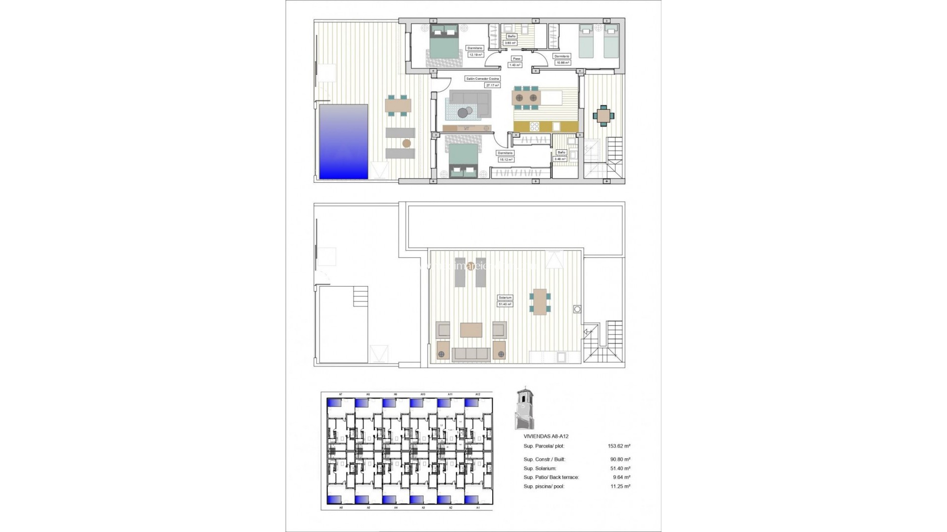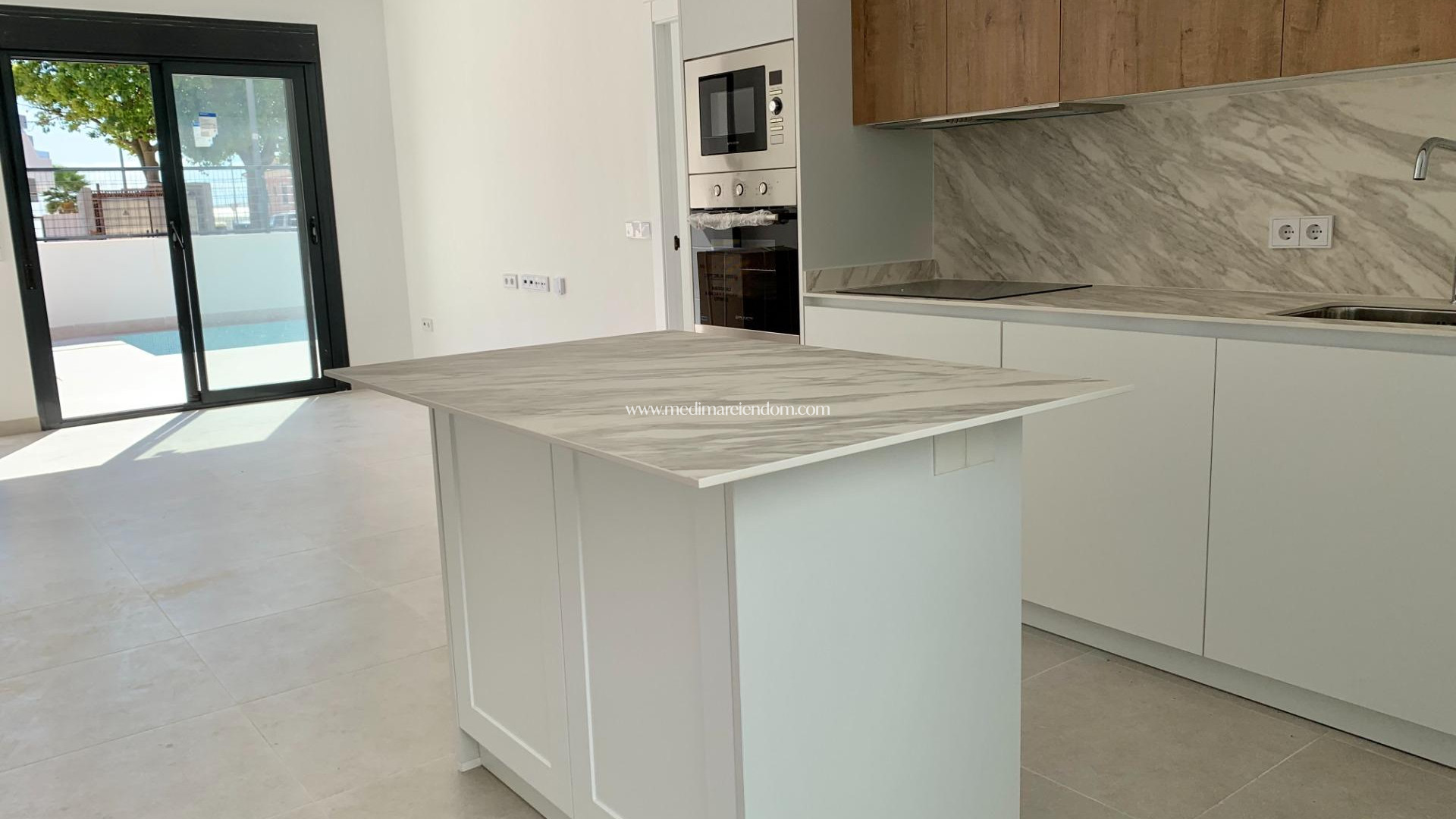 RÆÐISVILLUR MEÐ EINKA LAUG OG NÁLÆGT RODA GOLFVELLURINN Lúxus samstæða með 28 einbýlishúsum á einni hæð með einkasundlaug fyrir hvert hús. Húsin eru hönnuð á einni hæð með verönd á jarðhæð og stórri ljósabekk á fyrstu hæð sem gerir þér kleift að njóta allra sólskinsstunda, alla daga ársins. Hver eign hefur 2 eða 3 svefnherbergi og 2 búin baðherbergi. Hannað með nútímalegum stíl og opnu plani, sem samanstendur af eldhúsi og setustofu/borðstofu. Þróunin er staðsett í Dolores de Pacheco (Murcia), nálægt Los Alcázares, umkringd þjónustu, almenningsgörðum, íþróttaaðstöðu, nálægt nokkrum golfvöllum eins og Roda Golf og La Serena Golf, auk þess að vera í 5 mínútna fjarlægð frá ströndinni. Eignin mun uppfylla ströngustu kröfur og verður útbúin með: Einkasundlaug með sturtu Sólstofu með sumareldhúsi. Verönd. Eldhús með ísskáp, frysti, helluborði, ofni, viftu-útdráttarvél. Eyjavinnusvæði. Fullbúið baðherbergi með skáp, spegli og sturtuskjám Fóðraðir fataskápar með skúffum Ljósahönnun innan og utan húss Foruppsetning fyrir loftkælingu