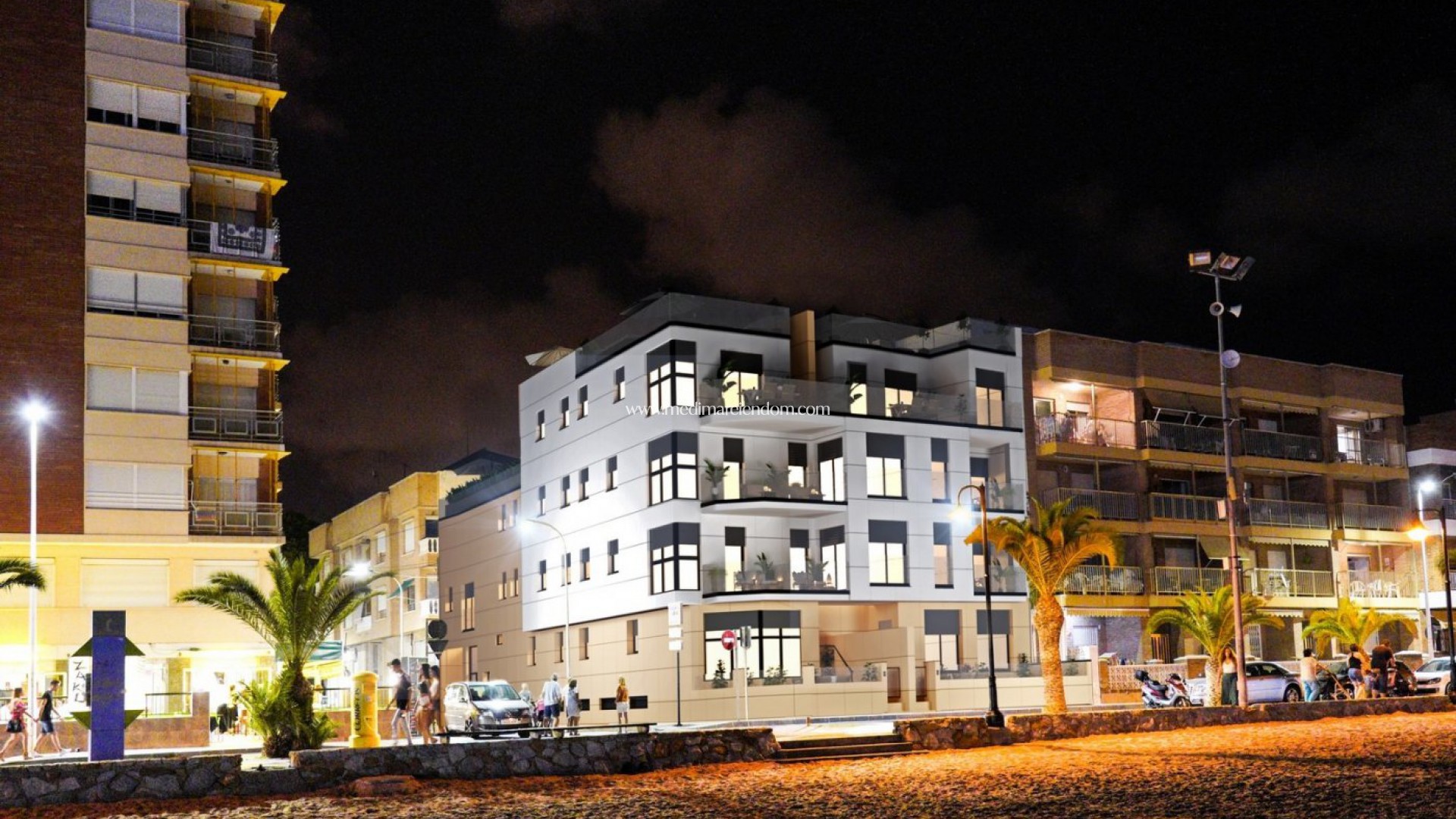 NÝBYGGÐAR ÍBÚÐIR við sjávarsíðuna Í LO PAGAN Nýbyggt íbúðarhúsnæði með 10 íbúðum í framlínu í Lo Pagan. Þessar íbúðir verða byggðar í hæsta gæðaflokki og eru aðeins nokkrum skrefum frá ströndinni, veitingastöðum, göngusvæði og verslunum í Lo Pagan. Byggingin er á 3 hæðum með 2 eða 3 eignum á hæð, 2 eða 3 svefnherbergjum. Allar íbúðirnar munu hafa ótrúlegt útsýni yfir Mar Menor og 2 þakíbúðirnar bjóða upp á einka sólstofu. Sem valkostur er einnig hægt að hafa neðanjarðar bílastæði og geymslu. Forréttinda staðsetning San Pedro del Pinatar á Mar Menor og Miðjarðarhafsströndinni, laðar að þá sem hafa áhuga á siglingum og vatnsíþróttum, sem veitir höfnina viðlegukanti og siglingaklúbba, en strendurnar og náttúruleg leðjuböðin laða að þá sem leita að öruggri sól, sjó og sandi. San Pedro del Pinatar er með rótgróið samfélag og býður upp á frábært úrval af afþreyingu, þar á meðal yfirbyggða sundlaug og íþróttamannvirki, ásamt félagsstarfi allt árið um kring í notalegu vetrarveðri. Ávinningurinn af leirböðum, dæmigerð fyrir svæðið, eða rólegu vatni Mar Menor, hefur stuðlað að vexti Lo Pagan, sem hefur alls kyns þægindi eins og er. Að auki hefur það frábæra staðsetningu, aðeins 5 mínútur frá verslunarmiðstöðinni Dos Mares. Murcia/Corvera flugvöllur er í 30 mínútna fjarlægð og Alicante flugvöllur er í klukkutíma akstursfjarlægð.