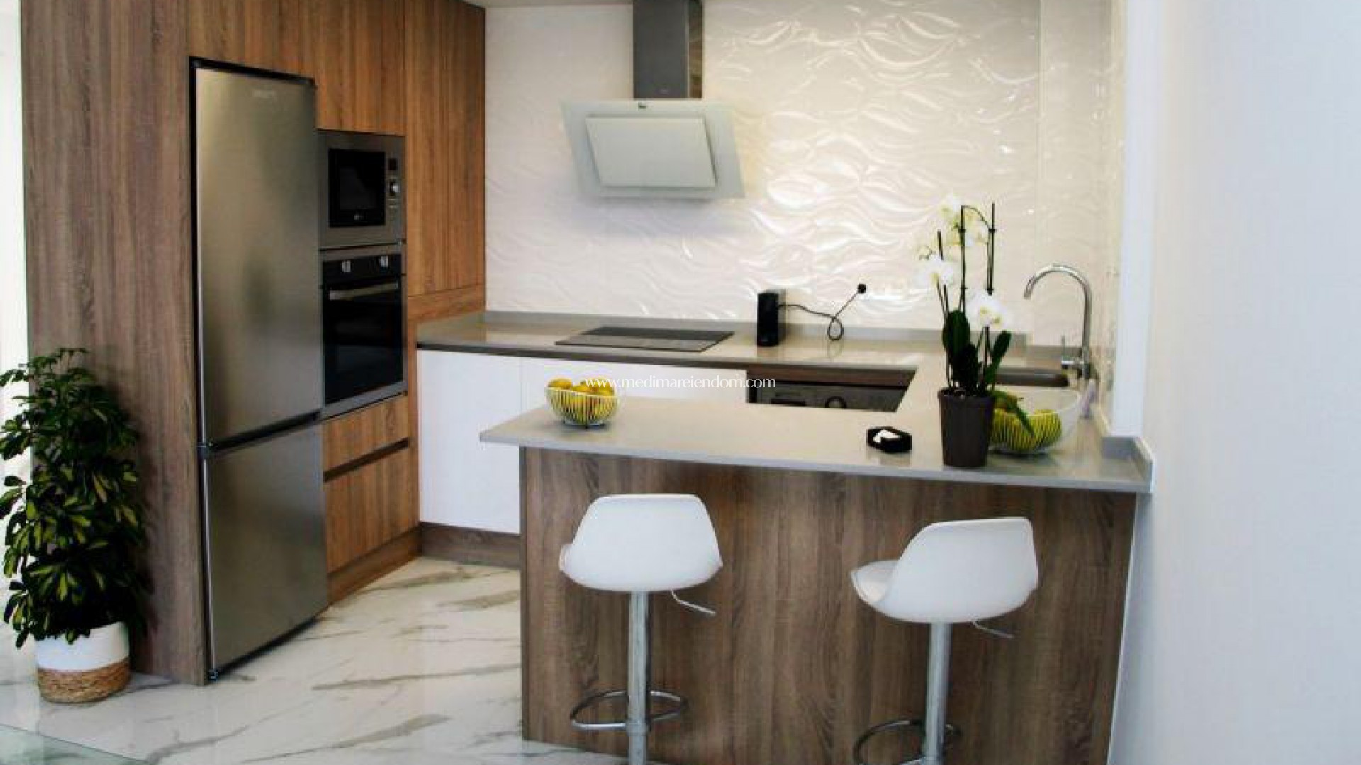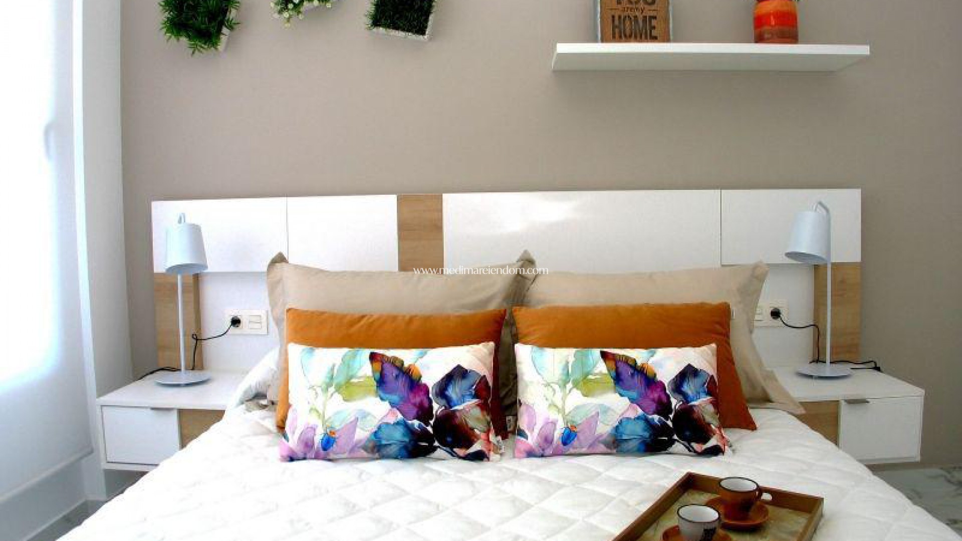 NÝBYGGÐ PARHÚS Í BENIJÓFARA MEÐ EIGALAUGUR Parhús með 3 svefnherbergjum, 3 baðherbergjum, eldhúsi opið inn í stofu-borðstofu, 192 m2 lóð með einkasundlaug og 16 m2 verönd á fyrstu hæð með óhindrað útsýni. Möguleiki á að virkja einka sólstofu upp á 46 m2 gegn aukakostnaði. Benijófar er staðsett á hægri bakka Segura-árinnar, það er vel tengt Orihuela og Guardamar del Segura með veginum sem tekur þig að dásamlegu fínu sandstrendunum, innan við 8 km í burtu. Það eru nokkrir golfvellir í nágrenninu (innan 4 km). Það er einnig tengt með svæðisvegi við Torrevieja. 42 km. frá Alicante og 85 km. frá Benidorm.