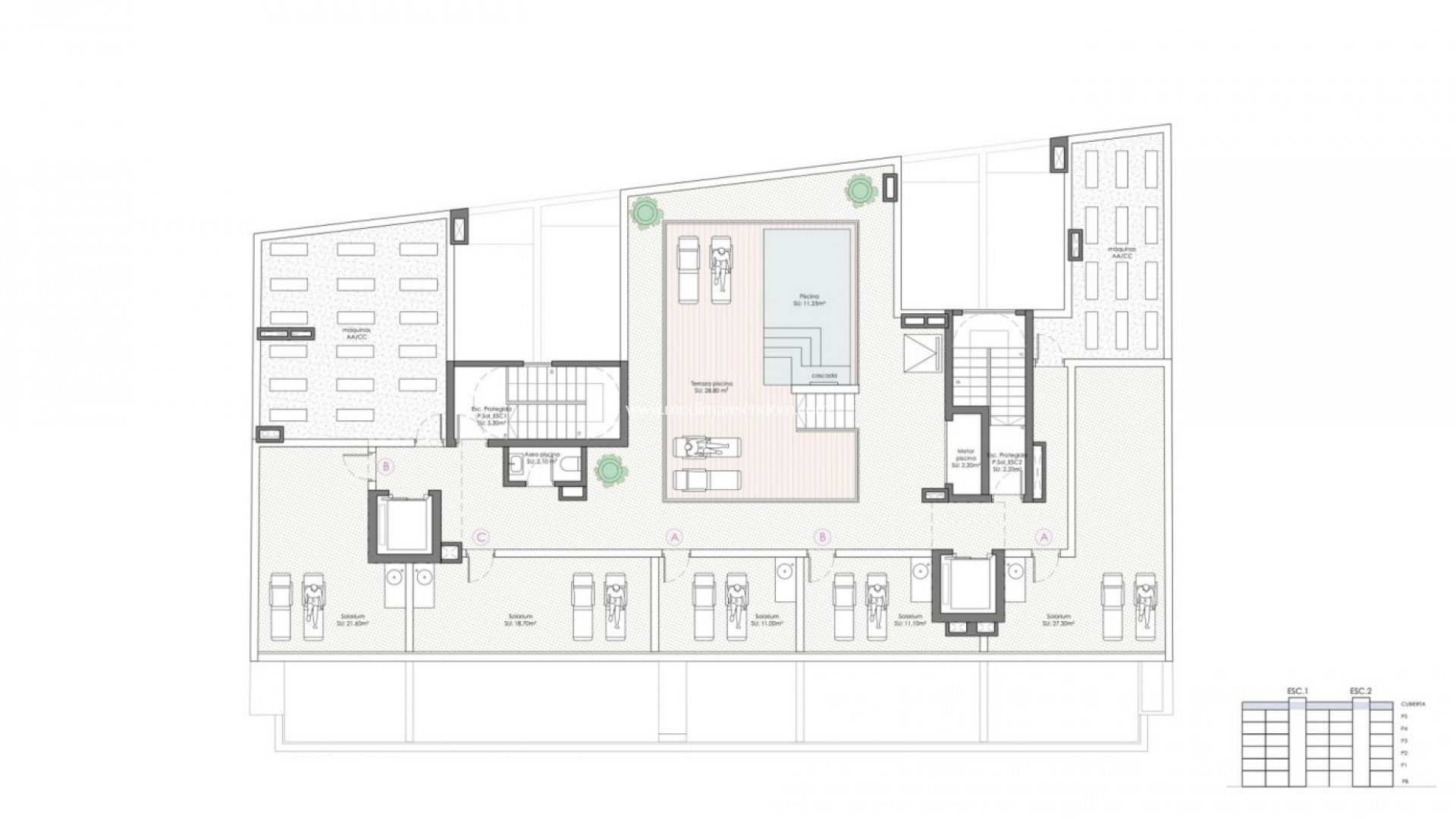 NÝBYGGÐAR ÍBÚÐIR OG ÞAÐHÚS Í TORREVIEJA Nýbyggð forréttindabygging aðeins 350 metra frá El Cura ströndinni í Torrevieja, sem býður upp á 29 íbúðir og þakíbúðir með 1 eða 2 svefnherbergjum og þaksundlaug. Njóttu sjávarútsýnis frá þakverönd þessarar nútímalegu byggingar, þar sem þú munt hafa aðgang að sundlaug með fossi og slökunarsvæði til að slaka á og nýta sólríka dagana sem best. Valfrjálst bílskúrsrými og geymsla gegn aukagjaldi. Íbúðirnar eru dreifðar frá jarðhæð til fimmtu hæðar. Allar íbúðir eru með notalegri verönd sem býður upp á fersku loft og sólarljós, þar sem þú getur slakað á og notið fyrsta kaffisopans á morgnana. Flestar íbúðirnar eru með 2 svefnherbergjum og 2 baðherbergjum, nema ein þakíbúðin sem er með 1 svefnherbergi og 1 baðherbergi. Öll eru með opinni hönnun með eldhúsum sem eru samþætt í rúmgóðu stofu/borðstofu, auk bjartar innréttingar og glerbeygjur. Torrevieja er spænskur bær í Alicante-héraði á Costa Blanca. Það er þekkt fyrir venjulega Miðjarðarhafsloftslag og strandlengju. Það hefur göngustíga með úrræði meðfram sandströndunum. Hið litla Safn hafs og salts hýsir sýningar um veiði- og saltsögu borgarinnar. Að innan er Lagunas de La Mata-Torrevieja náttúrugarðurinn með gönguleiðum og tveimur söltum lónum, annað bleikt og hitt grænt. Alicante flugvöllur staðsettur í 40 mínútna fjarlægð og Murcia flugvöllur í um 1 klukkustundar fjarlægð.