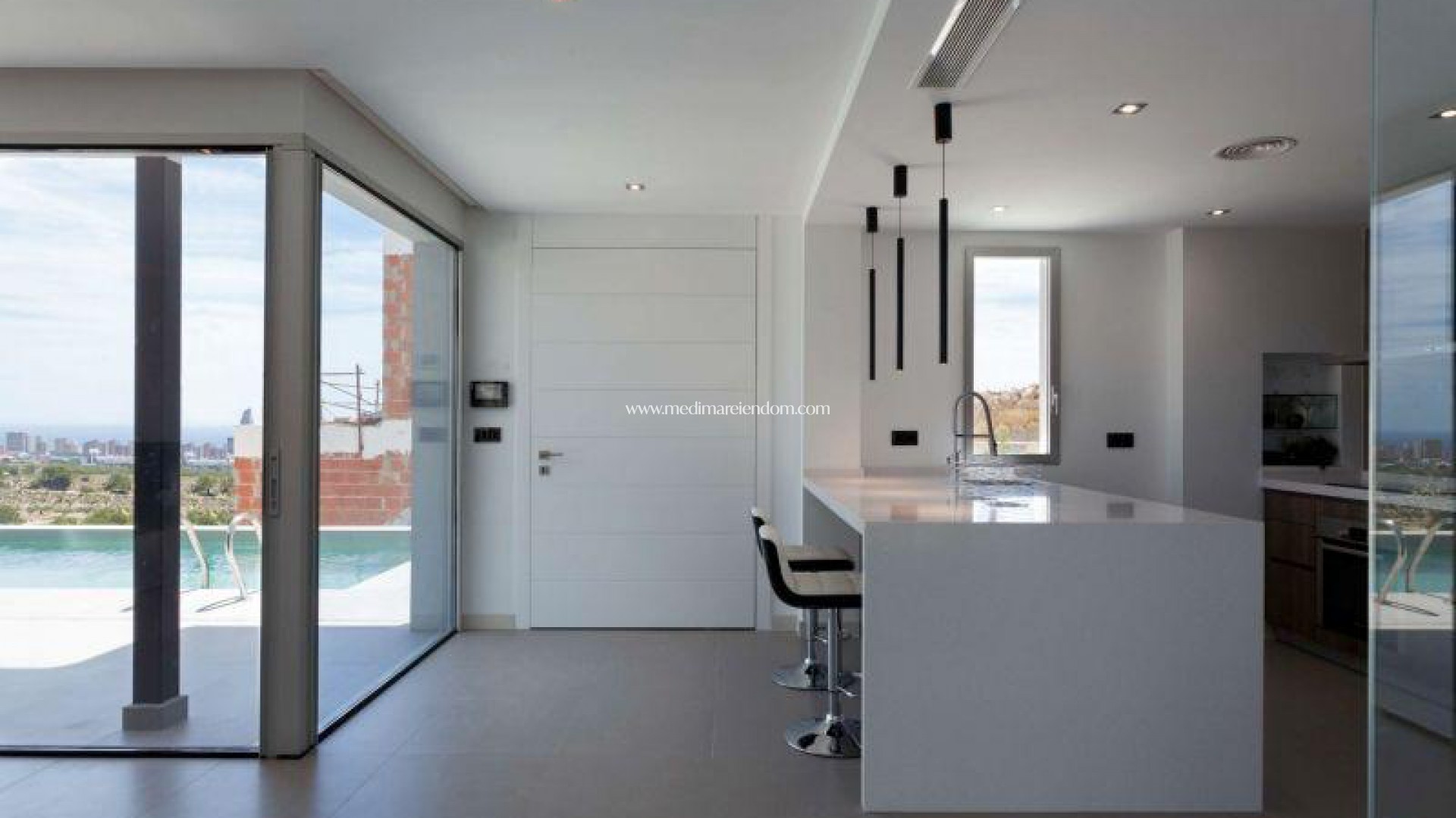 Nútímalegar villur með sjávarútsýni !!! The Residential Complex er staðsett á einum af heillandi stöðum á Levantine ströndinni, Balcón de Finestrat. Umkringdur fjöllum og með forréttindaútsýni yfir Benidorm ströndina. Lúxus einbýlishús með 3/4 svefnherbergjum og 3/4 baðherbergjum. Það samanstendur af einkasundlaug. Hágæða efni. Háþróuð uppsetning á sjálfvirkni heimilisins. DICA eldhúsinnrétting. BOSH tæki. Loftræstikerfi um allt húsið. Möguleiki á að velja ýmsa aukahluti eins og kjallara, ljósabekk og ýmsa úrvalspakka til að velja áferð sem óskað er eftir. Fjarlægð til sjávar 5 km, til flugvallar 50 km og til golfsins 1 km.