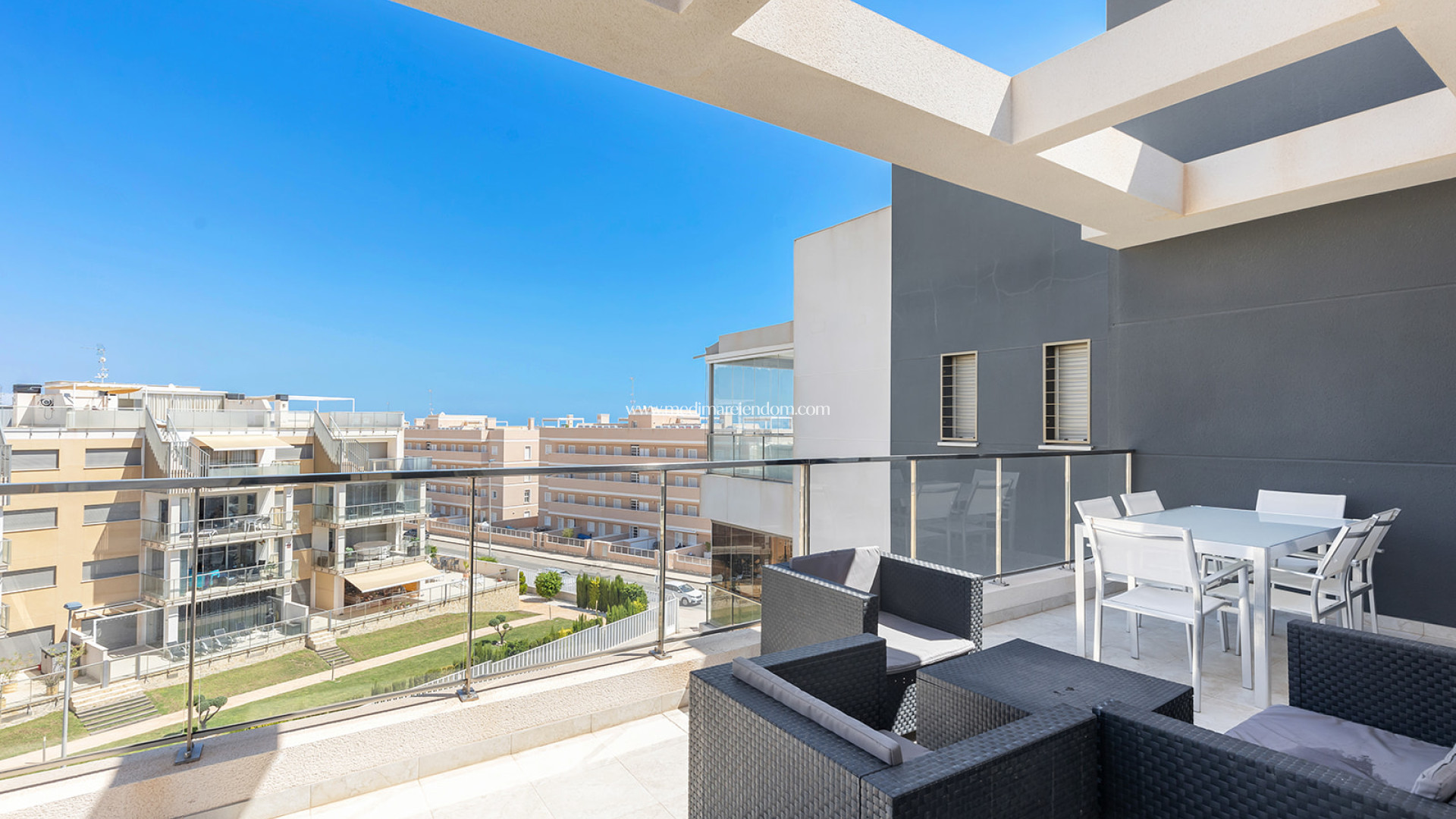 Þakíbúð með ljósabekk í Villamartin, Orihuela Costa. Þessi töfrandi íbúð á efstu hæð býður upp á rúmgóða stofu/borðstofu og opið eldhús, fullbúið með tækjum ásamt 18m2 verönd. Eignin hefur þrjú björt svefnherbergi og sér sólstofu 43m2 með opinni sturtu. Innifalið íbúðinni fylgir stæði í bílageymslu og sérgeymsla í kjallara. Það er staðsett í íbúðarhverfinu Green Hills þar sem þú getur notið upphitaðrar innisundlaugar, 2 útisundlauga, líkamsræktarstöðvar og garða. Villamartin er virt svæði með allri þjónustu og þægindum milli golfs og sjávar. Nálægt er La Zenia Boulevard, sem er stærsta verslunarmiðstöð Alicante-héraðs. Í nágrenninu er einnig Villamartin golfvöllurinn, 5 mínútur frá ströndinni, Real Club de Golf Campoamor og Las Ramblas golfvöllurinn, umkringdur skólum, verslunarmiðstöðvum, veitingastöðum, apótekum, strætóskýlum sem styðja dvölina allt árið. Það tengist auðveldlega þjóðveginum N-332 og Miðjarðarhafshraðbrautinni AP-7.