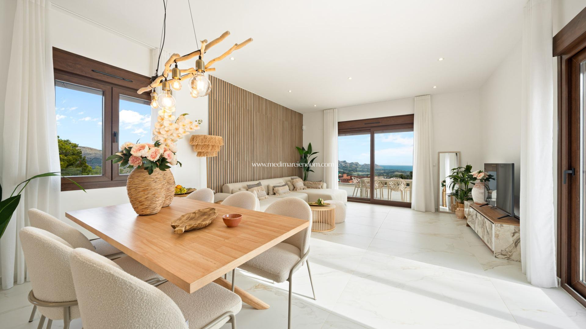 Töfrandi nýbyggðar villur í Polop með sjávarútsýni Nútímalegar villur með rúmgóðum lóðum og einkasundlaugum Uppgötvaðu þessar einstöku nýbyggðu einbýlishús í Polop, staðsettar á stórum lóðum frá 351 m². Þessi heimili bjóða upp á fullkomna blöndu af nútíma hönnun, þægindum og stórkostlegu sjávarútsýni. Hver villa er með 7x3m einkasundlaug með sólbaðssvæði, stórri verönd og verönd og einkabílastæði, sem gerir hana að kjörnu athvarfi fyrir þá sem leita að bæði kyrrð og lúxus. Tvær villulíkön sem henta þínum lífsstíl Kaupendur geta valið á milli tveggja mismunandi villuhönnunar, fáanlegar í einni eða tveggja hæða skipulagi. Fyrir þá sem vilja hámarka útirýmið sitt, er valfrjáls einkaljósabekkur í boði sem býður upp á víðáttumikið sjávarútsýni - fullkominn staður til að drekka í sig Miðjarðarhafssólskinið sem prýðir svæðið mestan hluta ársins. Hágæða frágangur og orkunýting Þessar einbýlishús eru byggðar með hágæða efnum og nútímalegum frágangi, sem tryggir þægindi og orkunýtni: Vélknúnar gardínur í stofu, eldhúsi og svefnherbergjum. Gólfhiti á öllum baðherbergjum. Foruppsett loftræsting fyrir þægindi allt árið um kring. Landslagsgarður í Miðjarðarhafsstíl, hannaður fyrir lítið viðhald. Styrkt öryggisinngangshurð fyrir aukinn hugarró. Lofthitakerfi fyrir heitavatnsveitu. Þrjár sólarrafhlöður, sem leggja sitt af mörkum til orkunýtingarvottorðs A-flokkaðs. Frábær staðsetning í Polop, nálægt ströndinni Polop er heillandi Miðjarðarhafsbær í Marina Baja svæðinu, norðaustur af Alicante. Þekktur fyrir ríka sögu sína, líflega matargerðarlist og töfrandi náttúrulegt umhverfi, býður bærinn upp á friðsælan lífsstíl á meðan hann er nálægt ströndinni. Nálægir áhugaverðir staðir: Polop til Benidorm - 15 mínútur með bíl (frægur fyrir strendur, verslanir og næturlíf). Polop til Altea - 15 mínútur með bíl (þekktur fyrir sögulega gamla bæinn og smábátahöfnina). Stutt til Alicante City - 30 mínútur. Alicante alþjóðaflugvöllurinn - 40 mínútur. La Nucía – 5 mínútur (fræg fyrir íþróttamannvirki á heimsmælikvarða). Næsta strönd - 8 km. Hin fullkomna samsetning náttúru og þæginda Með greiðan aðgang að AP-7 hraðbrautinni njóta íbúar skjótra tenginga við alla helstu bæi meðfram Costa Blanca. Polop býður einnig upp á fallegar gönguleiðir, sem gerir það að frábæru vali fyrir náttúruunnendur og útivistarfólk. Tryggðu þér draumahúsið þitt í dag! Hafðu samband fyrir frekari upplýsingar eða til að skipuleggja heimsókn.