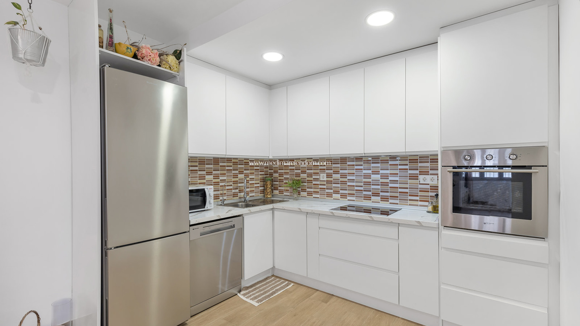 Þessi heillandi íbúð á jarðhæð er staðsett í La Zenia, einu eftirsóttasta svæði Orihuela Costa, þekkt fyrir fallegar strendur og líflegt andrúmsloft. Eignin er 66 m² að flatarmáli, dreift í tvö svefnherbergi og eitt baðherbergi, sem býður upp á notaleg og hagnýt rými fyrir þægilega búsetu. Íbúðin var byggð árið 1999 og algjörlega endurnýjuð árið 2021, íbúðin hefur verið uppfærð með nútímalegri hönnun og fínstilltu skipulagi. Það er einnig með 30 m² einkalóð, tilvalið til að njóta útivistar og notalegt Miðjarðarhafsloftslag. Eignin er fullbúin húsgögnum og fylgir sér garður og geymsla sem gefur aukið gildi og þægindi. Þetta heimili er staðsett um það bil 1,5 km frá sjónum og veitir skjótan aðgang að töfrandi ströndum La Zenia, þekktar fyrir kristaltært vatn og gullna sanda. Svæðið býður upp á breitt úrval af þjónustu og þægindum, þar á meðal matvöruverslunum, veitingastöðum, verslunarmiðstöðvum á borð við hið vinsæla Zenia Boulevard og ýmsa afþreyingarkosti. Þrátt fyrir að samstæðan sé ekki með sameiginlega sundlaug, gerir frábær staðsetning hennar og samgöngutengingar greiðan aðgang að öðrum áhugaverðum stöðum meðfram Costa Blanca, sem gerir það að kjörnum vali fyrir bæði fasta búsetu og frífjárfestingar.