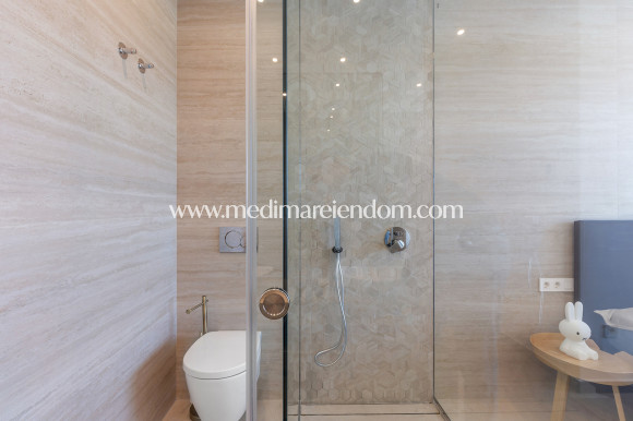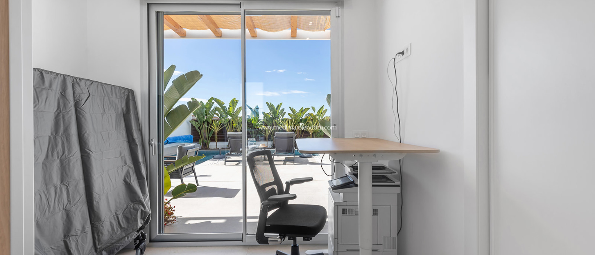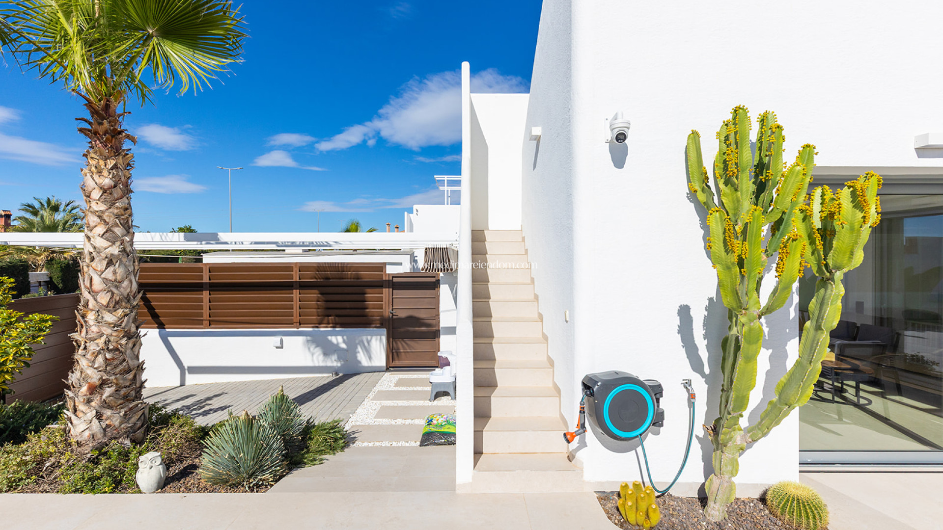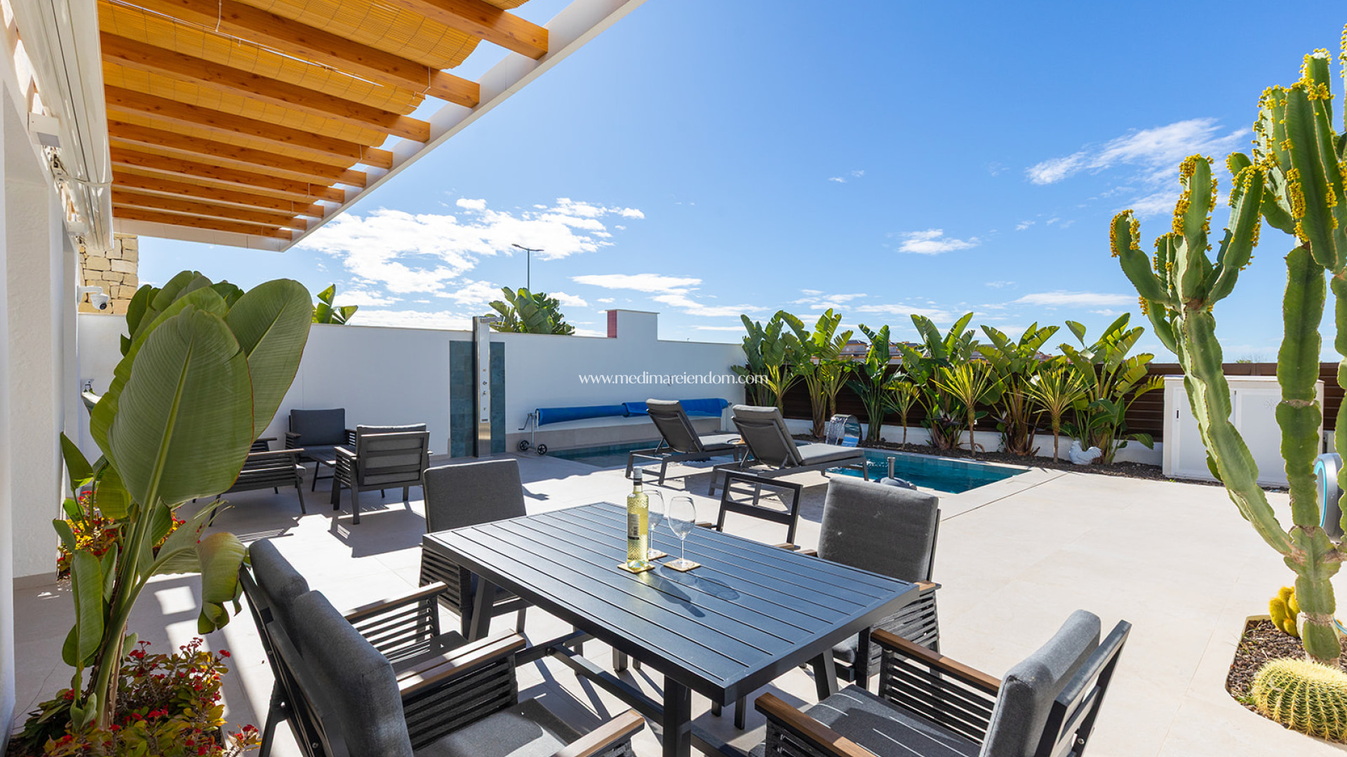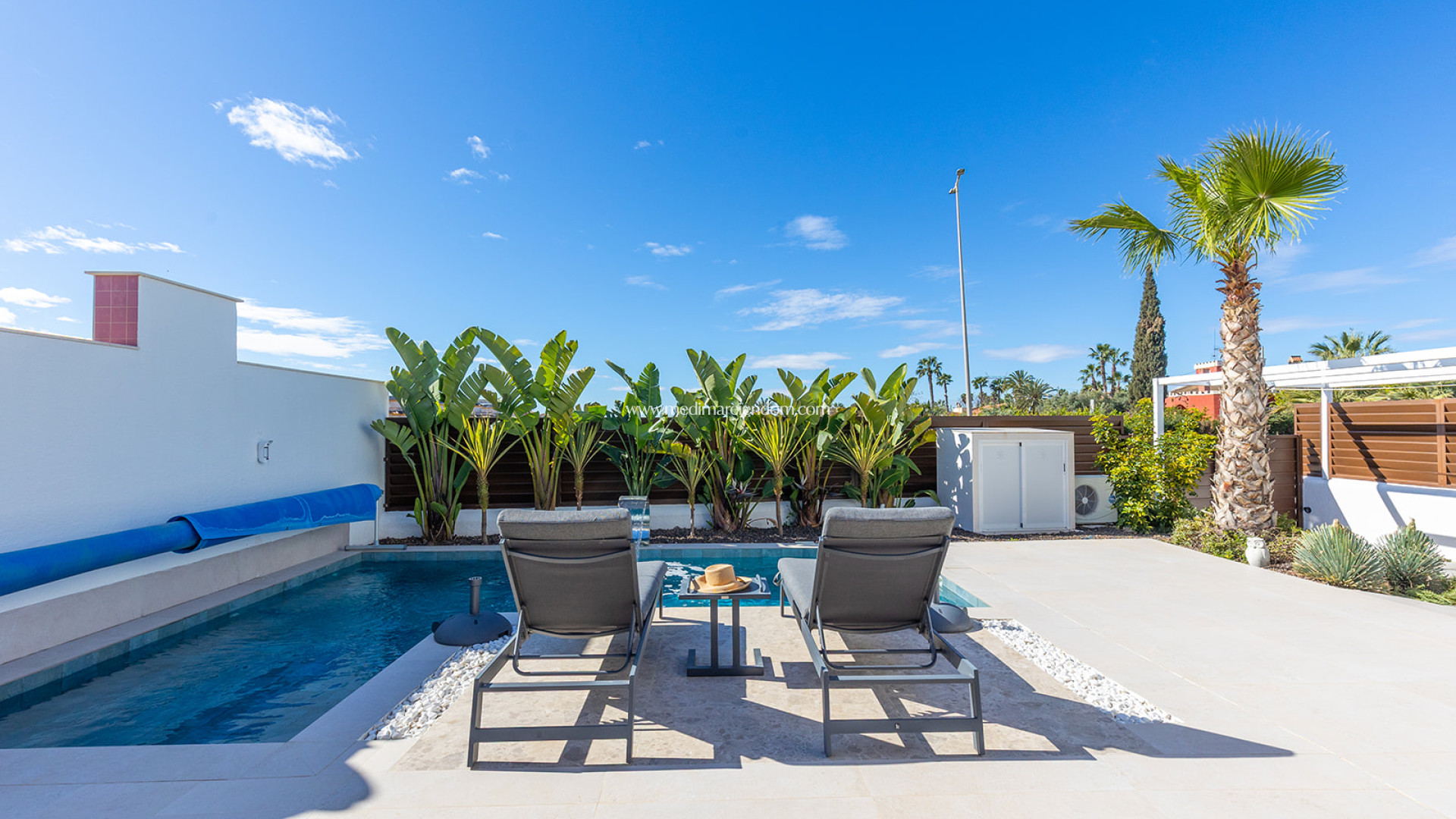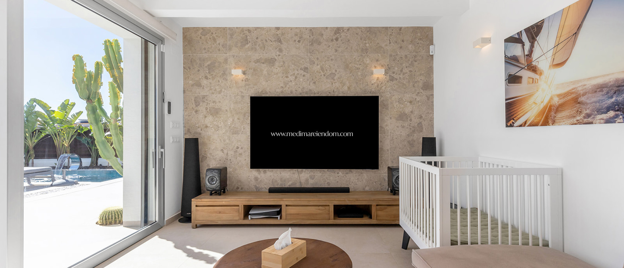 Þessi nútímalega villa er staðsett í hinu friðsæla La Herrada íbúðahverfi í Los Montesinos. Eignin býður upp á 114 m² byggt svæði á 257 m² lóð, allt á einni hæð með L-laga hönnun, sem hámarkar rýmið og tryggir þægilegt og hagnýtt skipulag. Það er með þremur svefnherbergjum og tveimur baðherbergjum, sem býður upp á rúmgóð og björt herbergi fyrir þægilega búsetu. Húsið státar af upphitaðri einkasundlaug, tilvalið til að synda allt árið um kring og nýta miðjarðarhafsloftslagið í fullkomnu næði. Að auki er það 47 m² ljósabekkur, fullkomið til að liggja í sólbaði og njóta víðáttumikils útsýnis yfir svæðið. Villan er fullbúin húsgögnum, með fullbúnu eldhúsi og hágæða frágangi í gegn. Suðvestur stefnu þess tryggir framúrskarandi náttúrulegt ljós allan daginn. Eigninni fylgir einnig sérgarður og geymsla sem býður upp á aukapláss til þæginda. Þessi villa er staðsett um það bil 10 km frá sjónum og veitir skjótan aðgang að fallegum ströndum Costa Blanca. Los Montesinos-svæðið er þekkt fyrir rólegt og fjölskylduvænt andrúmsloft og býður upp á breitt úrval af þjónustu og þægindum, þar á meðal matvöruverslunum, veitingastöðum og verslunarmiðstöðvum. Framúrskarandi innviðir og samgöngutengingar veita greiðan aðgang að öðrum lykilsvæðum meðfram Costa Blanca, sem gerir það að kjörnum vali fyrir bæði fasta búsetu og fjárfestingu í sumarbústað.
