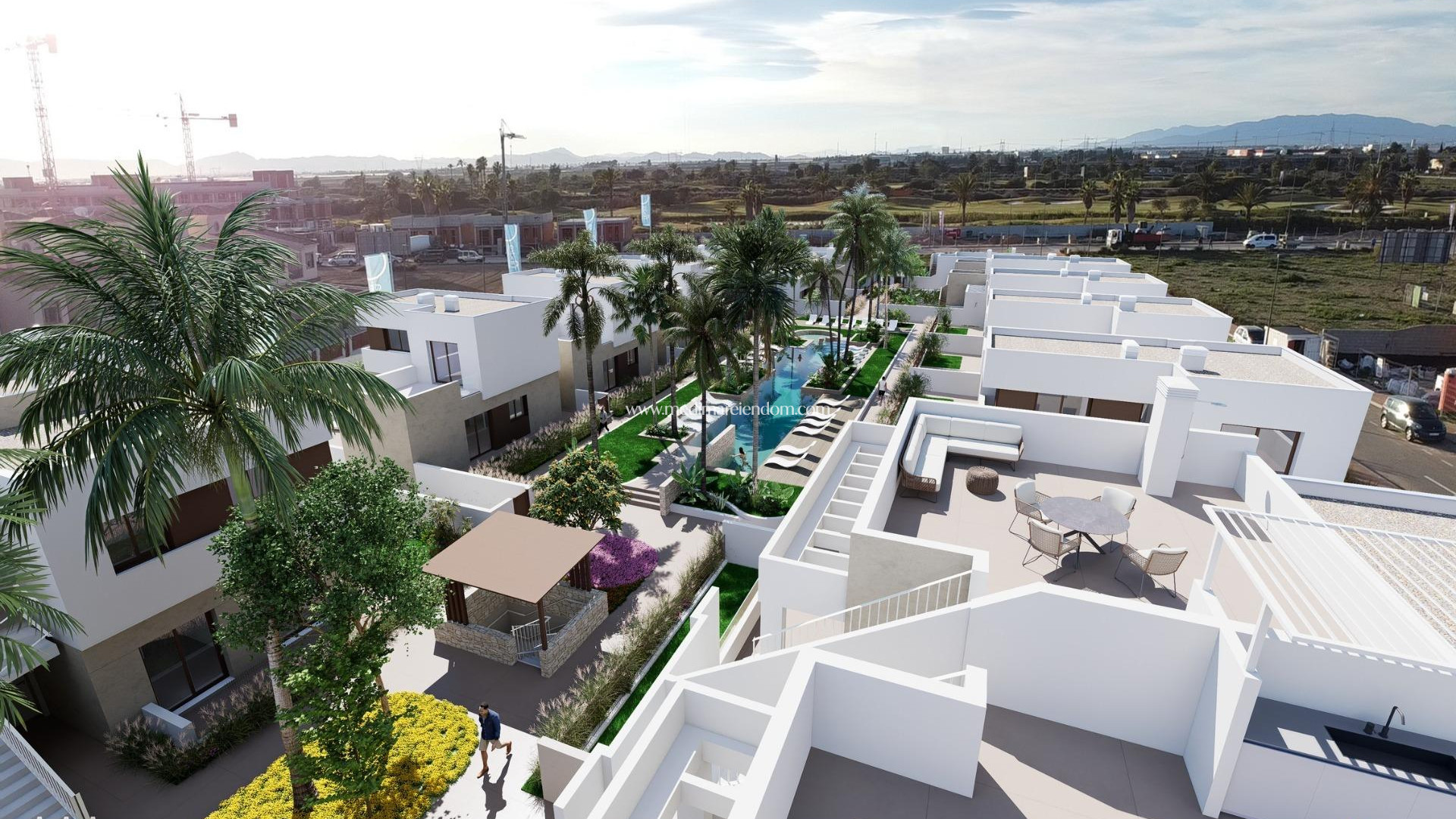 Einkar einbýlishús og bústaðir á Costa Cálida - Hönnun, þægindi og forréttinda staðsetning Verkefni sem sameinar friðhelgi einkalífs og samfélagslíf Uppgötvaðu nýtt íbúðarhugmynd á Costa Cálida, hannað fyrir þá sem leita að hinni fullkomnu samsetningu næðis, þæginda og félagslífs. Þessi einstaka samstæða býður upp á einbýlishús og bústaði, með aðgangi að rúmgóðum sameiginlegum svæðum og sameiginlegri sundlaug, sem veitir það besta af báðum heimum: ró einkaheimilis og þægindi sameiginlegra rýma til að njóta með vinum, fjölskyldu og nágrönnum. Öllum heimilum fylgir bílastæði og geymsla í kjallara sem tryggir öryggi og þægindi fyrir íbúa. Nútíma hönnun og sérstillingarmöguleikar Þessi þróun býður upp á breitt úrval heimila sem henta mismunandi þörfum og lífsstílum: Bungalows á jarðhæð með einkagörðum allt að 122 m². Bústaðir á efstu hæð með stórum veröndum og sér sólstofu. Einbýlishús á einni eða tveimur hæðum, með lóðum á bilinu 201 til 356 m² og mismunandi skipulag og frágangsmöguleika. Hvert heimili er hannað til að hámarka náttúrulegt ljós, skapa rúmgóð og velkomin rými. Húsbóndasvítan hefur verið vandlega hugsuð til að tryggja næði og þægindi, aðskilja svefnsvæðið algjörlega frá baðherberginu, forðast truflanir á ljósi eða hávaða á nóttunni. Gæði og sjálfbærni í öllum smáatriðum Þessi heimili hafa verið byggð með hágæða efni og búin sjálfbærri tækni, svo sem sólarrafhlöðum og lofthita, til að bæta orkunýtingu. Framúrskarandi eiginleikar: Vélknúnar gardínur í svefnherbergjum. Brynvarðar útihurð fyrir meira öryggi. Foruppsetning á loftræstikerfi. Nútímaleg baðherbergi með hertu glerþiljum og upphengdum húsgögnum með LED spegli. Staðsetning í Los Alcázares Þessi samstæða er staðsett aðeins nokkrum metrum frá hinum virta Serena golfvelli og 1 km frá ströndum Mar Menor, og nýtur sérstakrar staðsetningar í Los Alcázares, einu efnilegasta svæði Costa Cálida. Að auki gerir auðveldur aðgangur að AP-7 hraðbrautinni skjóta tengingu við aðra áfangastaði á svæðinu og auðveldar aðgang að nauðsynlegri þjónustu eins og matvöruverslunum, íþróttamiðstöðvum, skólum og apótekum. Vegalengdir frá áhugaverðum stöðum La Serena Golf - 1 km (2 mínútur með bíl). Mar Menor ströndin - 1 km (2 mínútur með bíl eða 10 mínútna göngufjarlægð). Murcia flugvöllur - 35 km (30 mínútur með bíl). Cartagena-höfn - 22 km (20 mínútur með bíl). Staðbundin verslunarmiðstöð - 3 km (5 mínútur með bíl). Miðjarðarhafslífsstíll með mikilli arðsemi Þetta verkefni er ekki aðeins frábær kostur til að njóta Miðjarðarhafslífsstílsins heldur er það einnig örugg fjárfesting á vaxandi svæði. Ekki missa af þessu einstaka tækifæri. Hafðu samband við okkur í dag til að fá frekari upplýsingar og til að panta þitt fullkomna heimili á Costa Cálida.
