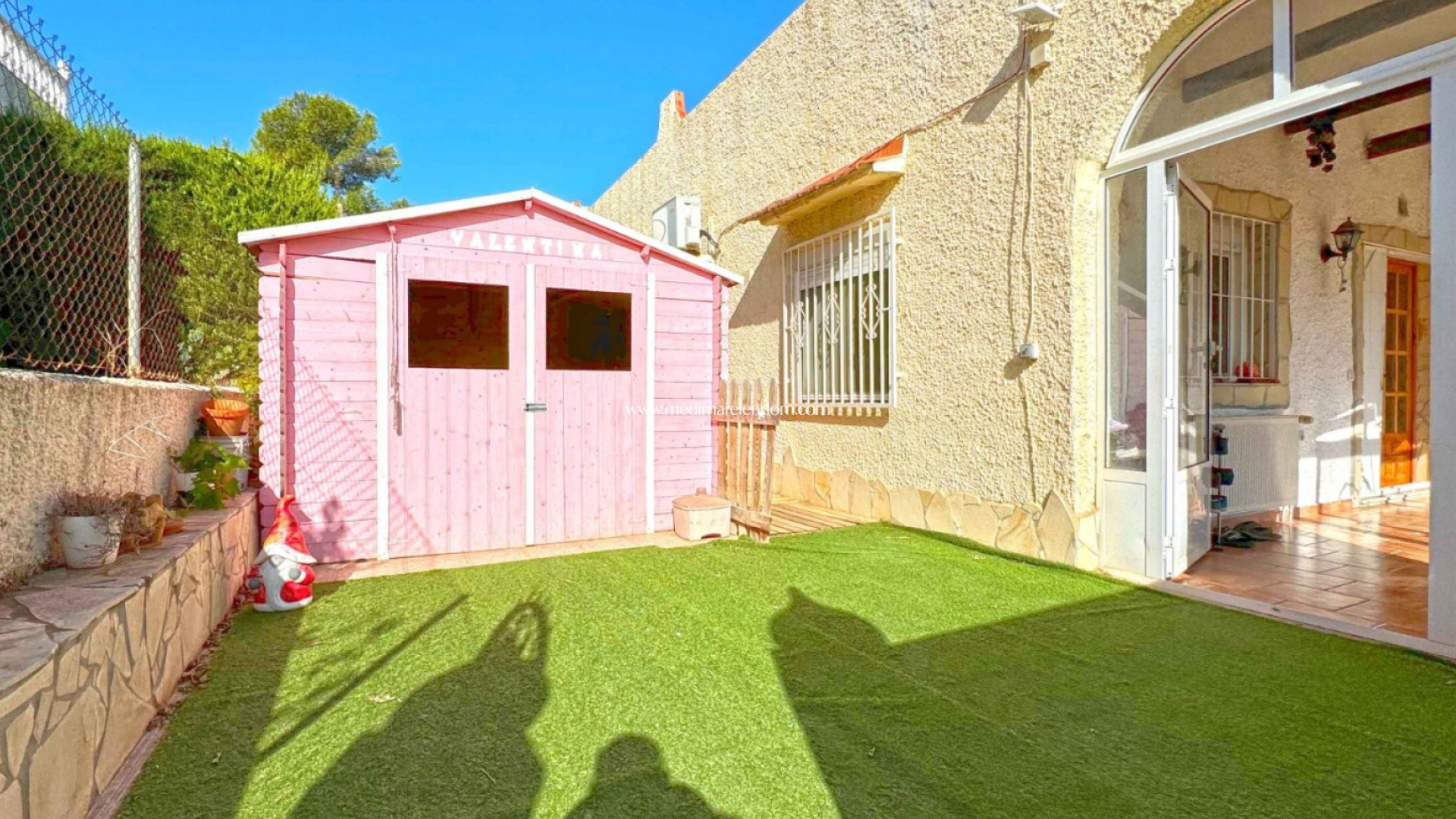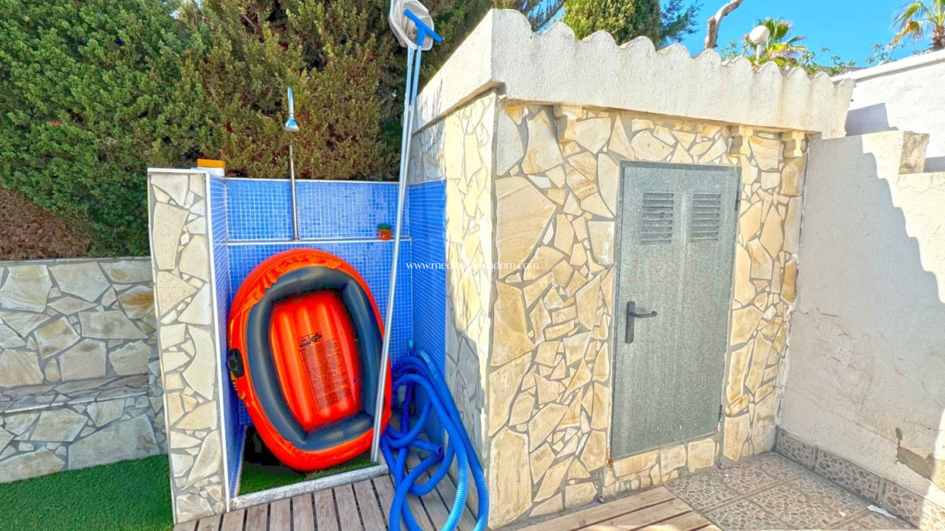 Heillandi parhús í Los Balcones, Torrevieja - draumahúsið þitt bíður! Verið velkomin í þetta yndislega parhús sem er staðsett á hinu eftirsótta svæði Los Balcones, Torrevieja. Þessi eign býður upp á einstaka blöndu af þægindum, næði og möguleikum, sem gerir það að fullkomnu heimili fyrir bæði varanlegt líf eða kyrrlátt frí. Helstu eiginleikar: - Rúmgóð stofa: Villan státar af 2 notalegum svefnherbergjum, fullbúnu baðherbergi og auka salerni, sem tryggir þægindi fyrir þig og gesti þína. - Víðáttumikið útirými: Stóri garðurinn er sannkölluð vin, með fallegu fíkjutré og blómleg vínvið - fullkomið til að njóta Miðjarðarhafslífsstílsins. Einkasundlaugin, með glænýjum búnaði, býður þér að kæla þig niður á hlýjum sumardögum og útisturtan bætir lúxusblæ við upplifun þína utandyra. - Fjölhæfur kjallari og bílskúr: Stóri kjallarinn veitir nóg pláss fyrir geymslu, verkstæði eða jafnvel möguleika á að bæta við fleiri svefnherbergjum. Bílskúrinn getur auðveldlega hýst ökutæki eða verið notaður til viðbótargeymslu. Að öðrum kosti, ef þú ert að leita að stækka, býður þetta svæði upp á marga möguleika til að búa til meira íbúðarrými. - Endalausir möguleikar: Með möguleikanum á að bæta við öðru stigi á ljósabekknum geturðu sérsniðið þetta heimili enn frekar til að mæta þörfum þínum - hvort sem það er að bæta við fleiri svefnherbergjum, búa til setustofu á þaki eða einfaldlega stækka stofuna þína. - Þægileg aðstaða: Eigninni fylgir einnig hagnýt geymsla og sérbílastæði, ýmist í bílskúr eða á lóð. Lágt árlegt IBI upp á aðeins € 240 er annar aðlaðandi eiginleiki, sem gerir þetta að góðu vali. Þessi villa býður upp á fullkomna blöndu af ró, næði og þægindum, allt í líflegu samfélagi nálægt verslunum, veitingastöðum og töfrandi ströndum Torrevieja. Ekki missa af þessu sjaldgæfa tækifæri til að eiga paradís í Los Balcones - hafðu samband við okkur í dag til að skipuleggja skoðun og sjá alla möguleika þessa heillandi heimilis!