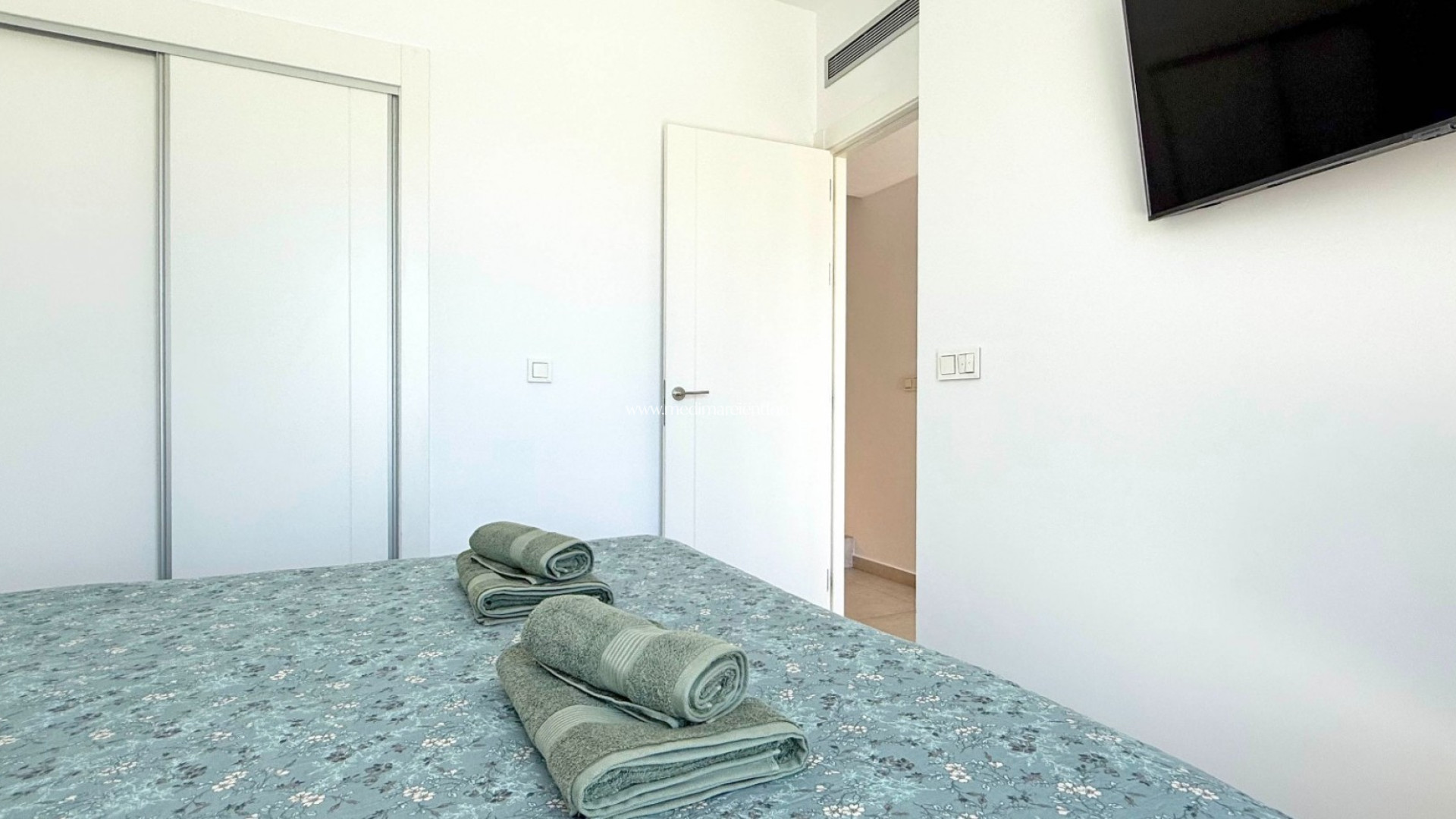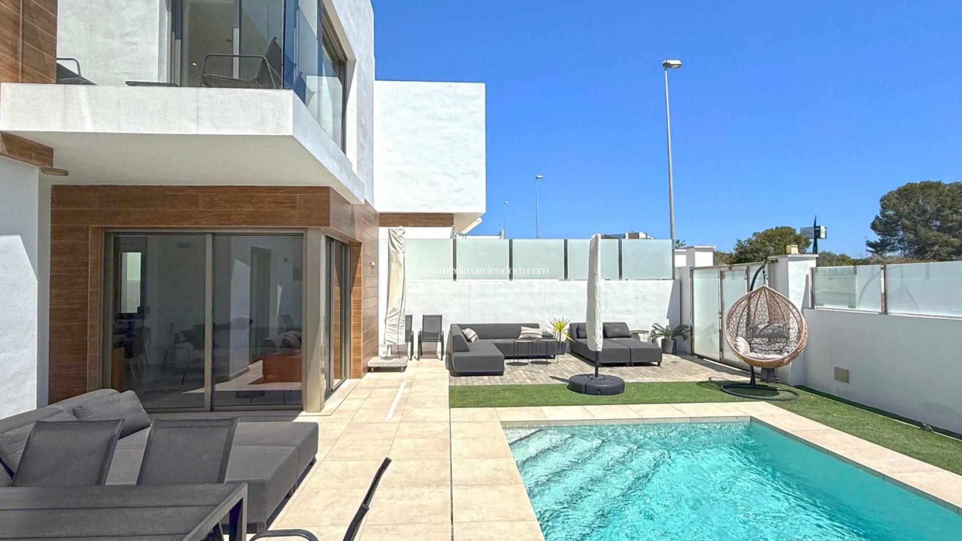 Þetta stílhreina og fullbúna einbýlishús, byggt árið 2020, býður upp á fullkomna blöndu af þægindum og nútímalegri hönnun á hinu eftirsótta svæði Villamartin. Eignin státar af 3 rúmgóðum svefnherbergjum og 3 fullum baðherbergjum, tilvalið fyrir fjölskyldur eða þá sem hafa gaman af því að skemmta gestum. Á jarðhæðinni er bjart og loftgott opið stofa og borðstofa með óaðfinnanlegum aðgangi að sólríkri verönd, fullkomin til að borða úti og slaka á. Nútímalega eldhúsið er fullbúið, sem gerir það tilbúið til að flytja inn. Njóttu sunds allt árið í upphituðu einkasundlauginni þinni eða nýttu þér sameiginlegu sundlaugina innan hliðarsamfélagsins. Sólbaðsstofan á þakinu býður upp á töfrandi útsýni og tilvalinn staður til að drekka í sig Miðjarðarhafssólina. Viðbótaraðgerðir eru einkabílastæði, loftkæling og hágæða innrétting hvarvetna. Þessi villa er staðsett nálægt golfvöllum, veitingastöðum og verslunarmiðstöðvum og er tilvalin sem varanleg búseta, sumarhús eða leigufjárfesting.