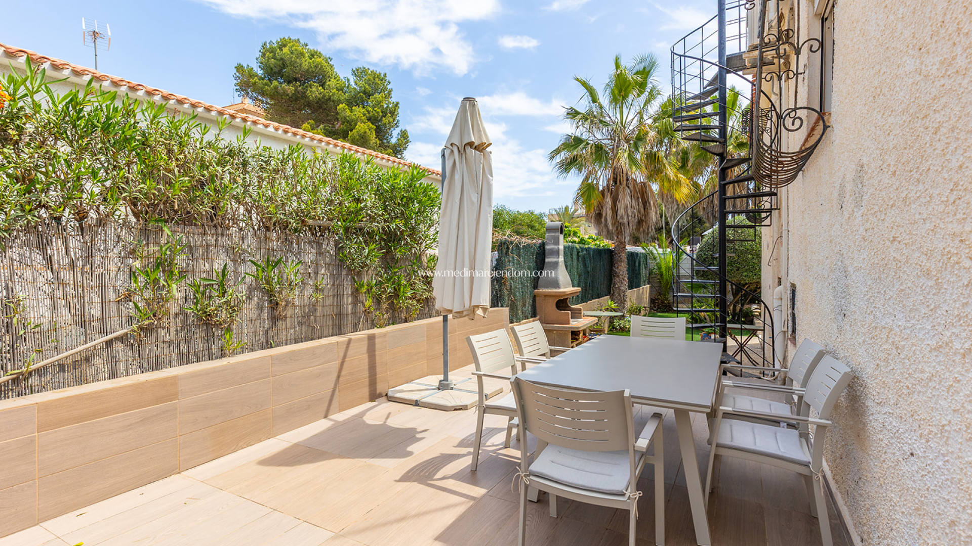 Þessi heillandi parhús er staðsett í Rocío del Mar, friðsælu íbúðahverfi í Torrevieja, aðeins 300 metra frá sjónum. Eignin er 92 fermetrar að stærð á 405 fermetra lóð, dreift yfir fjögur svefnherbergi og tvö baðherbergi, sem býður upp á bjarta og rúmgóða innréttingu fyrir þægilega búsetu. Þar að auki er hún með fullbúnum 80 fermetra kjallara, sem býður upp á viðbótarherbergi sem auka virkni og fjölhæfni heimilisins. Villan er að hluta til innréttuð og tilbúin til innflutnings. Hún er með einkasundlaug, fullkomin til að njóta Miðjarðarhafsloftslagsins í fullkomnu næði, og vel hirtan garð sem er tilvalinn fyrir útivist. Þökk sé suðvesturátt nýtur eignin frábærs náttúrulegs ljóss allan daginn. Villan er staðsett á þéttbýlu og vel tengdu svæði, nálægt allri nauðsynlegri þjónustu, þar á meðal matvöruverslunum, veitingastöðum og íþróttamiðstöðvum. Hún er einnig aðeins nokkurra mínútna akstur frá verslunarmiðstöðinni Zenia Boulevard og nokkrum þekktum golfvöllum. Rocío del Mar er þekkt fyrir háa lífsgæði og fjölbreytt úrval af þægindum. Frábær innviðir og samgöngutengingar veita auðveldan aðgang að öðrum lykilsvæðum á Costa Blanca, sem gerir þessa eign að kjörnum valkosti bæði sem fasta búsetu og fjárfestingu í fríi.