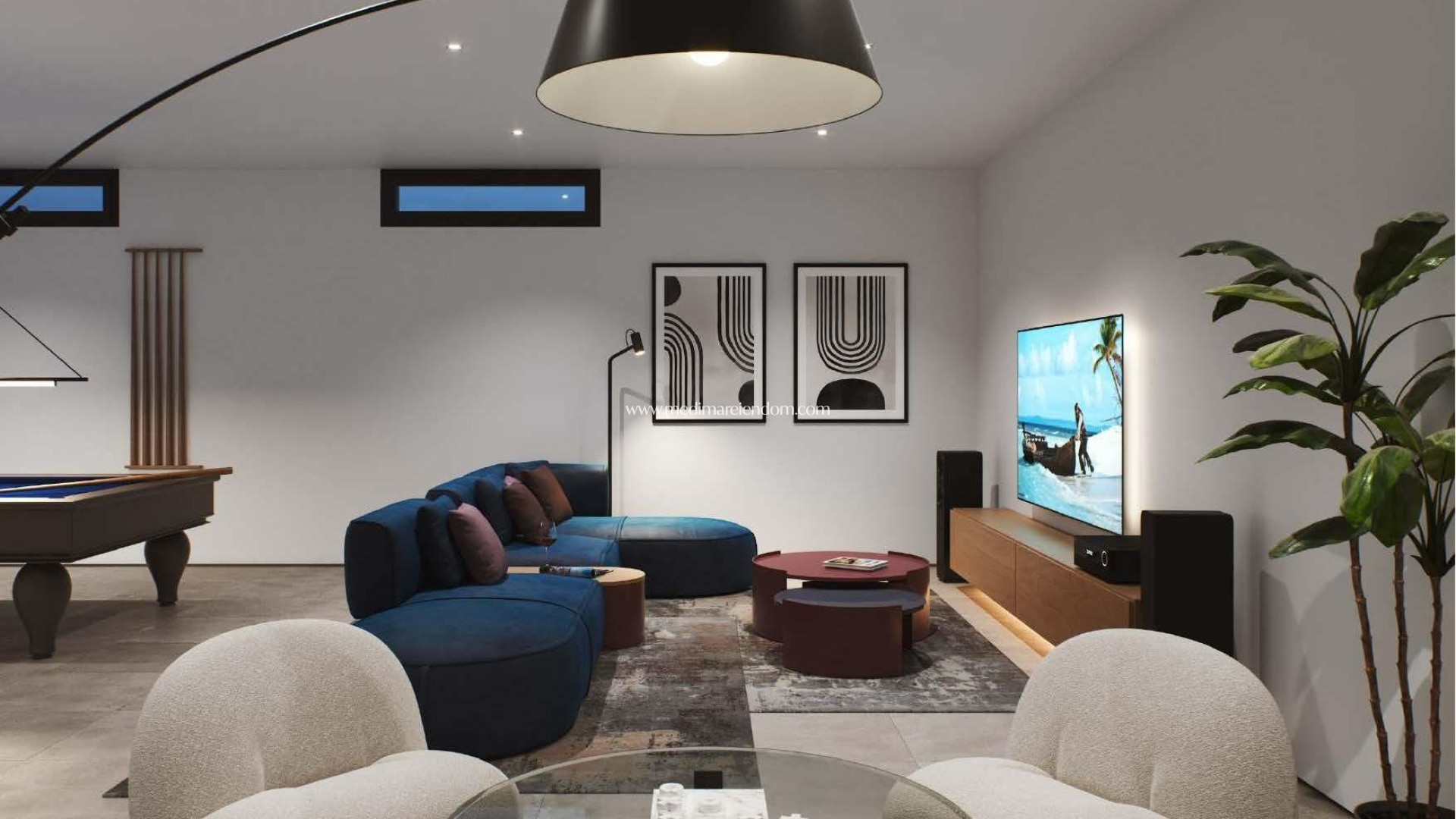 Nýbyggðar lúxusvillur í Santa Rosalía Lake and Life Resort, Murcia. Sérstakar villur í fyrsta flokks lokuðu hverfi. Uppgötvaðu þetta einstaka safn nýbyggðra villna sem staðsettar eru í virta Santa Rosalía Lake and Life Resort, einu nýstárlegasta og eftirsóttasta íbúðadvalarstaðnum í Murcia-héraði. Umkringt þekktum golfvöllum og aðeins 4 km frá ströndum Mar Menor og bænum Los Alcázares, býður þetta þróunarverkefni upp á einstaka blöndu af lúxus, náttúru og nútímalífi. Nútímaleg hönnun með fyrsta flokks eiginleikum Hver villa er hugvitsamlega dreifð yfir þrjár hæðir og samanstendur af: 3 rúmgóðum svefnherbergjum, hvert með sérbaðherbergi Gestasalerni fyrir aukin þægindi Opin stofu-borðstofa og fullbúnu eldhúsi Einkarekinn garður með sundlaug með fossi Einkasóló tilvalinn til sólbaða eða skemmtunar Kjallari (hráfrágangur) býður upp á sveigjanlega notkun Bílastæði á staðnum Þessi heimili eru byggð samkvæmt ströngustu stöðlum, þar á meðal: Brynvarðar útidyr Loftræsting á jarðhæð og fyrstu hæð Gólfhiti í baðherbergjum Hitakerfi fyrir heitt vatn LED lýsing (inni og úti) Rafknúnir gluggatjöld í svefnherbergjum Hágæða álviðarklæðning að utan með hitarofi og tvöföldum glerjun Heimilissjálfvirkni innifalin Innbyggður grill fyrir útiborðhald Þægindi í dvalarstaðastíl fyrir fyrsta flokks lífsstíl Santa Rosalía Lake and Life Resort nær yfir 126.000 fermetra af landslagssléttum grænum svæðum. Íbúar njóta einkaréttar að: Kristaltæru stöðuvatni í lónstíl sem er 17.000 fermetrar að stærð með hvítum sandströndum Tvær einkaeyjar, önnur með bar Nokkrar strand-sjiringutur Félagsheimili og afþreyingarsvæði Göngu- og hjólreiðastígar Róður- og tennisvellir, minigolf, íþróttasvæði Hundagarðar og leiksvæði fyrir börn 24 tíma öryggi og aðalinngangur með hliði Frábær staðsetning með frábærum tengingum Tilvalin staðsetning fyrir þægindi og afþreyingu: Los Alcázares strönd og bær: 4 km Lo Romero golfvöllur: 9 km Roda golfvöllur: 5 km Cartagena borg: 15 km Murcia alþjóðaflugvöllur: 22 km Zenia Boulevard verslunarmiðstöðin: 30 km Tryggðu þér einbýlishús í dag Hvort sem þú ert að leita að aðalbústað, frístundahúsi eða fjárfestingu með mikilli arðsemi, þá bjóða þessar einbýlishús í Santa Rosalía Lake and Life Resort upp á óviðjafnanlega gæði og lífsstíl. Hafðu samband við okkur núna til að fá frekari upplýsingar og bóka skoðun.