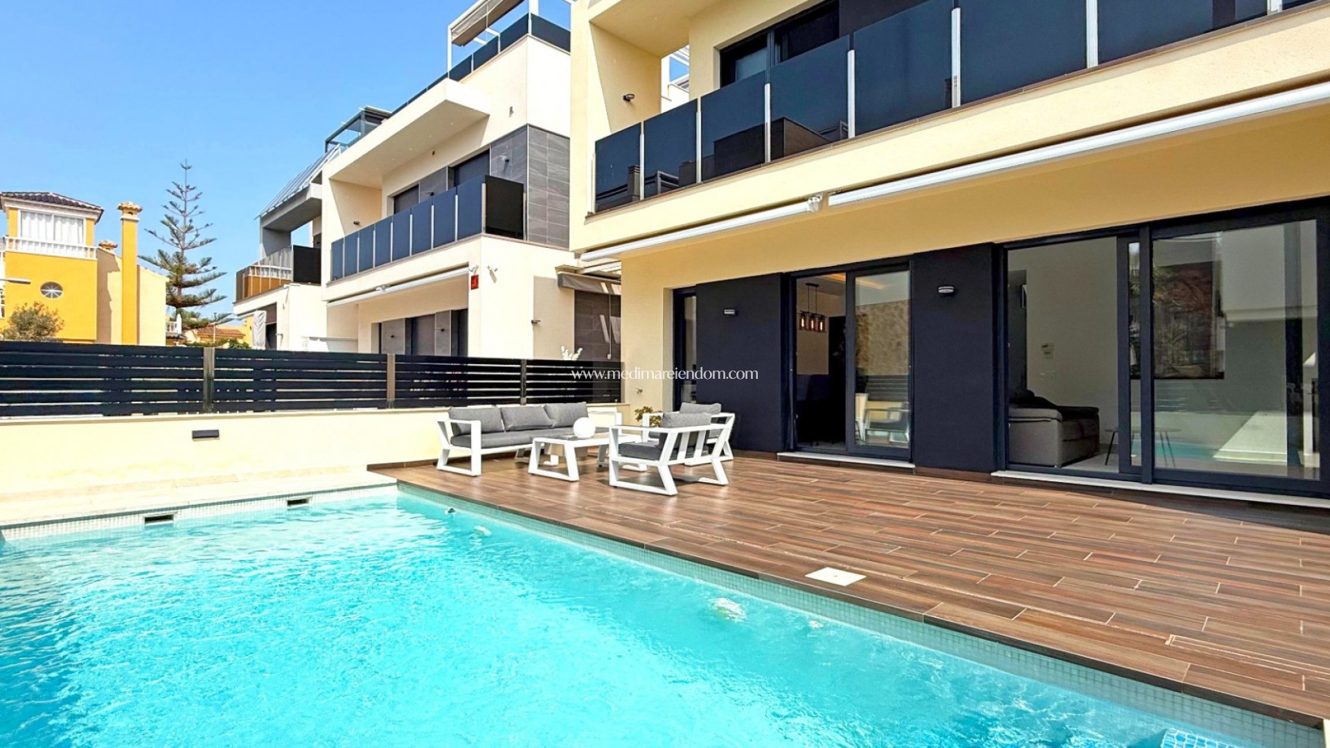 Flyttu beint inn í þessa glæsilegu, fullbúnu einbýlishúsi á einkasvæðinu Lomas de Cabo Roig í Orihuela Costa. Eignin er hönnuð með bæði þægindi og stíl í huga og er tilvalin fyrir fasta búsetu, lúxusfríhús eða snjalla fjárfestingu á Costa Blanca. Húsið er á tveimur hæðum og býður upp á bjartar, rúmgóðar stofur með nútímalegum frágangi. Innandyra er sólrík opin stofa, fullbúið nútímalegt eldhús og þrjú rúmgóð svefnherbergi, hvert með innbyggðum fataskápum. Þrjú baðherbergi eru fallega hönnuð með hágæða innréttingum. Útirýmið er jafn glæsilegt: Einkasundlaug til að kæla sig niður á hlýjum dögum Stór sólskáli til að njóta sólarinnar og útsýnisins 201 fermetra lóð með viðhaldslítilri garði, fullkomin fyrir útiveru Einkabílastæði innifalin Húsið er einnig með loftkælingu og einstaklingsbundna upphitun, sólarplötur fyrir orkunýtingu og suðursnúning fyrir hámarks náttúrulegt ljós. Húsið er staðsett í rólegu þéttbýlishverfi, í stuttri akstursfjarlægð frá ströndum Orihuela Costa, með matvöruverslunum, veitingastöðum og verslunarmiðstöðvum í nágrenninu. Helstu eiginleikar: 3 rúmgóð svefnherbergi, 3 baðherbergi Um það bil 193 m² byggingarflatarmál, 111,70 m² nothæft Einkasundlaug, sólarverönd og garður Loftkæling, einstaklingshitun, sólarsellur Byggt árið 2019, í frábæru ástandi Bílastæði innifalið Róleg staðsetning, nálægt öllum þægindum Þetta er einstakt tækifæri til að eignast stílhreina, orkusparandi einbýlishús á einu eftirsóttasta svæði Orihuela Costa. Hafðu samband við okkur í dag til að bóka einkaskoðun - þetta heimili er tilbúið fyrir þig!