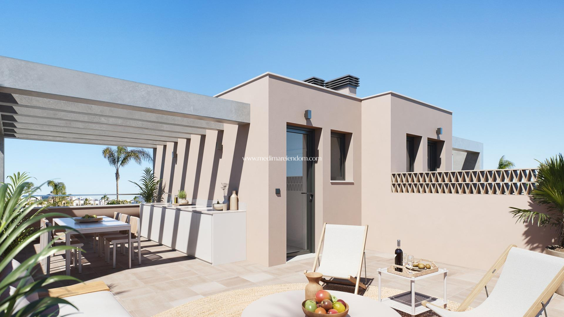 Sérstök íbúðabyggð með tveimur lúxus parhúsum með sjávarútsýni við Las Higuericas ströndina í Torre de la Horadada. Uppgötvaðu þessi glæsilegu parhús staðsett í Torre de la Horadada, á annarri línu Las Higuericas ströndarinnar. Með nútímalegri og glæsilegri hönnun, rúmgóðum herbergjum og hágæða efniviði, hafa þessar eignir verið hannaðar til að bjóða upp á hámarks þægindi og einkarétt. Með 5×3m einkasundlaug, bílastæði á lóðinni og 40 m2 sólstofu: stórkostlegt opið rými tilvalið fyrir slökun, grillveislu eða að njóta sólarinnar og óhindraðs útsýnis. Hver villa hefur sjálfstæðan aðgang frá nærliggjandi götum, þar sem engar aðliggjandi byggingar eru. Með rólegum götum og stórum grænum svæðum í kringum íbúðabyggðina eru þessar eignir tilvaldar fyrir ungar fjölskyldur. Villas eru með 170 m2 lóð og 135 m2 byggingarflatarmál. Villas eru byggðar með þremur svefnherbergjum og þremur baðherbergjum (tvö þeirra með sérbaðherbergi) á tveimur hæðum. Eldhúsið er fullbúið með möguleika á að sérsníða og inniheldur heimilistæki. Borðstofan er í opnu skipulagi og er umkringd stórum gluggum sem veita skemmtilega náttúrulega birtu. Hún býður upp á beinan aðgang að sundlauginni og görðunum, ásamt lýsingu, vökvun og gróðri frá svæðinu. Valin frágangur, hágæða efni, sérsniðin lúxus hönnun og hámarks þægindi, ásamt loftkælingu og upphitun í öllum rýmum, gerir villuna ánægjulega á heitum sumrum og einnig á mildum vetrum, sem gerir það mögulegt að búa hér allt árið um kring. Þessar eignir eru staðsettar á einu besta svæði Costa Blanca og bjóða upp á friðsælt umhverfi, en samt með alla þjónustu í nágrenninu: veitingastaði, matvöruverslanir, golf og verslunarmiðstöðvar. Tvær parhúsin eru staðsett á annarri línu ströndarinnar í Las Higuericas, í Torre de la Horadada, paradís á allan hátt, þar sem þú getur notið sjávarsíðunnar, víðáttu Miðjarðarhafsins, strandgöngunnar, hressandi sunds í sjónum, vatnaíþrótta, siglinga, brimbrettabruns, snorklunar og aðeins 8 km frá Lo Romero Golf, einum af 21 golfvellinum á Costa Blanca. Það er í 5 mínútna fjarlægð frá smábátahöfninni í La Torre de la Horadada og í 10 mínútna fjarlægð frá smábátahöfninni í San Pedro del Pinatar, og bestu veitingastöðunum þar sem þú getur smakkað besta Miðjarðarhafsmatargerðina. Að ógleymdum nálægð við AP7 hraðbrautina, sem tengir íbúðahverfið okkar við tvo flugvelli með alþjóðlegum áfangastöðum, Corvera, 44 km í burtu, og Altet, Alicante, 75 km í burtu. Næsti bær við þróunarsvæðið er Pilar de la Horadada, 1 km í burtu, rólegt þorp með alls kyns þjónustu, skólum, heilsugæslustöðvum, lögreglu, apótekum o.s.frv. Það eru einnig tvö verslunarsvæði í nágrenninu, verslunarmiðstöðin Dos Mares í San Javier, 5 mínútna akstursfjarlægð, og La Zenia Boulevard í Orihuela Costa, 15 mínútna akstursfjarlægð.