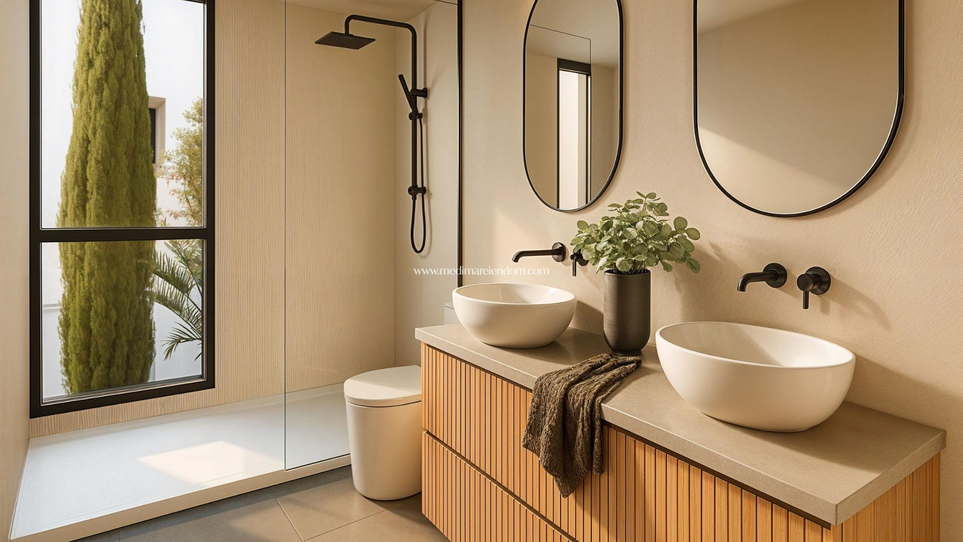 Nýbyggðar einbýlishús í Santa Rosalia Lake and Life Resort – Einstök búseta í Murcia. Frábær staðsetning nálægt Mar Menor. Þessar nýbyggðu einbýlishús eru staðsett í virta Santa Rosalia Lake and Life Resort, lokuðu og lokaðu hverfi í Murcia-héraði. Umkringt fyrsta flokks golfvöllum og aðeins 4 km frá gullnum ströndum Mar Menor, býður þróunin upp á fullkomna blöndu af næði, náttúru og lúxuslífi. Líflegi strandbærinn Los Alcázares er aðeins í 5 mínútna akstursfjarlægð, en sögufræga borgin Cartagena er í 15 mínútna fjarlægð. Alþjóðaflugvöllurinn í Murcia er í um 22 km fjarlægð, sem tryggir auðveldan aðgang frá helstu evrópskum borgum. Nútímalegar einbýlishús hannaðar með þægindi í huga. Hver einbýlishús er með nútímalega, opna hönnun með 3 svefnherbergjum, 2 baðherbergjum og gestasalerni. Björt og rúmgóð stofa sameinar fullbúið eldhús með borðstofu og setustofu, sem liggur út í landslagaðan einkagarð með sundlaug. Einkabílastæði utan vega er einnig innifalið. Á neðri hæðinni er 136 fermetra fullbúinn kjallari með sléttum veggjum, vatns- og rafmagnstengingum sem býður upp á fjölhæft rými fyrir viðbótar svefnherbergi, skrifstofu, líkamsræktarstöð, kvikmyndahús eða leiksvæði fyrir börn. Hágæða frágangur og sjálfbærir eiginleikar. Athygli á smáatriðum er augljós í öllum þáttum þessara heimila. Meðal hápunkta eru styrkt öryggishurð, vélknúnar gluggatjöld í svefnherbergjum, innbyggðir fataskápar og eldhús með tækjum. Sjálfbær lífsstíll er tryggður með sex uppsettum sólarsellum. Garðurinn er fullbúinn með gervigrasi, pálmatrjám, sjálfvirkri áveitu og skrautlegum runnum. Skilvirkt loftræstikerfi tryggir þægindi allt árið um kring. Santa Rosalia Lake and Life Resort – Oasis í karabískum stíl. Dvalarstaðurinn státar af 126.000 fermetra af fallega landslaguðum grænum svæðum með göngu- og hjólastígum, íþróttamannvirkjum, paddle- og tennisvöllum, minigolfi, hundagarðum, afþreyingarsvæðum og félagsheimili. Miðpunkturinn er stórkostleg 17.000 fermetra kristaltær lón með hvítum sandströndum og pálmatrjám, sem skapar sanna karabíska stemningu. Tvær eyjar bjóða upp á afþreyingarsvæði, þar á meðal bar og heillandi strandklúbba dreifða umhverfis vatnið. Tilvalið fyrir slökun, íþróttir og fjárfestingu. Þessi einstaka þróun er fullkomin fyrir þá sem leita að aðalbústað, frístundahúsi eða fjárfestingu með mikilli ávöxtun. Staðsetningin býður upp á auðveldan aðgang að menningar-, matar- og afþreyingarstöðum, sem gerir það að einstökum valkosti fyrir fjölskyldur og golfáhugamenn. Hafðu samband við okkur í dag til að tryggja þér nýja einbýlishús í Santa Rosalia Lake and Life Resort og byrja að njóta Miðjarðarhafslífsstílsins.
