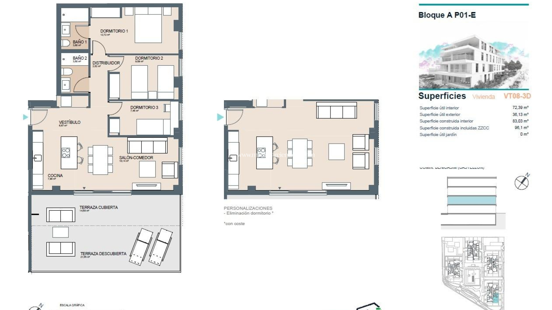 Nýbyggingar í Benicàssim: Lúxus og sjálfbærni við Miðjarðarhafið. Fyrsta flokks heimili sniðin að þínum lífsstíl. Uppgötvaðu einstakt nýbyggingarverkefni í Benicàssim sem býður upp á 2, 3 og 4 svefnherbergja heimili sem eru hönnuð til að mæta þínum þörfum. Veldu úr íbúðum á jarðhæð með rúmgóðum görðum, björtum og rúmgóðum íbúðum á millihæðum eða fyrsta flokks þakíbúðum með stórkostlegu útsýni yfir Miðjarðarhafið og Las Palmas-eyðimörkina. Þessi heimili sameina nútímalegan þægindi og byggingarlistarlegan glæsileika, tryggja nægilegt náttúrulegt ljós og loftræstingu fyrir ferskt og aðlaðandi andrúmsloft. Nútímaleg þægindi fyrir þægindi þín. Þetta íbúðasamfélag býður upp á fjölbreytt úrval af þægindum til að auka lífsgæði þín: Sameiginleg bílakjallari með beinum aðgangi frá öllum byggingum. Rúmgóð geymslurými sem eru fullkomin fyrir íþróttabúnað eða árstíðabundnar vörur. Sundlaug með mörgum umhverfum og gróskumiklum landslagssvæðum. Þjónusta móttökustjóra, líkamsræktarsvæði, líkamsræktarstöð, borgargarður og sameiginlegt samfélagsrými. Sérsníddu nýja heimilið þitt með valfrjálsum sérstillingum, sem tryggir að hvert smáatriði passi við óskir þínar. Sjálfbær lífshættir með háþróaðri tækni. Þessi heimili eru búin skilvirkri tækni fyrir sjálfbæra lífshætti: Sólarorkukerfi fyrir heitt vatn. LED lýsing fyrir minni orkunotkun. Miðstýrð lofthitun fyrir heitt vatn. Meðal annarra eiginleika eru styrktar útidyr og fullkomið loftkælingarkerfi fyrir þægindi allt árið um kring. Frábær staðsetning í Benicàssim. Staðsett í hinu fína hverfi Las Villas, einnig þekkt sem „La Biarritz del Mediterráneo“, býður þessi þróun upp á einstaka blöndu af ró og aðgengi. Strönd: Aðeins 700 metra fjarlægð fyrir afslappandi gönguferðir við sjóinn. Samgöngur: 2 km frá lestarstöðinni í Benicàssim og nálægt AP-7 hraðbrautinni. Aðgengi að borginni: 12 km frá Castellón de la Plana og 90 km frá Valencia. Afþreying: 6 km frá Club de Golf Costa de Azahar og 3 km frá smábátahöfninni í Benicàssim. Verslun og þjónusta: Innan 5 km frá helstu verslunarmiðstöðvum, skólum, heilbrigðisstofnunum og íþróttamiðstöðvum. Lifðu í sátt við náttúruna og nútímann. Benicàssim býður upp á fullkomna blöndu af náttúrufegurð og þægindum í þéttbýli. Með grænum svæðum, afþreyingarmöguleikum og nálægð við nauðsynlega þjónustu er þetta kjörinn staður fyrir þá sem leita að rólegum en samt tengdum lífsstíl. Ekki missa af þessu tækifæri til að tryggja þér draumaheimilið á frábærum stað við Miðjarðarhafið. Hafðu samband við okkur í dag til að fá frekari upplýsingar eða bóka skoðun!