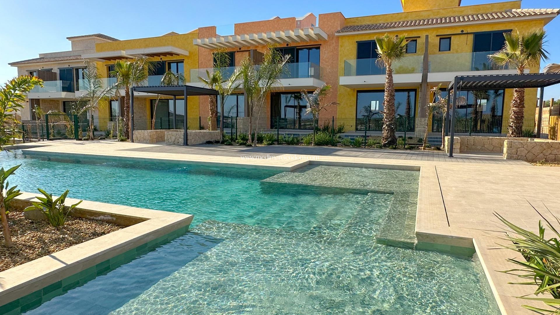 GLÆSILEG NÝBYGGÐ RÁÐHÚS Í DESERT SPRINGS RESORT Einstakt tækifæri til að kaupa eitt af TAKMÖRKUÐU úrvali af 2 svefnherbergja raðhúsum sem eru gefin út í fyrsta áfanga einkarekins íbúðabyggðar með 14 frábærum raðhúsum staðsettum umhverfis einkasundlaug, innan fallegra landslagaðra garða, á öfundsverðum stað á dvalarstaðnum Desert Springs. Nútímaleg hönnun og náttúrulegt ljós eru framúrskarandi einkenni með innréttingu sem býður upp á stílhreint heimili með nútímalegum blæ, með stórkostlegu útsýni yfir Cricket Oval og fjallgarðana handan, í átt að Miðjarðarhafsströndinni. Stofan liggur út á yfirbyggða verönd. Eignin hefur aðgang að bílastæði, görðum, sundlaug og einkareknum þakverönd. Hágæða frágangur felur í sér; fallega flísalagt baðherbergi og sturtuklefa. Opið eldhús með 'Silestone' borðplötum, með ísskáp/frysti og þvottavél innbyggðum í skápunum. Keramik helluborð, vifta og örbylgjuofn. Loftkæling, tvöföld glerjun, speglaðir fataskápar í svefnherbergjum með hágæða 'Roca' eða 'Porcelanosa' hreinlætisvörum og innréttingum um allt. Lýsing 2 svefnherbergi 2 baðherbergi, með sér baðherbergi Stofa/borðstofa með verönd Sér þakverönd Bílastæði Sameiginlegir garðar Sameiginleg sundlaug Lokað hverfi með öryggi Gólfflatarmál 96m2 Önnur aðstaða 11m2 Þakverönd 33m2 Hús staðsett innan eina alþjóðlega verðlaunaða fjölskyldudvalarstaðarins og meistaragolfvallarins í eyðimörkinni. Desert Springs dvalarstaðurinn er einstakur, staðsettur í einni af friðsælustu og eftirsóttustu hverfum við strönd Andalúsíu í Cuevas del Almanzora og Vera í Almería, og býður upp á besta úrval Spánar af hagkvæmum lúxuseignum, allt frá íbúðum til raðhúsa og einbýlishúsa af öllum stærðum, allt byggt samkvæmt okkar kröfum. Þetta er verðlaunaður golf-, íþrótta- og afþreyingarstaður staðsettur meðal kletta og smaragðsgrænna brauta, staðsettur innan lúxuseignar. Dvalarstaðurinn er umkringdur ótrufinni náttúru og státar af stórkostlegu útsýni yfir kennileiti í fjallgörðum og Miðjarðarhafið.