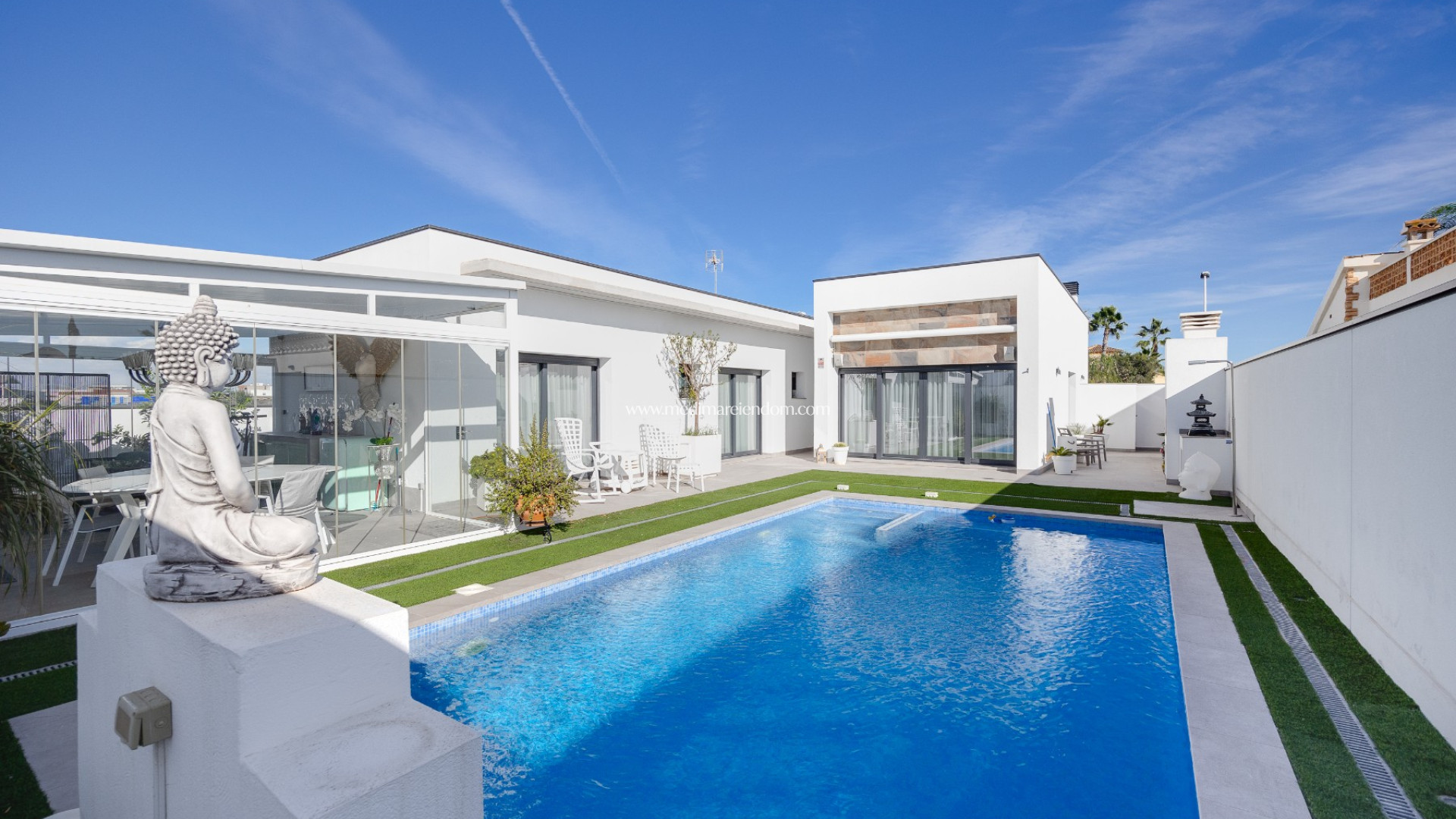 Þessi villa sameinar þægindi, glæsileika og Miðjarðarhafsblæ . Rúmgóð og sólrík lóð býður upp á rými fyrir bæði slökun og félagsleg samkomur. Með gestahúsi, þremur svefnherbergjum og þremur baðherbergjum er heimilið fullkomið fyrir fjölskyldur eða gesti. Fullbúin innrétting gerir þér kleift að flytja beint inn og njóta lífsins á Costa Blanca með einkasundlaug og sólríkum dögum .