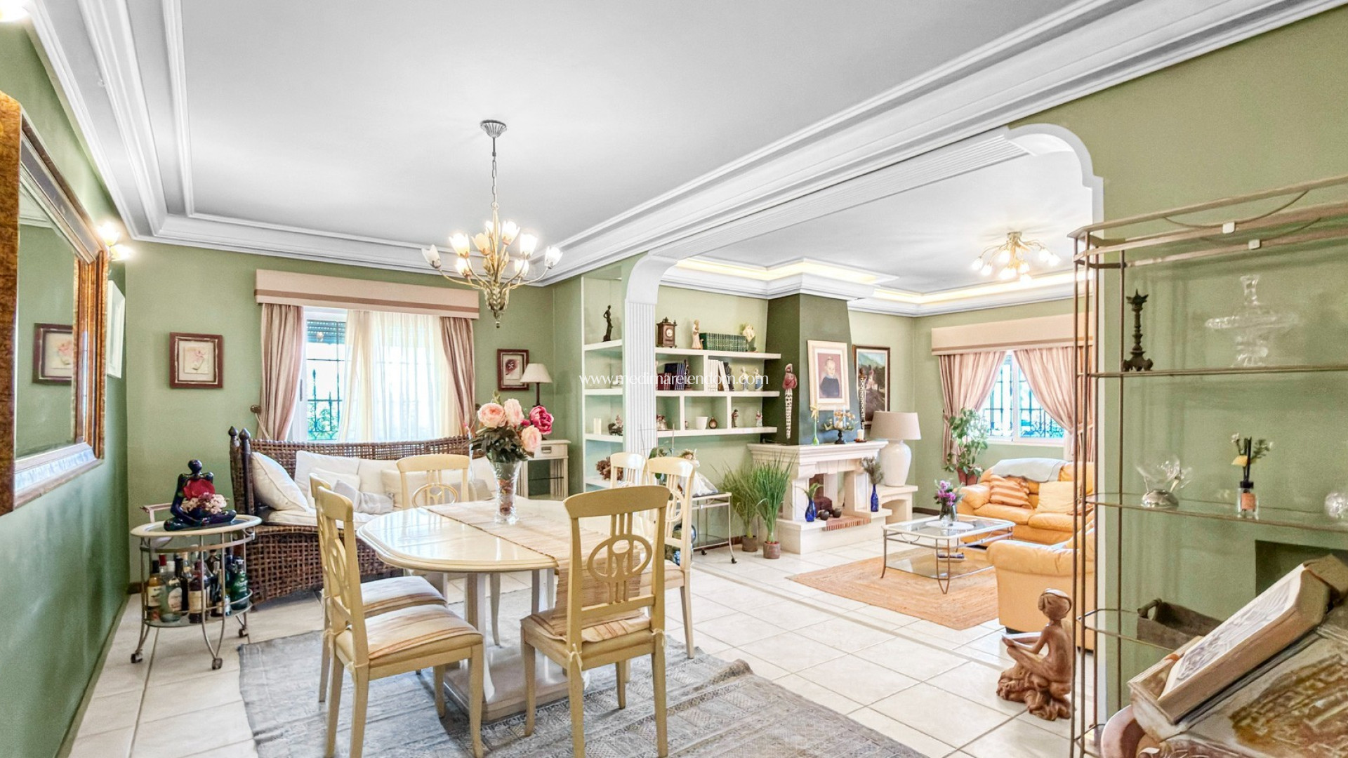 Þessi einstaka lúxusvilla er staðsett í virðulega íbúðahverfinu Molino Blanco og býður upp á rými, næði og upphefðan Miðjarðarhafslífsstíl á rúmgóðri 800 fermetra lóð. Eignin er samtals 440 fermetra að stærð og er á tveimur aðalhæðum auk fullbúins hálfkjallara sem er hannaður sem sjálfstæð íbúðarrými - fullkomið fyrir gesti eða stórfjölskyldur. Villan er með sex rúmgóð svefnherbergi með tveimur svefnherbergjum og fimm fullbúnum baðherbergjum, sem gerir hana tilvalda fyrir stórar fjölskyldur eða þá sem njóta þess að hýsa gesti. Hver hæð býður upp á bjartar og glæsilegar stofur og borðstofur, sem skapa mörg rými til að slaka á og skemmta sér. Í hjarta heimilisins er stórt, sjálfstætt eldhús með beinum aðgangi að garðinum - fullkomlega hannað fyrir bæði daglegt líf og félagslegar samkomur. Útisvæðin lyfta þessari eign sannarlega upp. Glæsileg einkasundlaug er umkringd gróskumiklum, landslagsgörðum og býður upp á friðsælan og einkarekinn stað undir Miðjarðarhafssólinni. Yfirbyggð verönd og pergola með innbyggðum grilli skapa fullkomna umgjörð fyrir ógleymanlegar stundir með fjölskyldu og vinum. Eignin er búin nútímaþægindum, þar á meðal miðstýrðri hitun, loftkælingu og fullbúnu viðvörunarkerfi fyrir öryggi og hugarró. Samfélagið er staðsett í séreignaríbúðahverfi og nýtur einnig góðs af viðhaldsþjónustu, þar á meðal faglegri garðyrkju, sem tryggir að umhverfið haldist óspillt allt árið um kring.