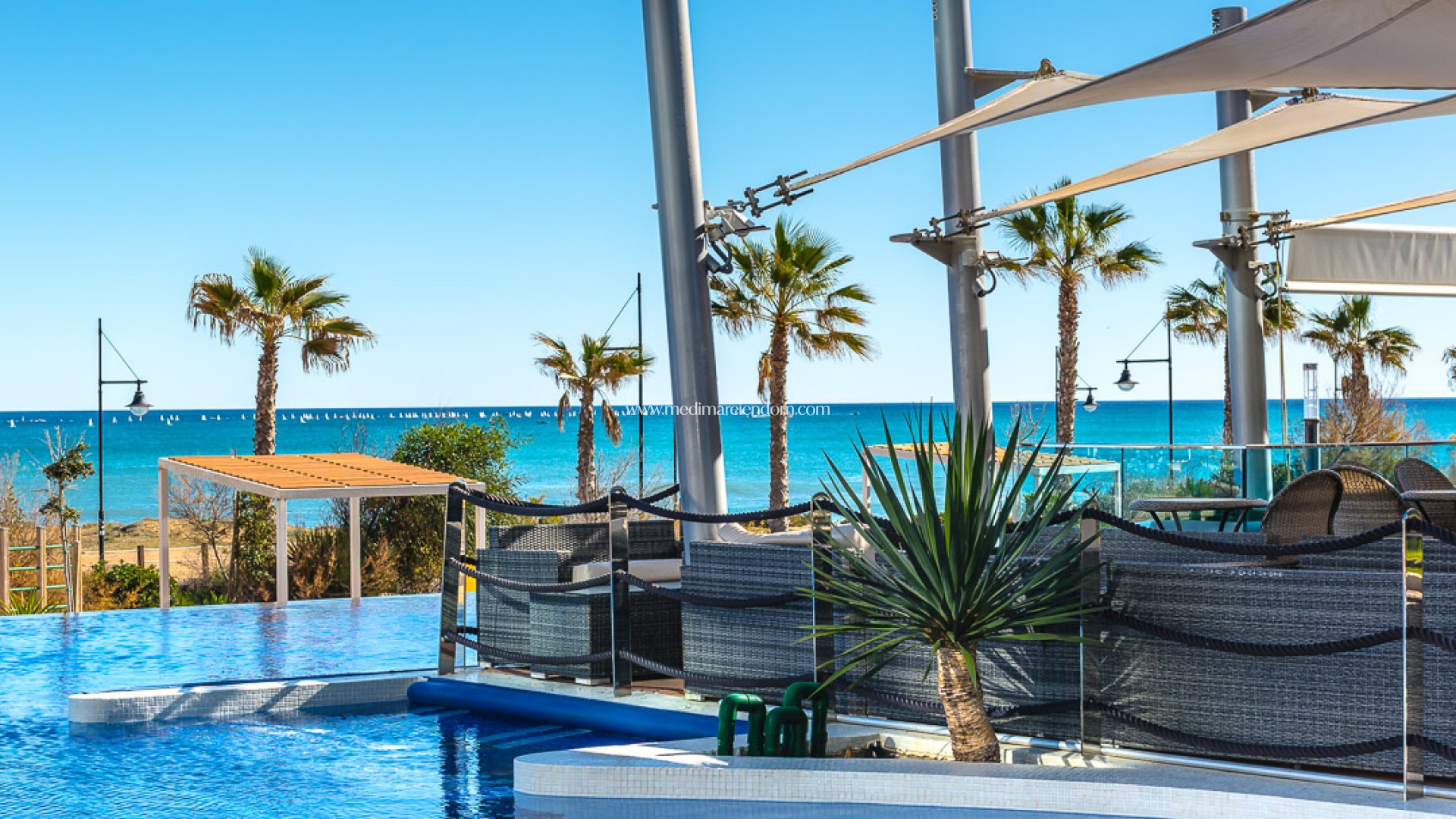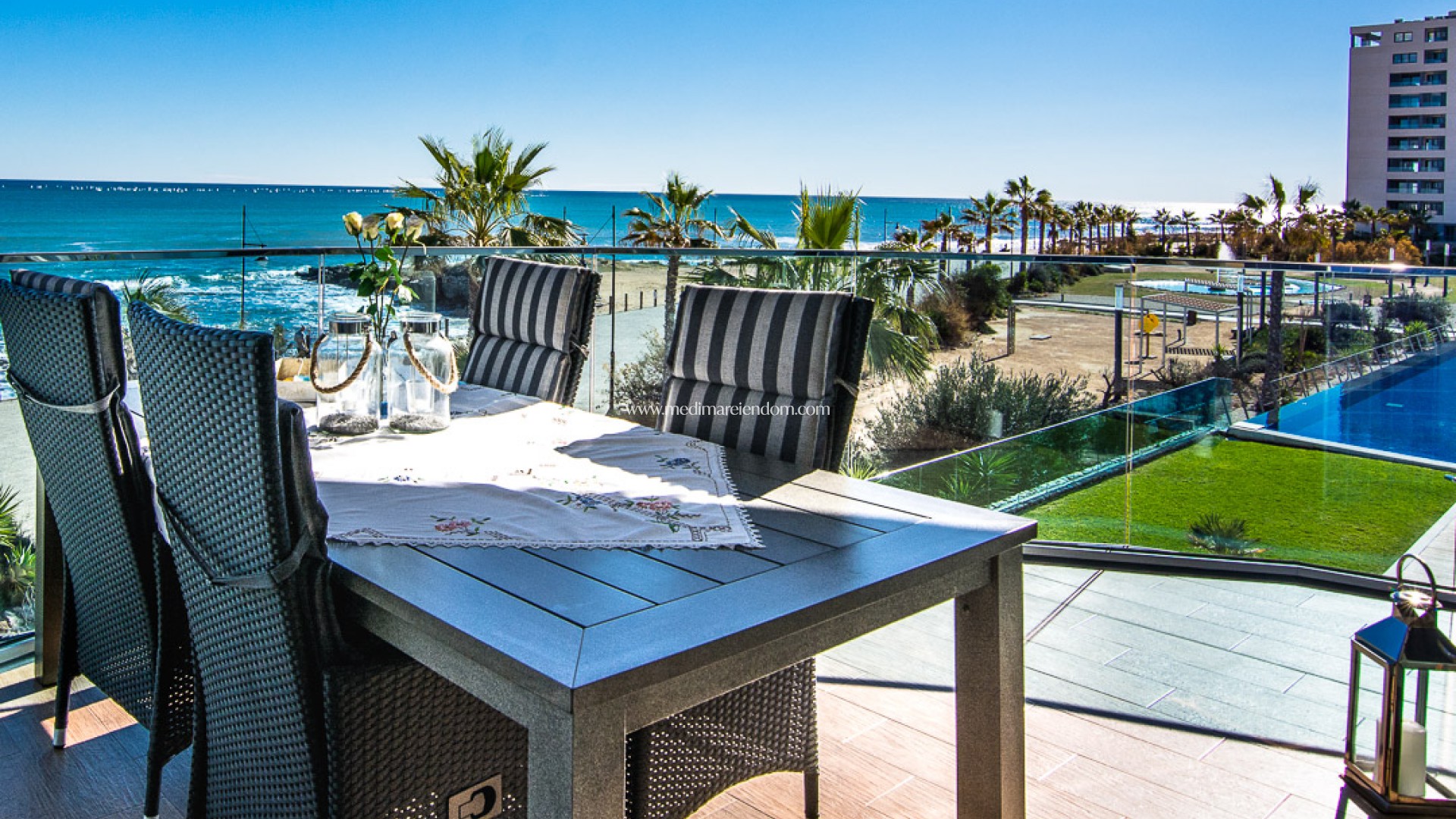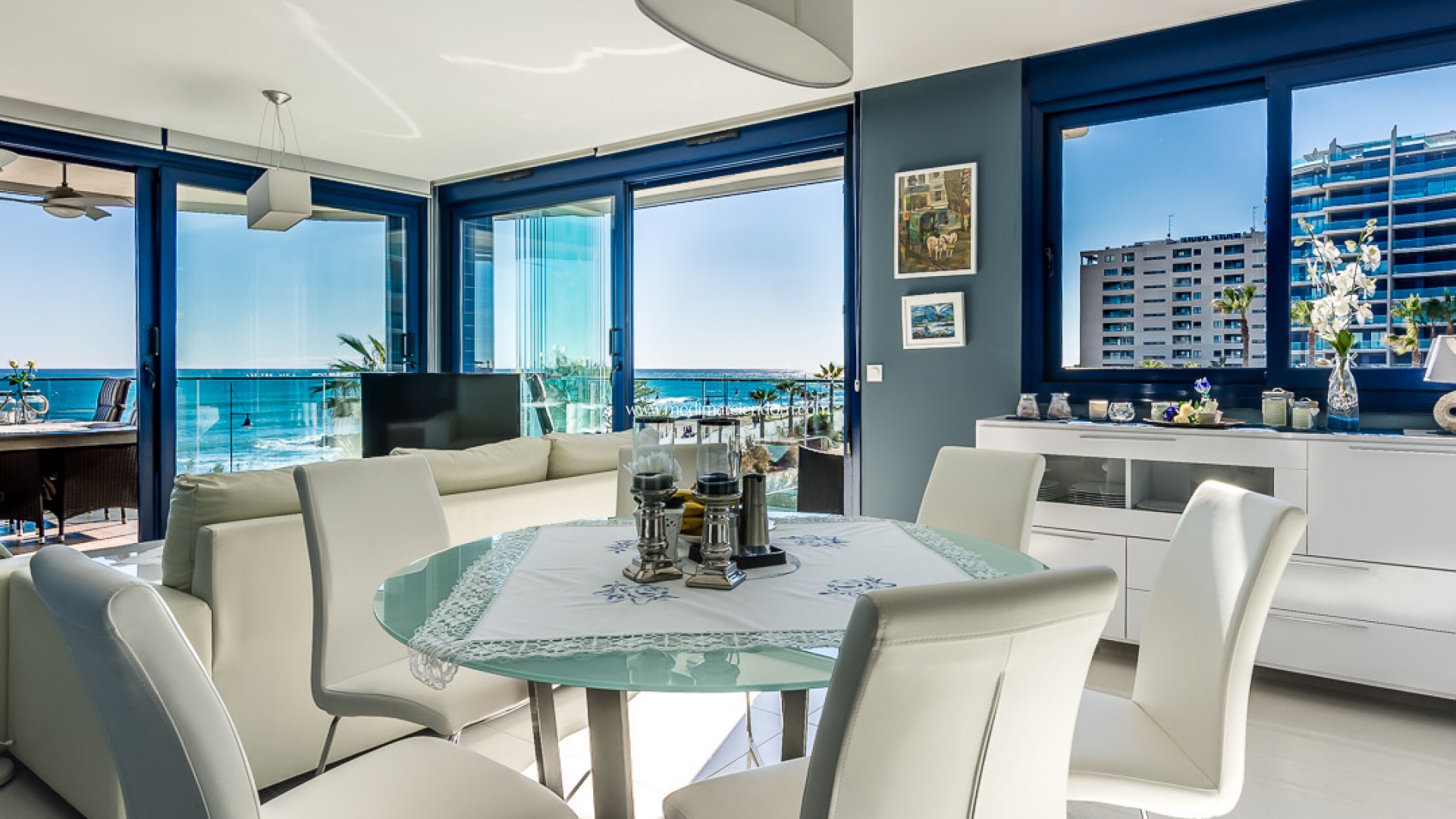 Eingöngu íbúðarhúsnæði sem staðsett er í fyrstu línu ströndinni í Punta Prima á Costa Blanca! Þessi íbúð hefur 3 svefnherbergi, 2 baðherbergi, stóra stofur, innbyggðar fataskápar í öllum herbergjum, hágæða ljúka og miðlægu loftræstingu. Íbúðin hefur sína eigin neðanjarðar bílastæði og stór geymsla. The flókið hefur infinity sundlaugar, nuddpottur, líkamsræktarstöð, íþrótta svæði og margt fleira. Það eru mörg frábær veitingahús og barir innan skamms og verslanir, apótek ETC. Þetta er sannarlega lúxus rétt á Miðjarðarhafinu!